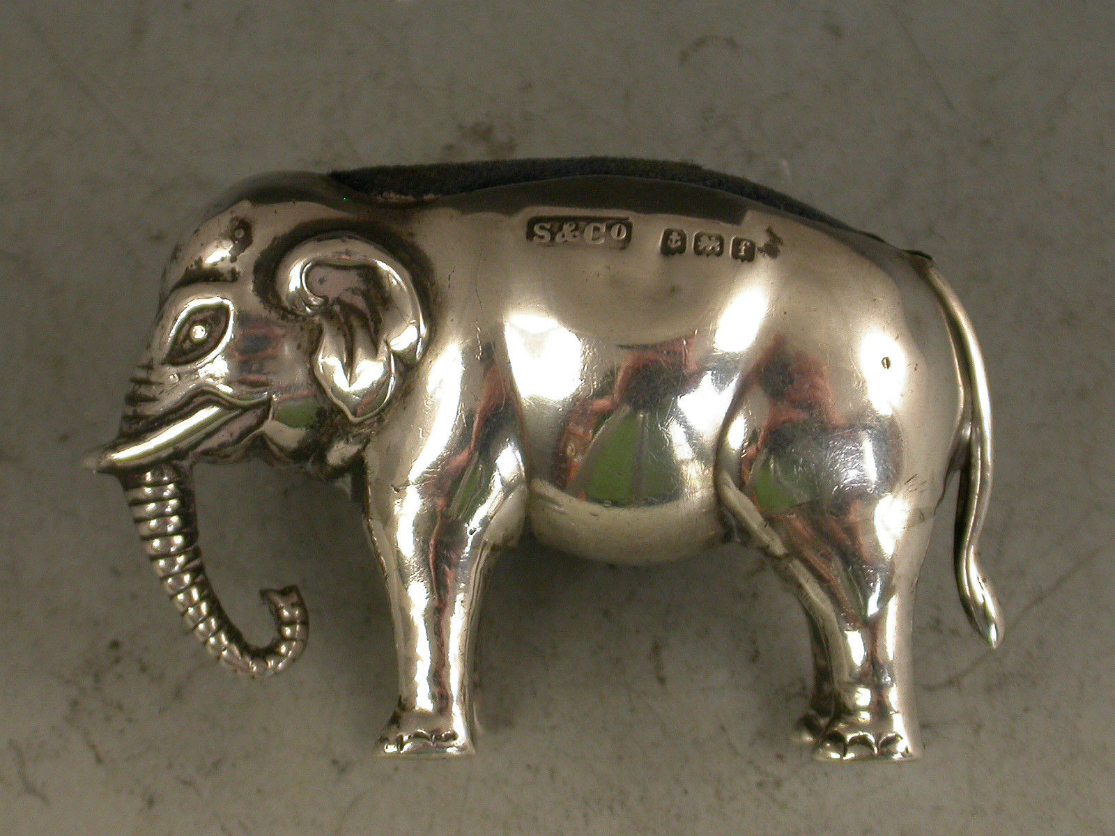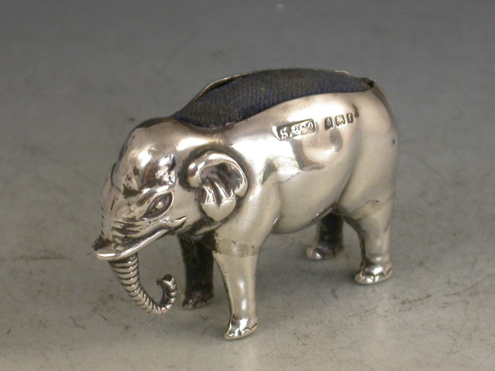 Edwardian Novelty Antique Silver Elephant Pin Cushion
