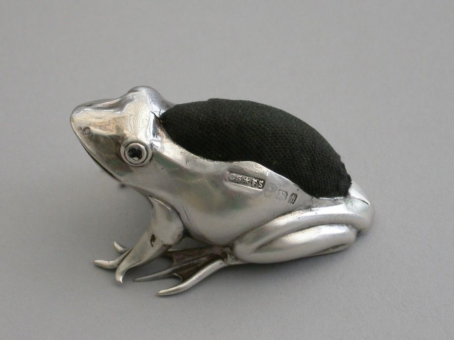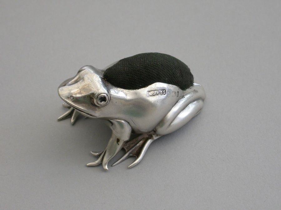 Edwardian Novelty Antique Silver Frog Pin Cushion