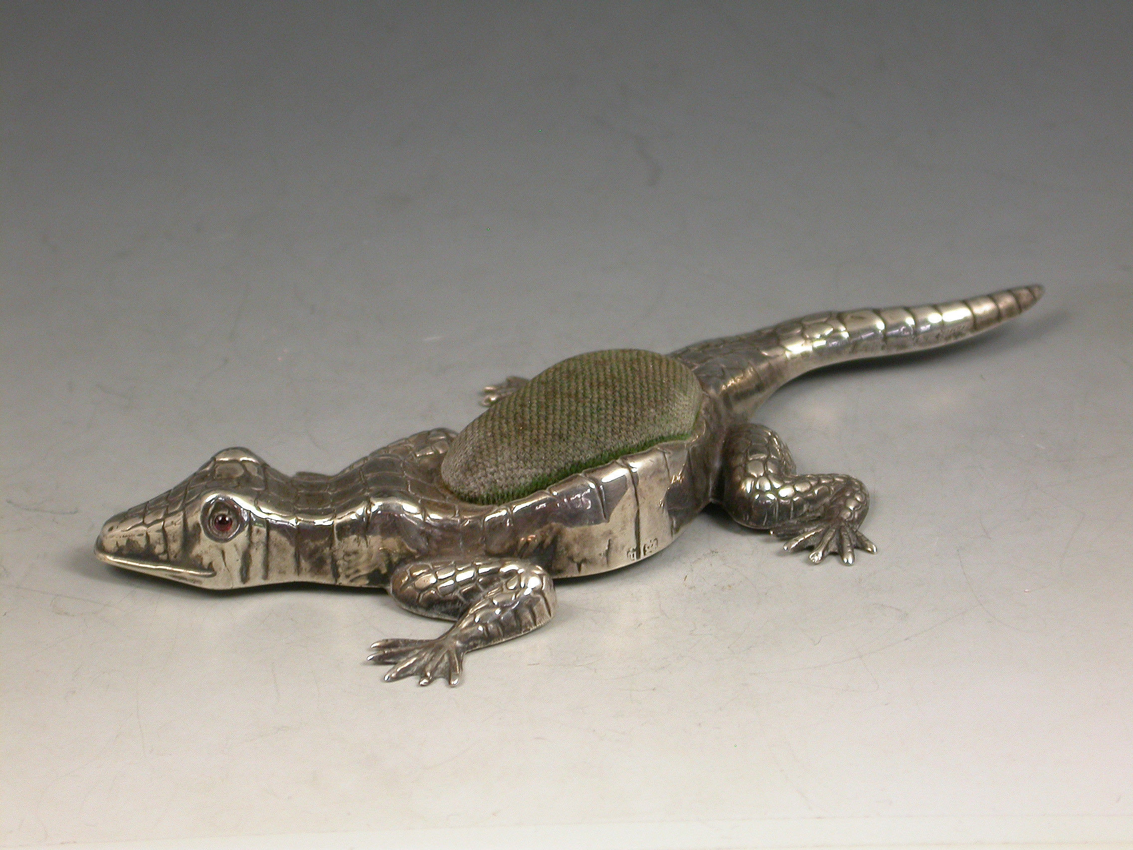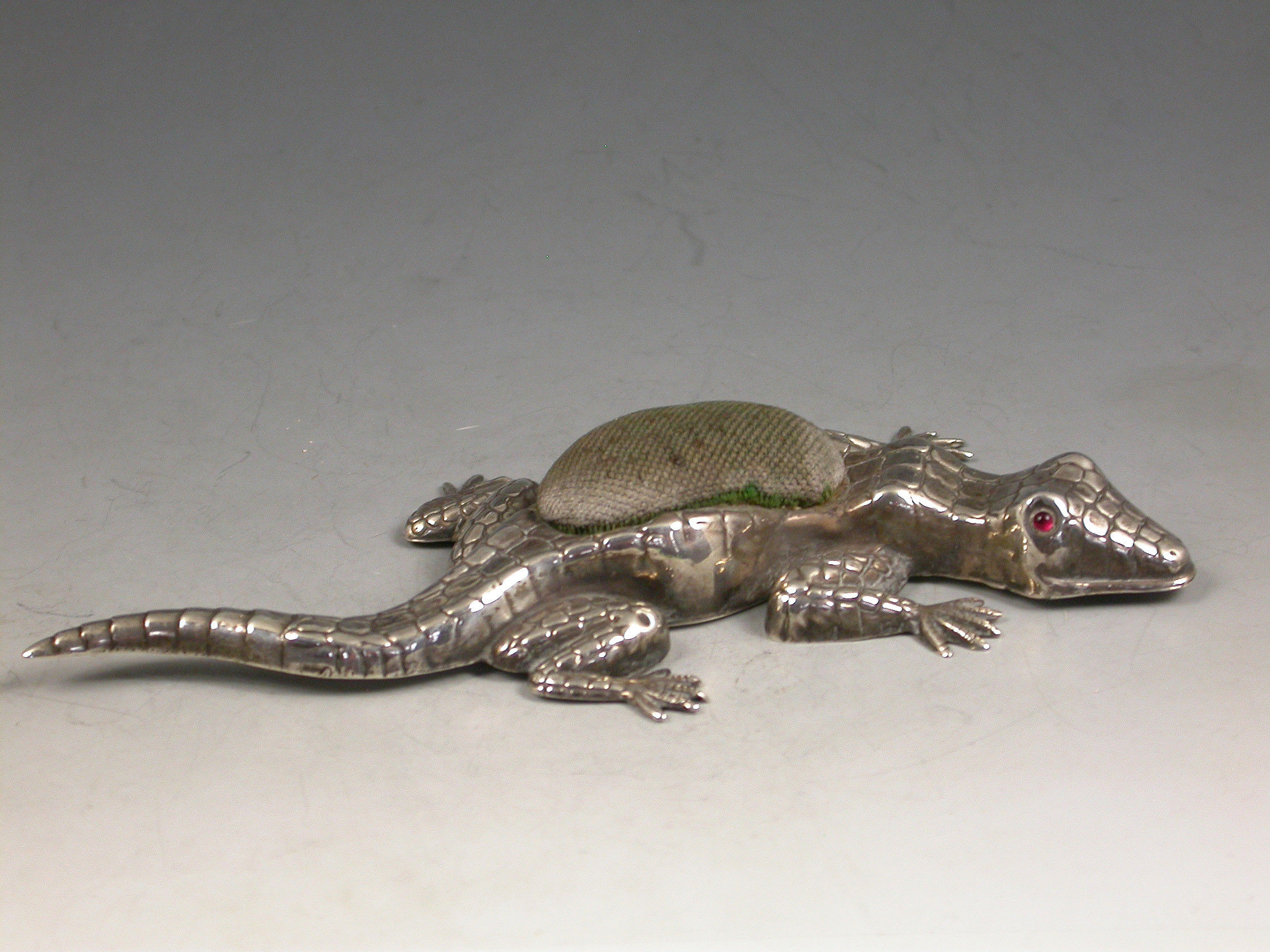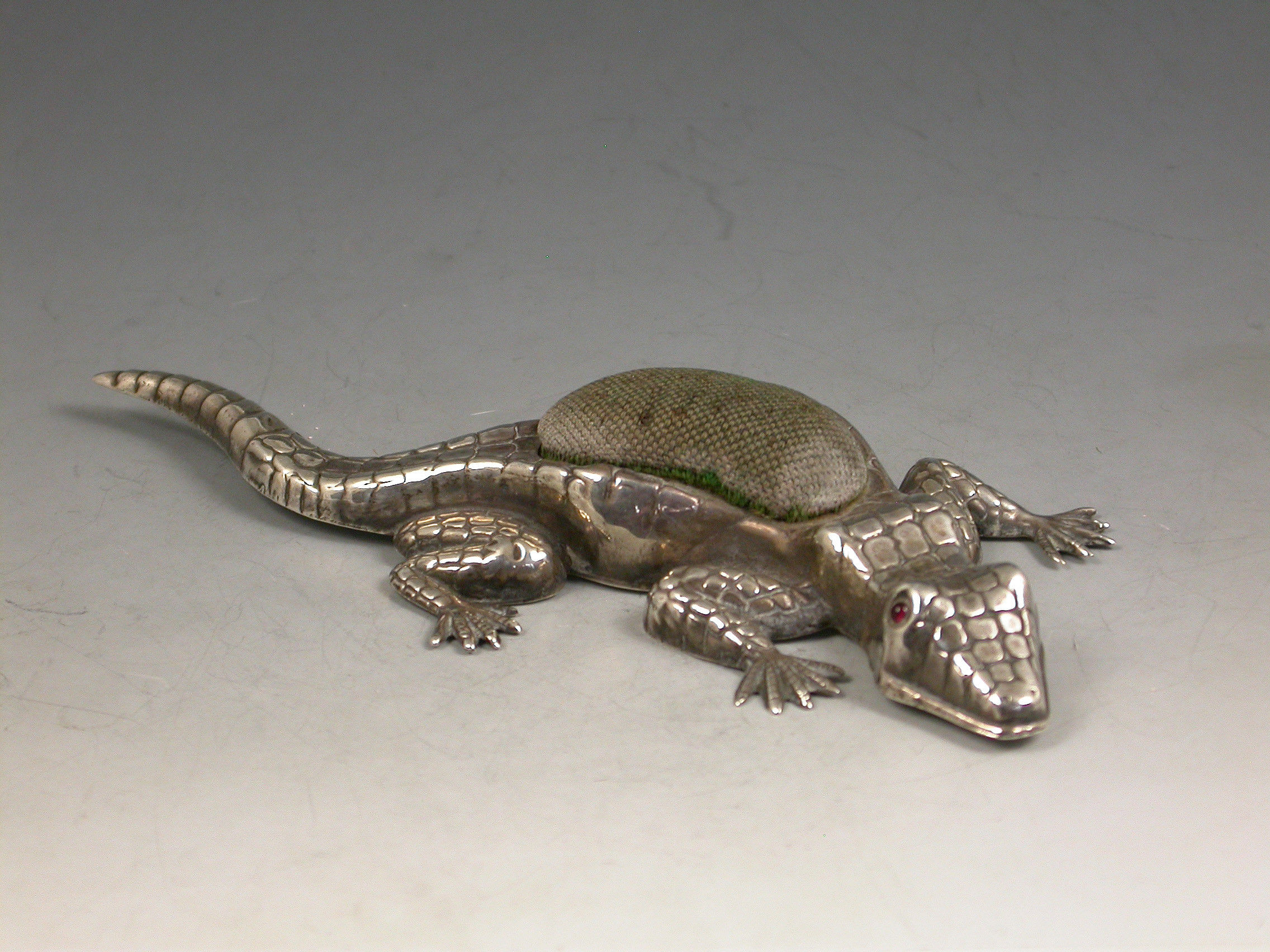 Edwardian Novelty Antique Silver Lizard Pin Cushion