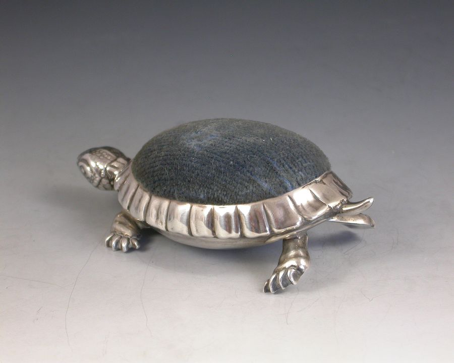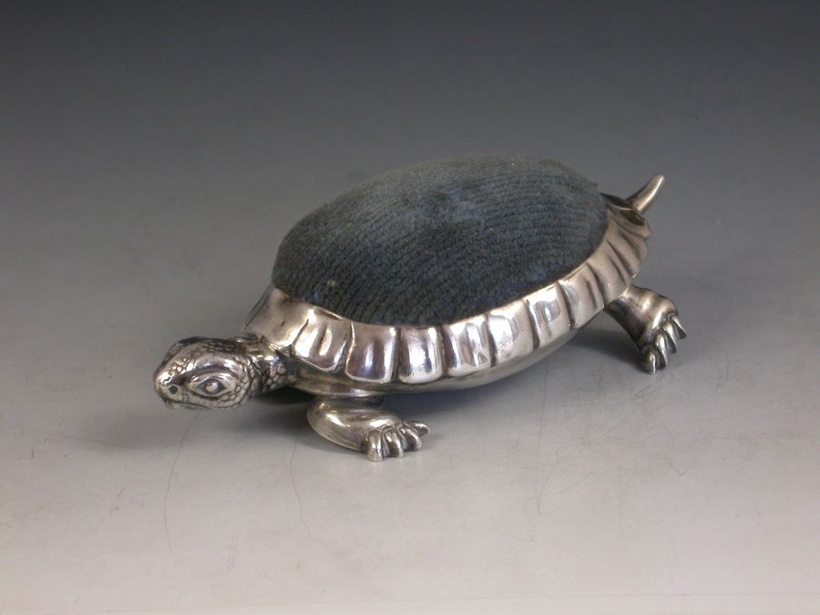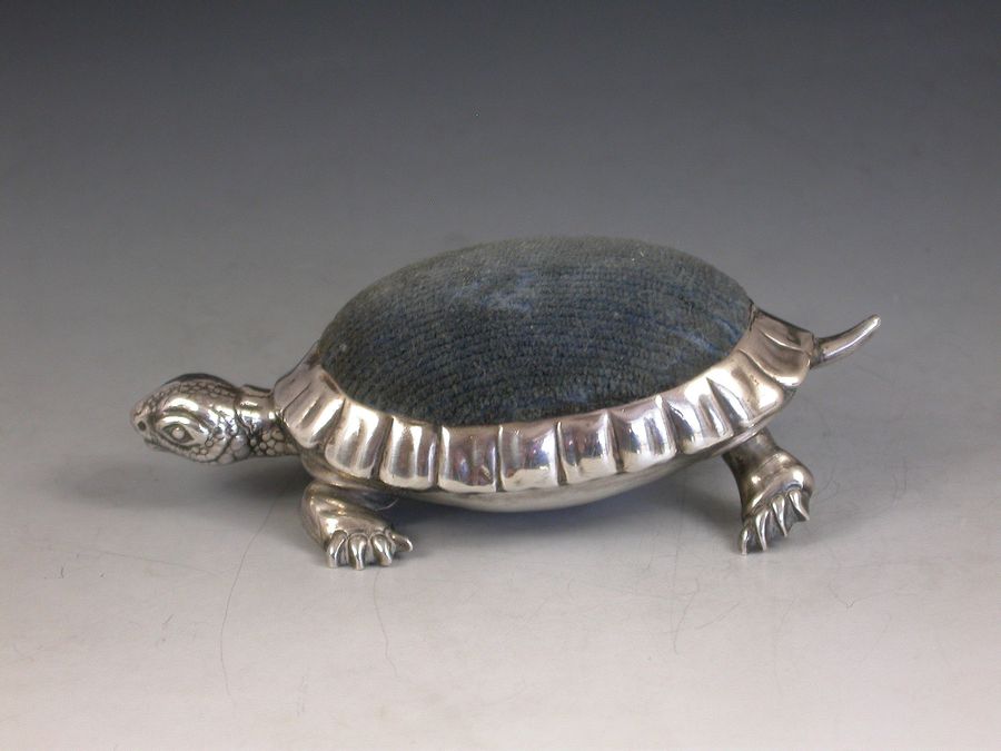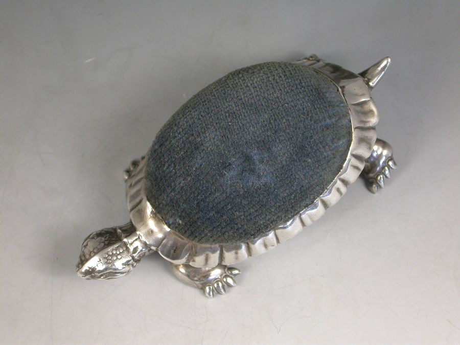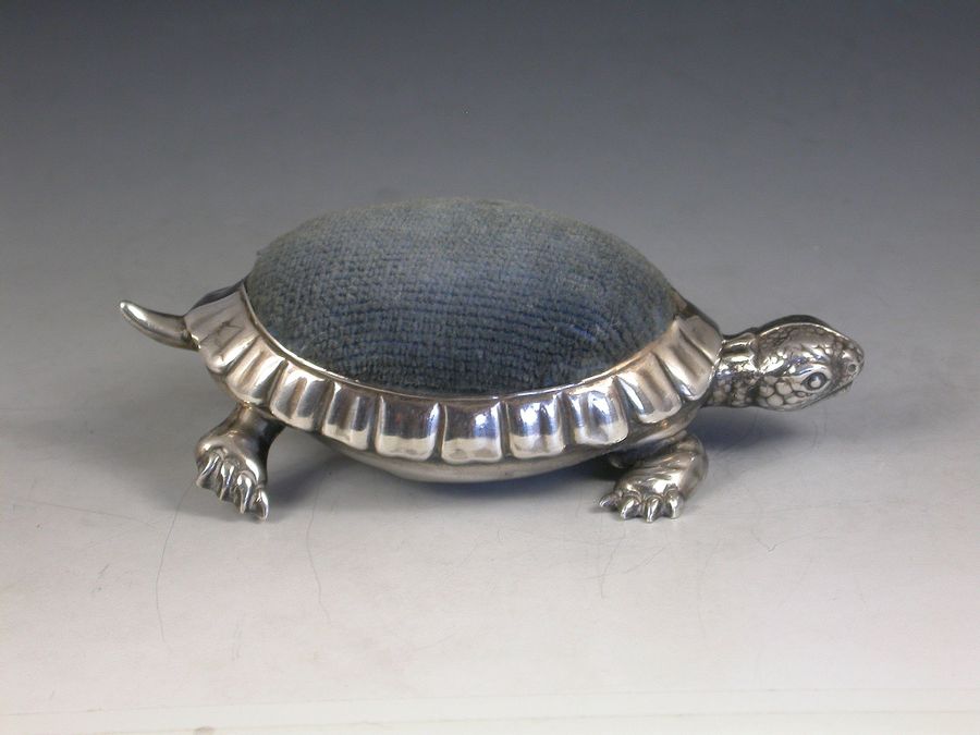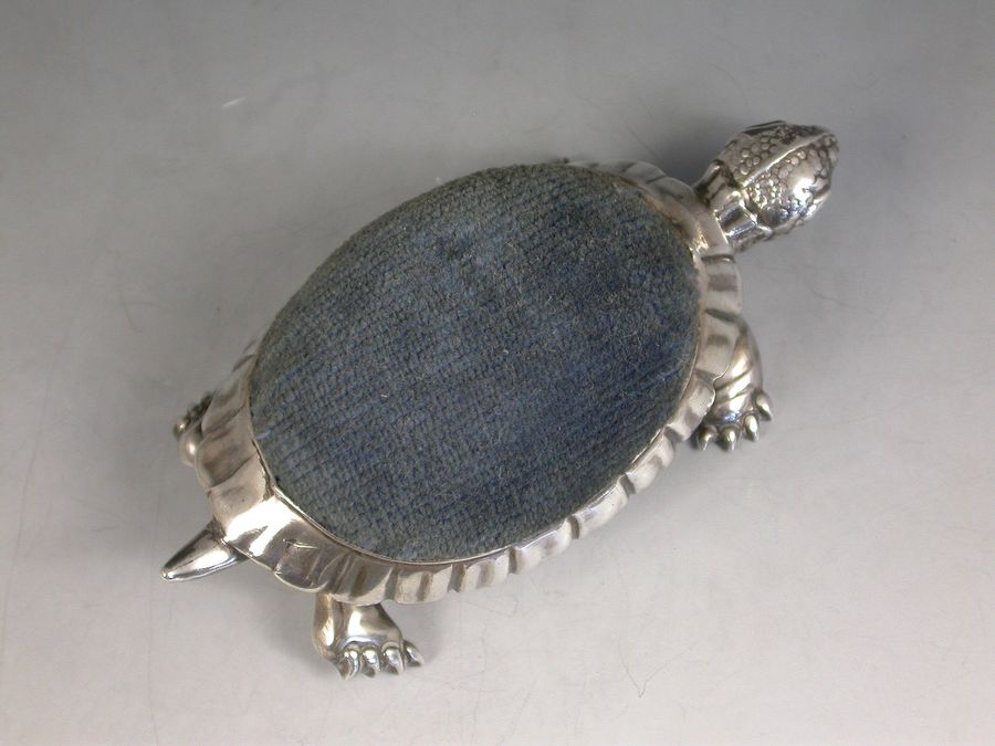 Edwardian Novelty Antique Silver Tortoise Pin Cushion