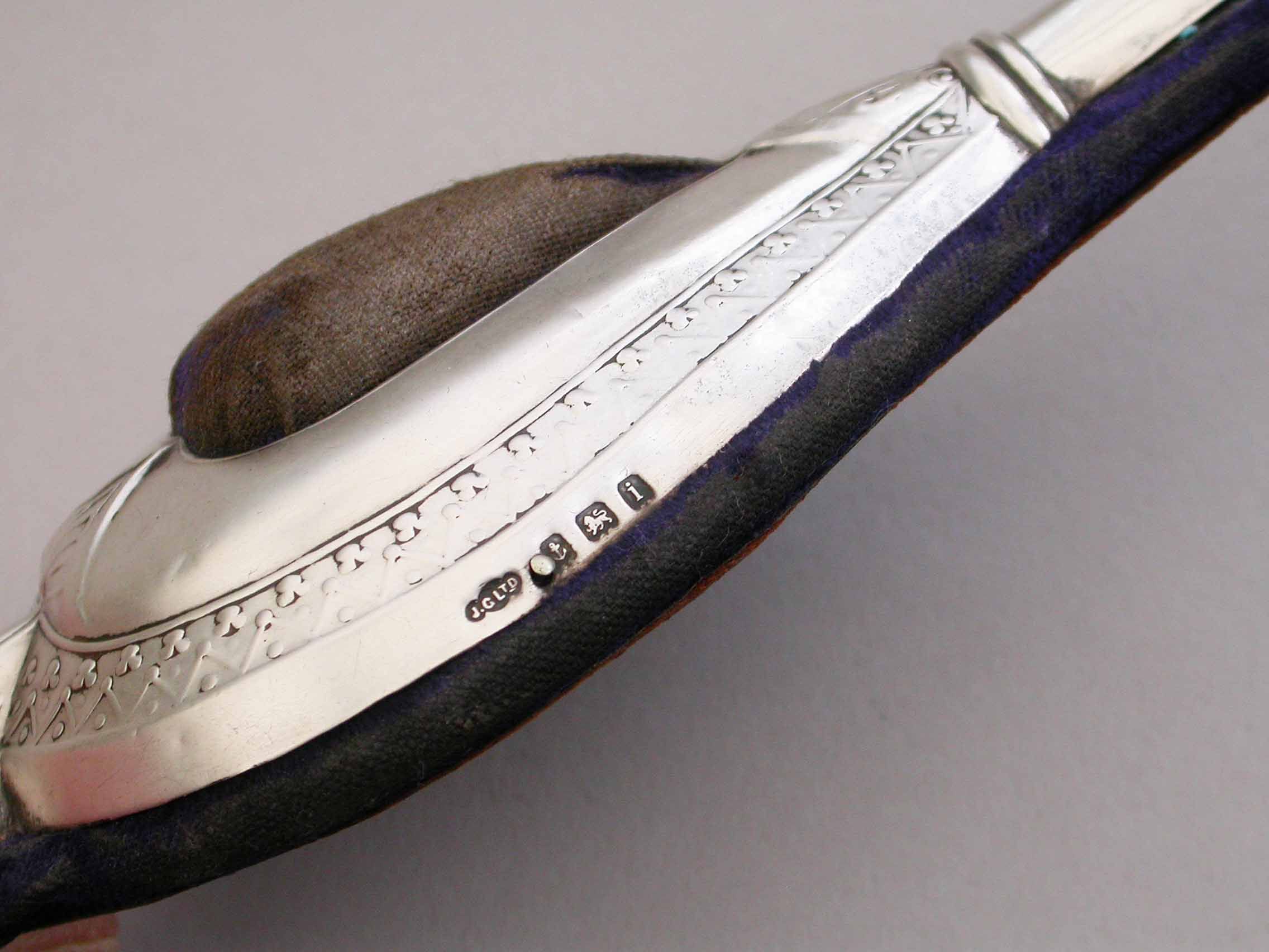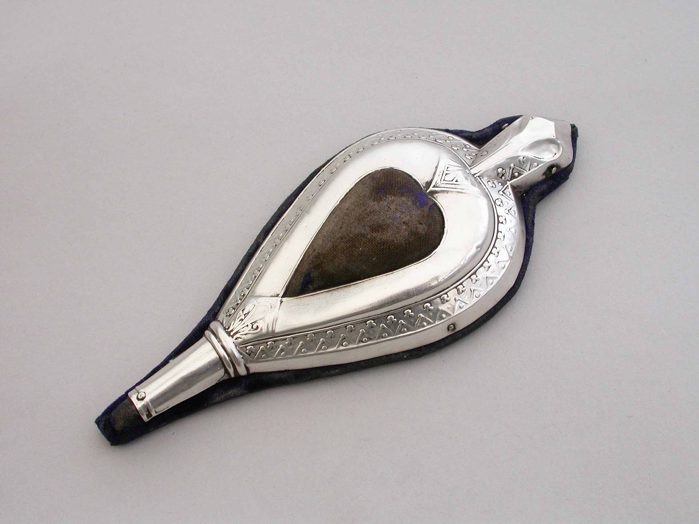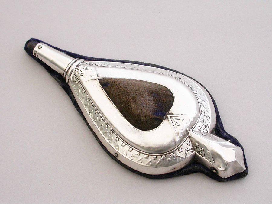 An Edwardian novelty silver pin cushion, made in the form of a vintage pair of bellows, with embossed silver frame and original blue velvet cushion.