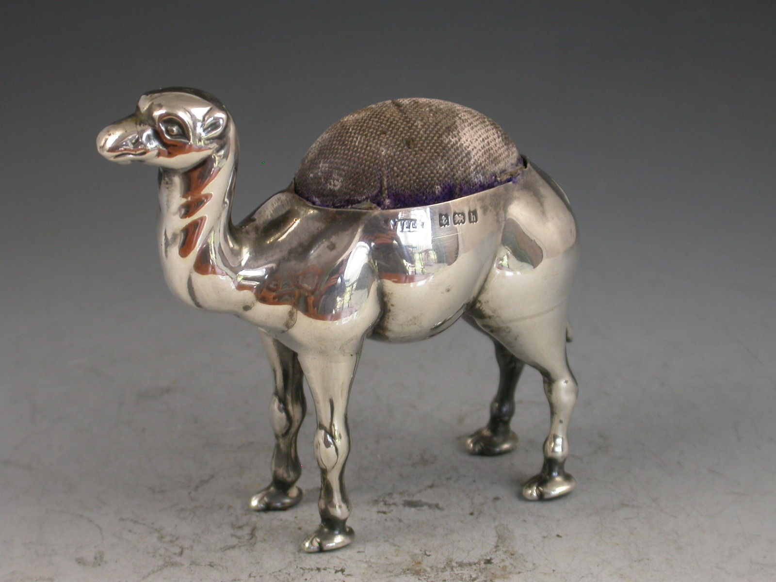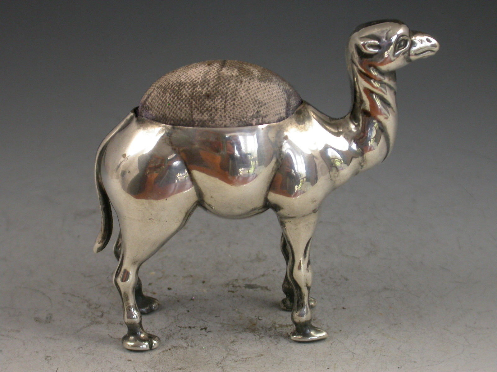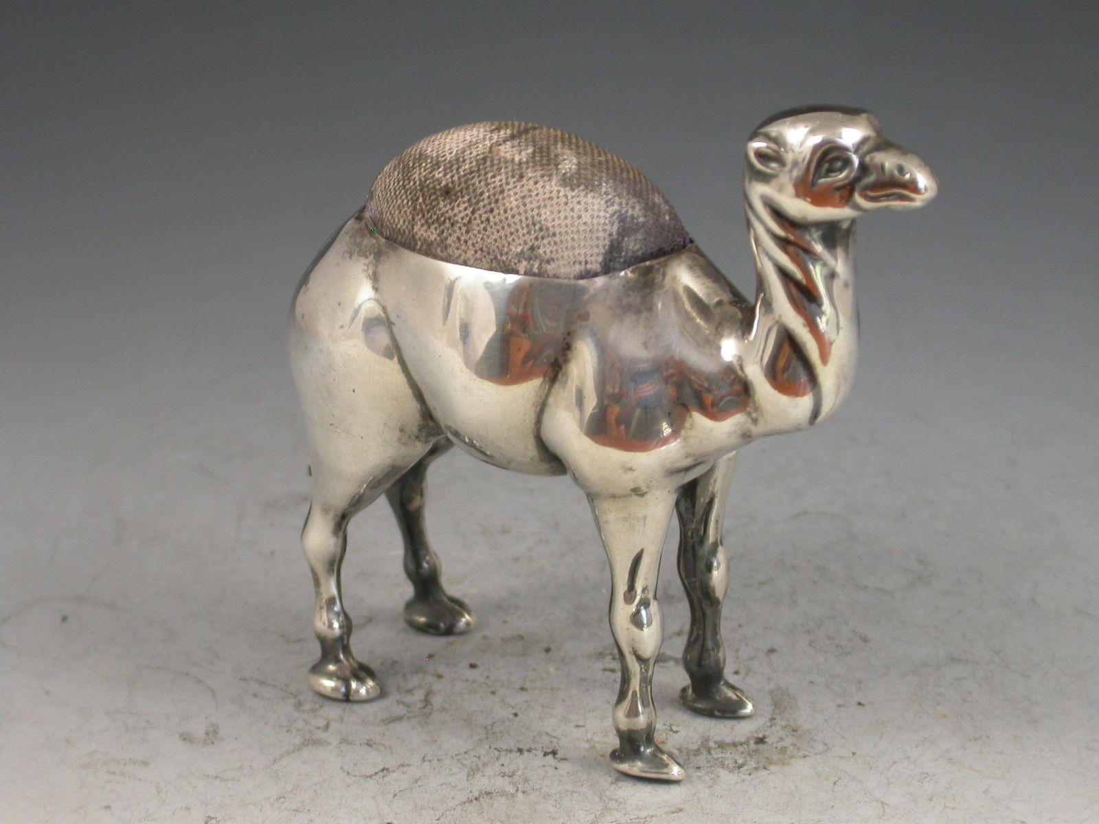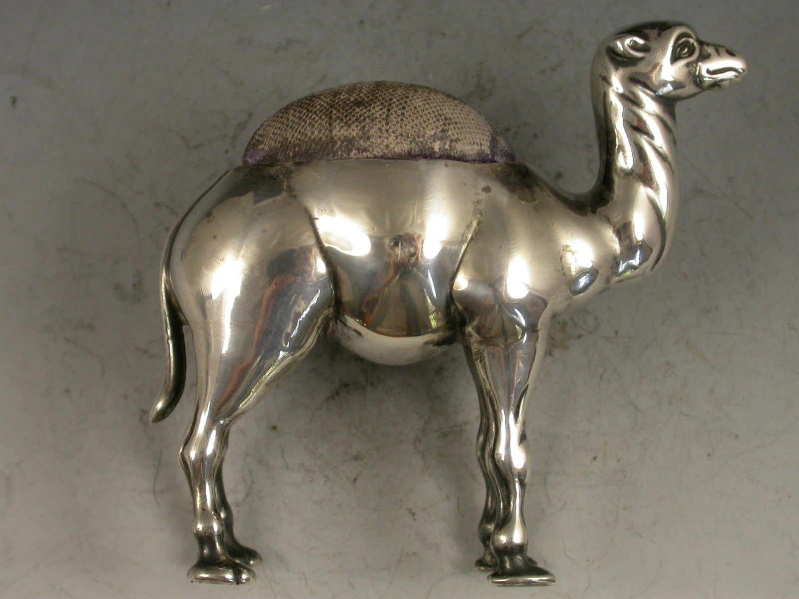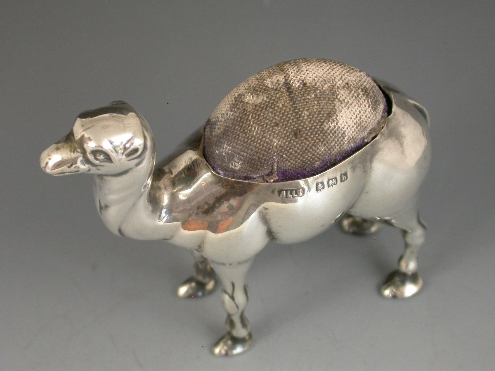 An Edwardian novelty silver Pin Cushion made in the form of Camel.