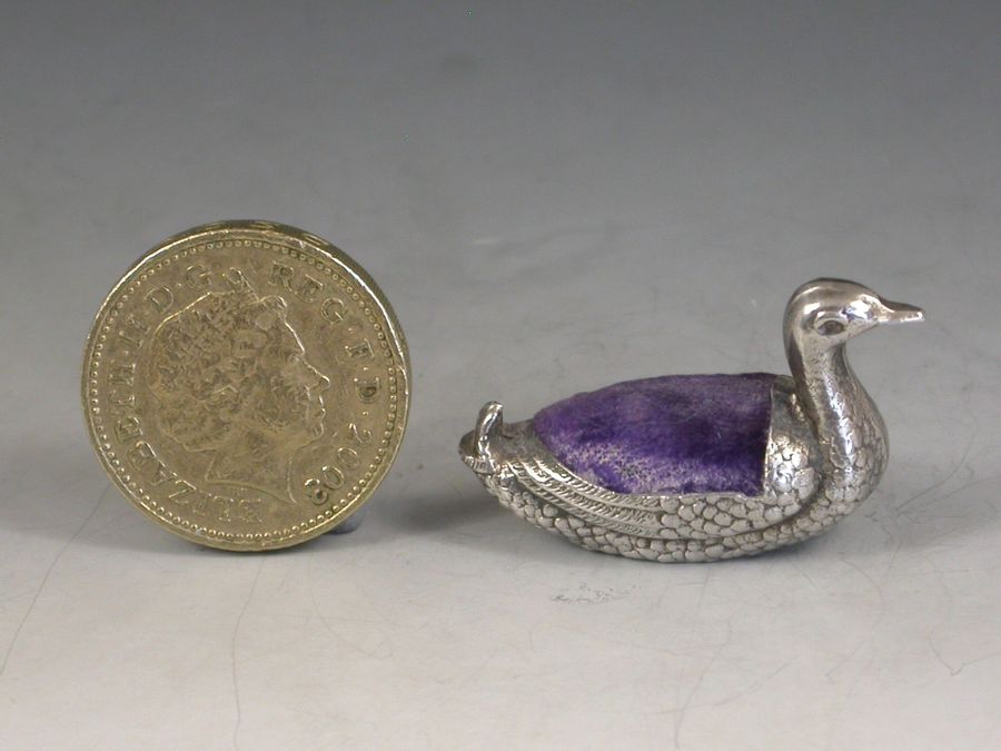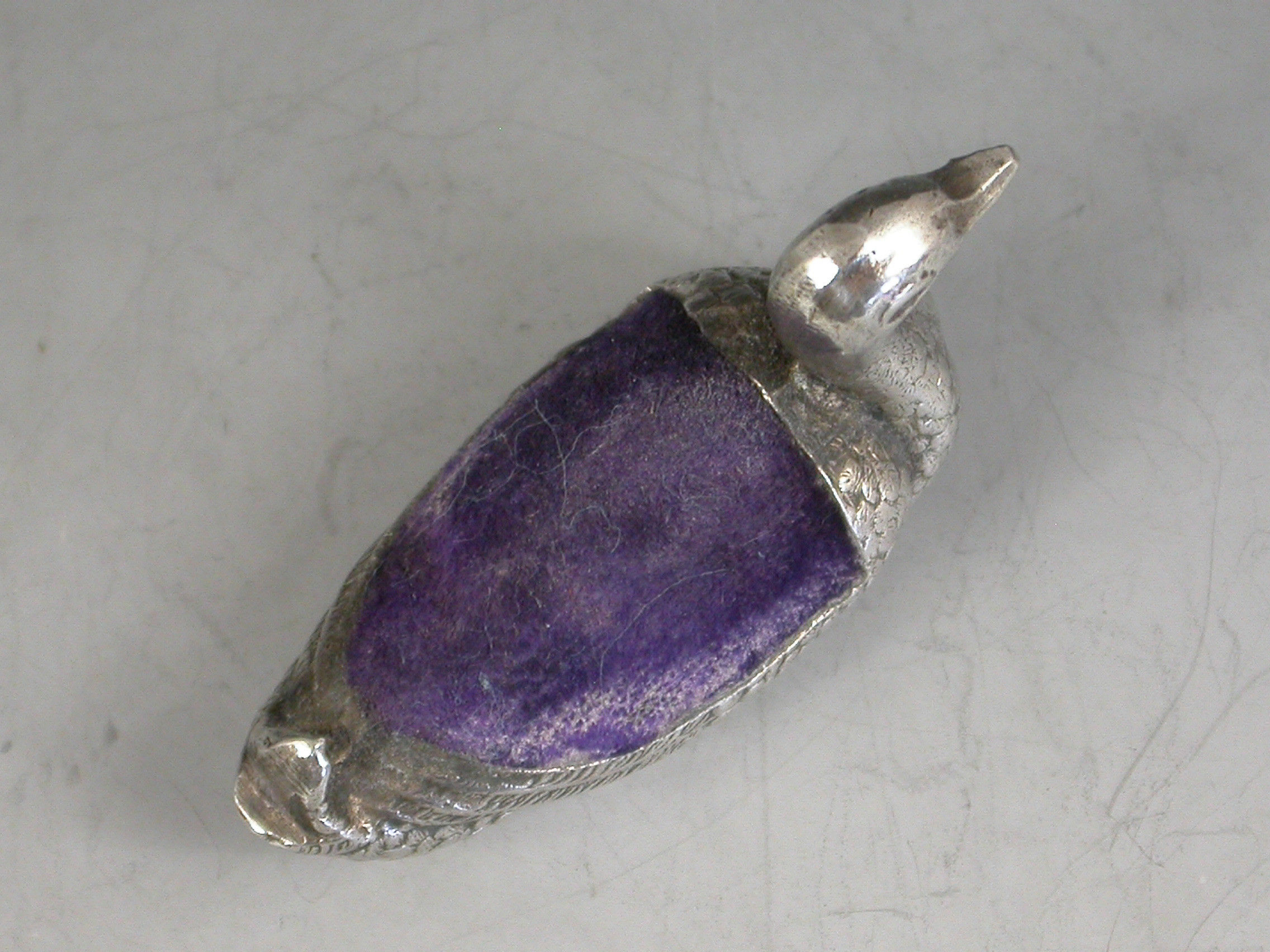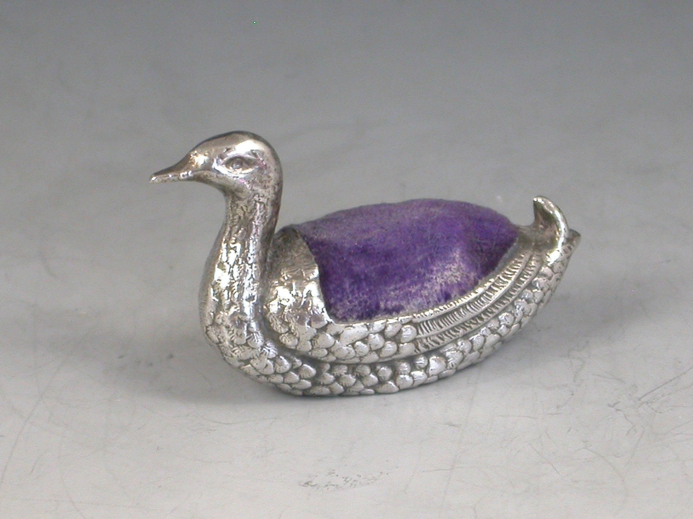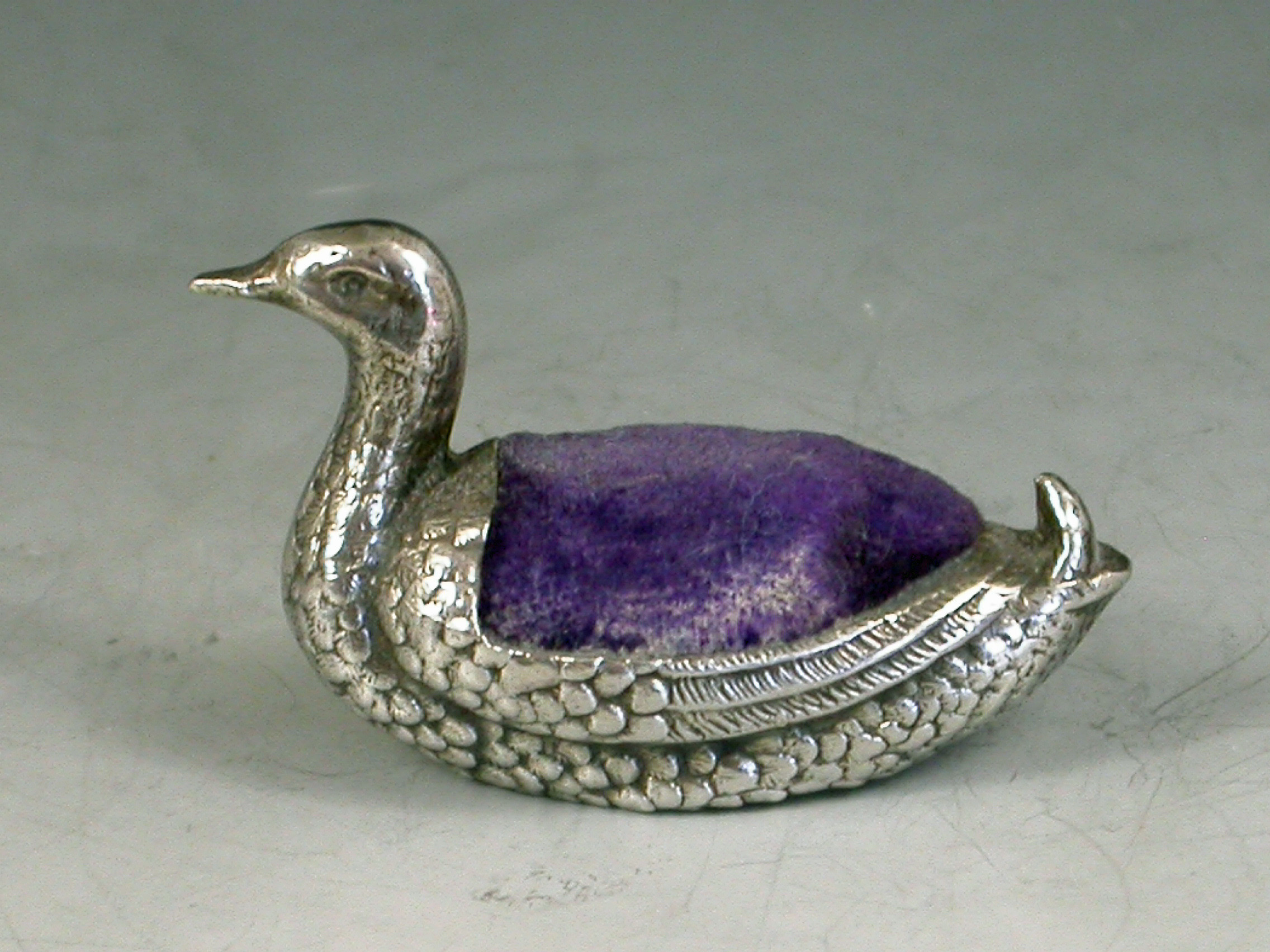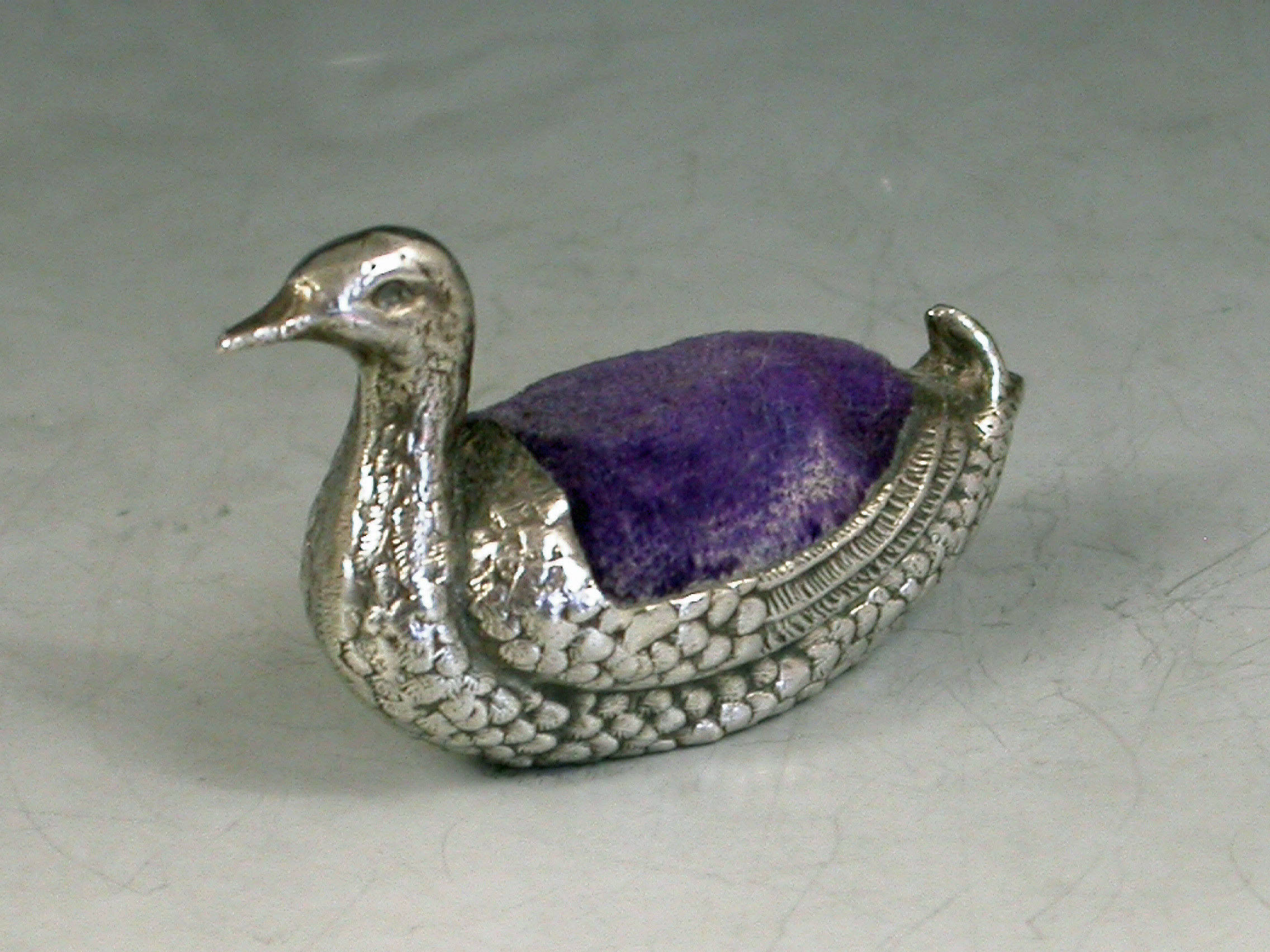Edwardian Novelty Silver Duck Pin Cushion - Small Size