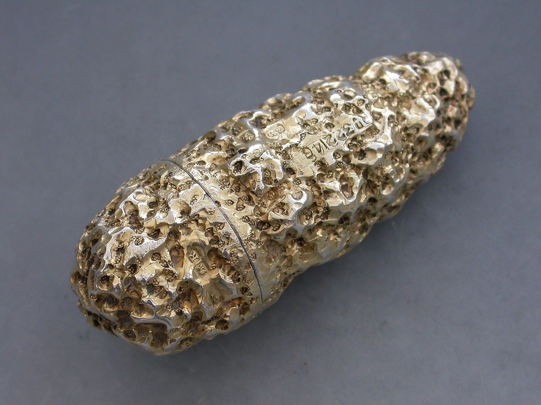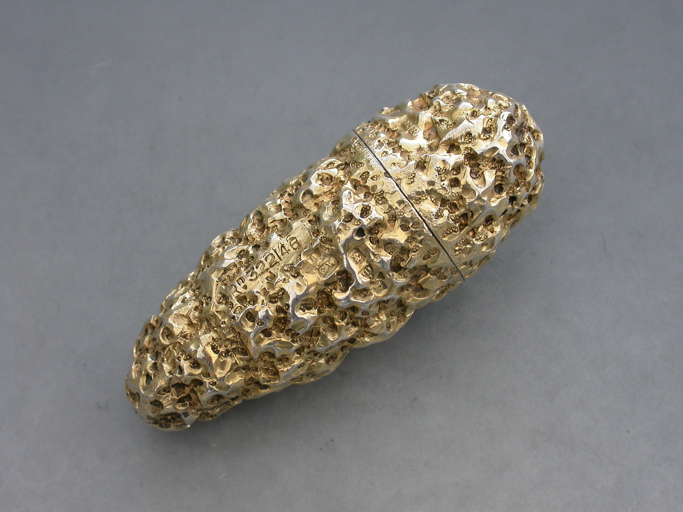 Edwardian Novelty Silver Gilt Gold Nugget Scent Bottle