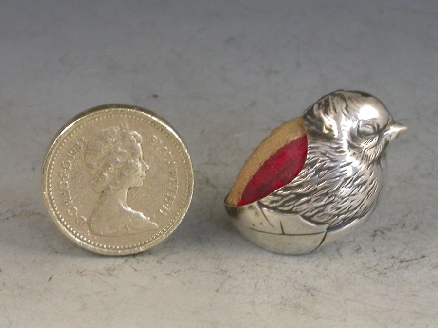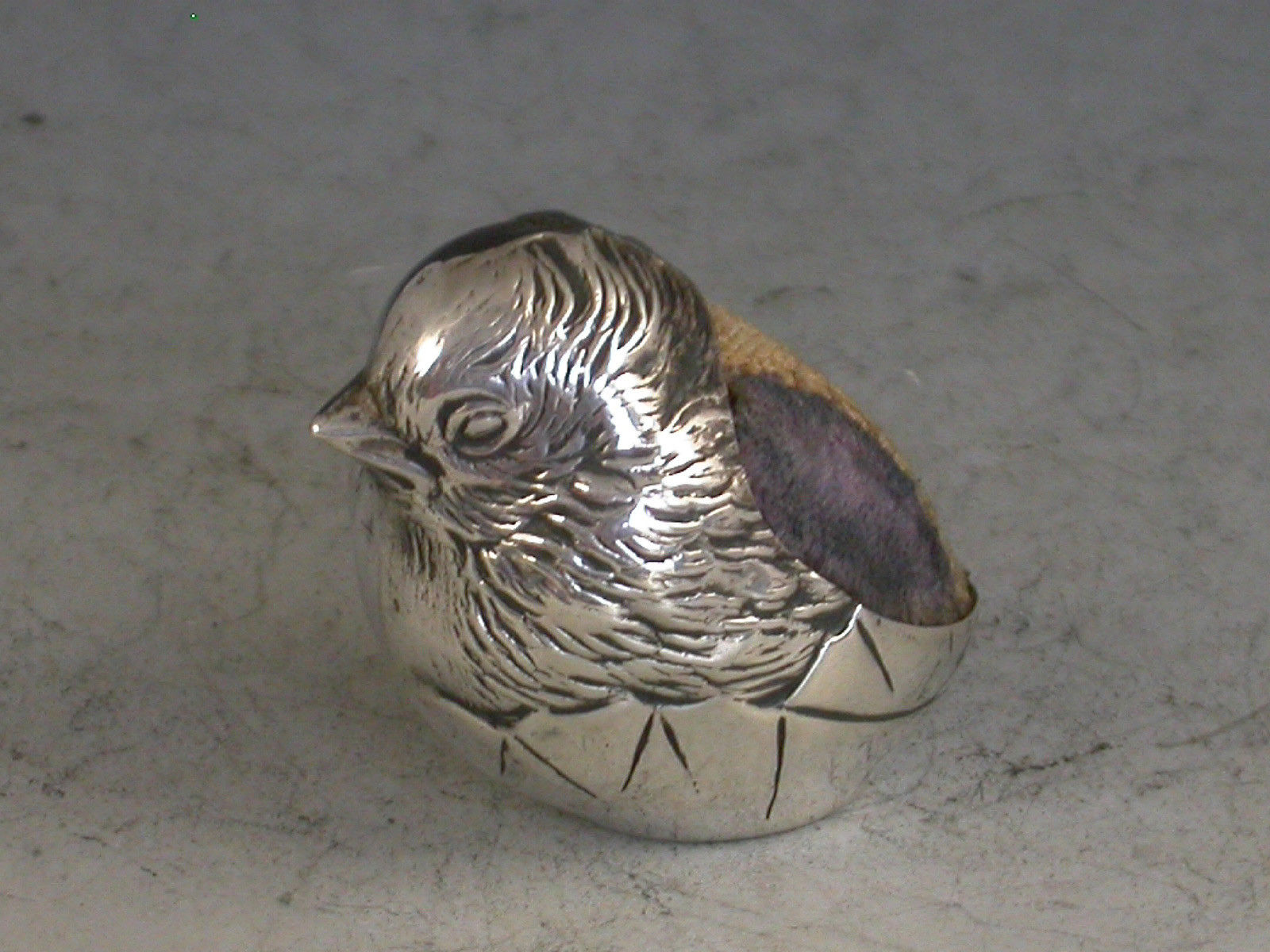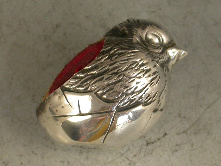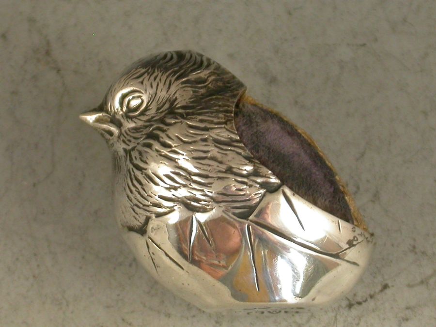 Edwardian Novelty Silver Hatching Chick Pin Cushion - Small size