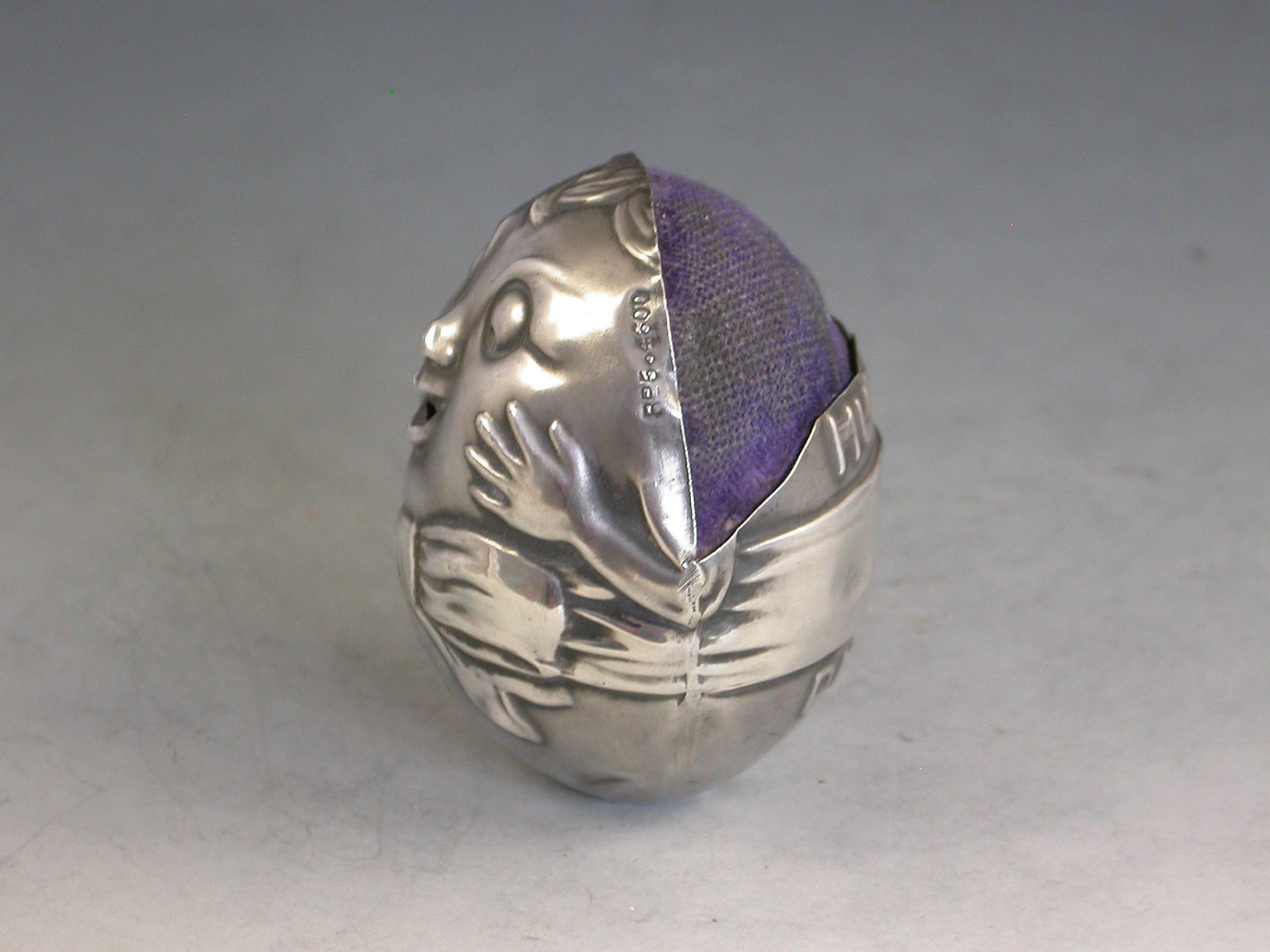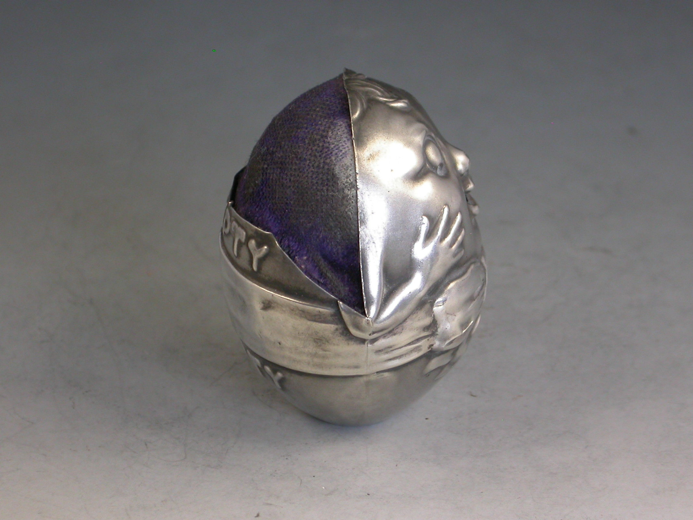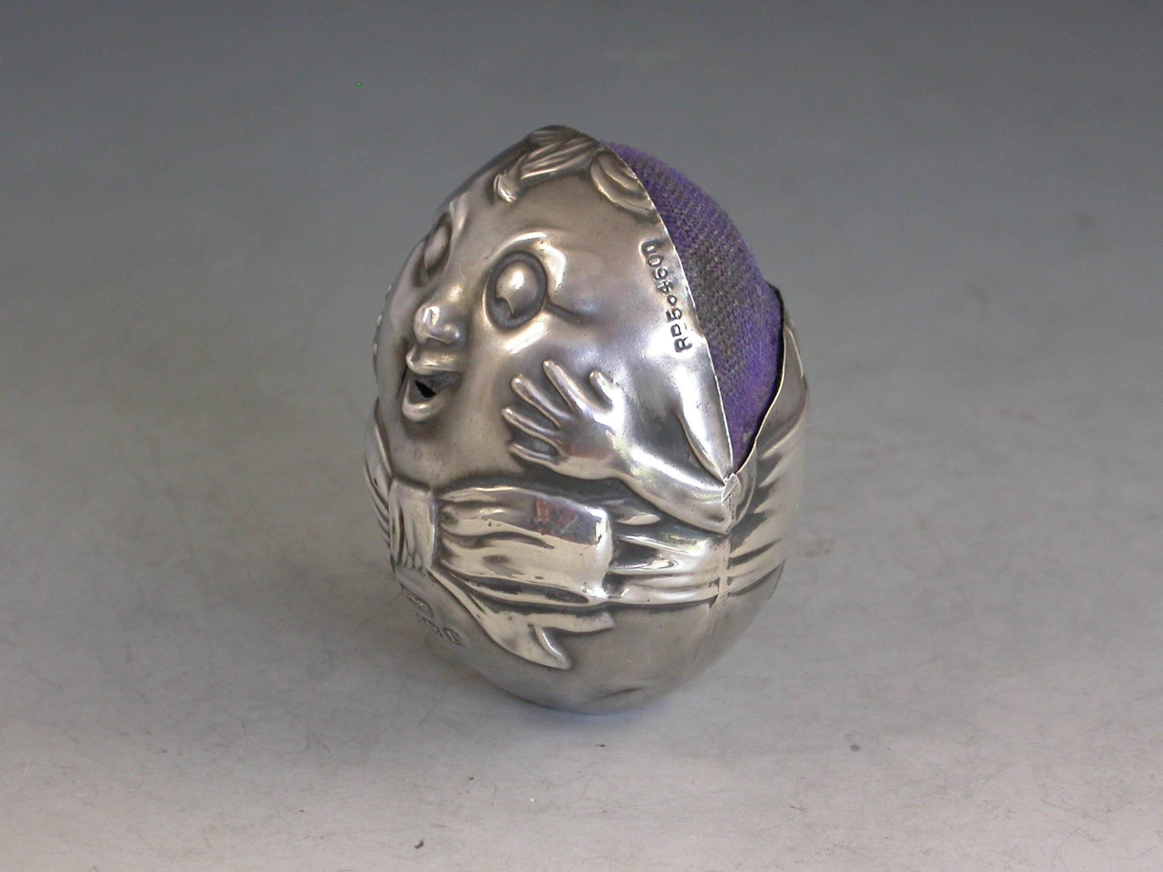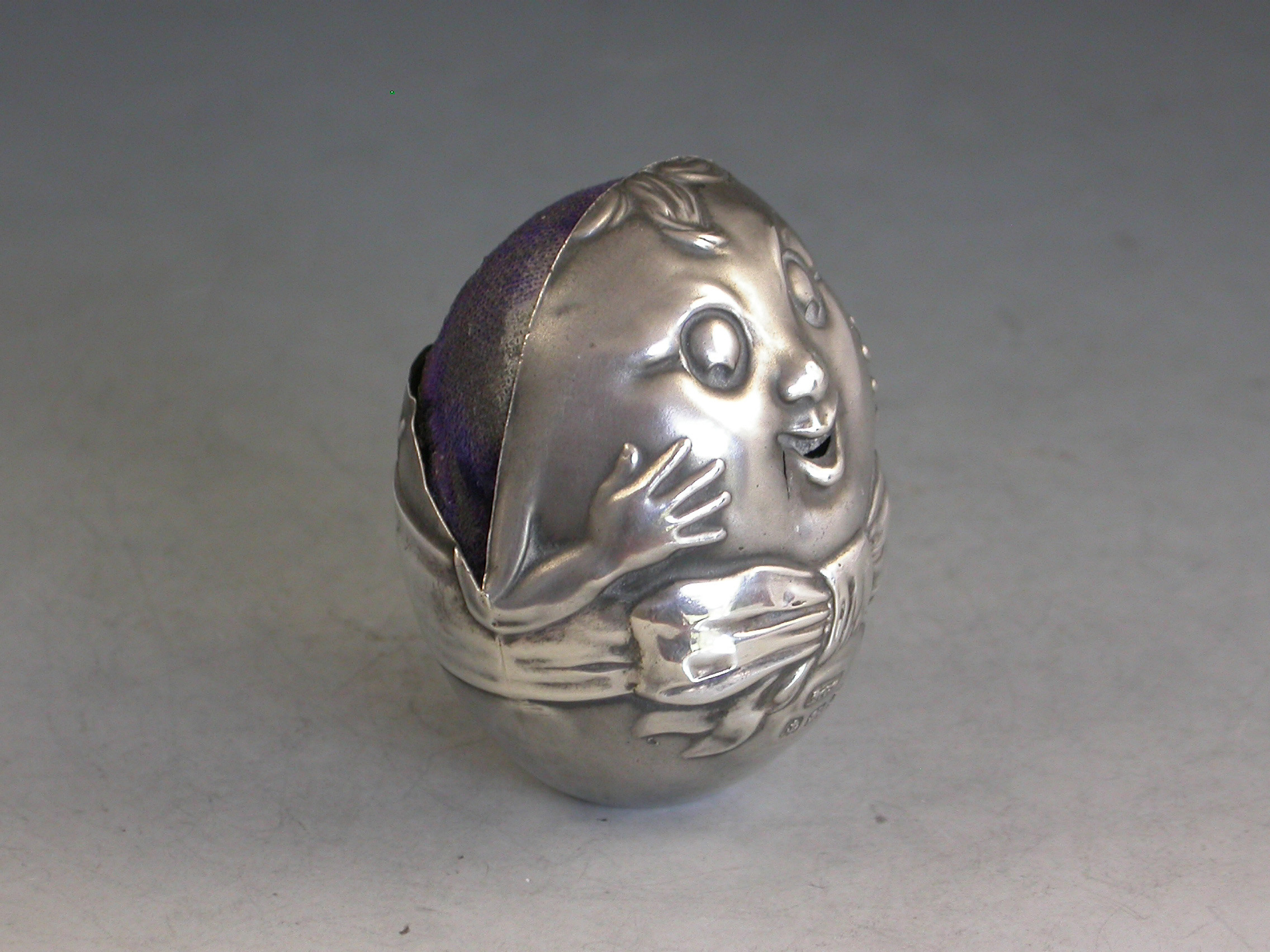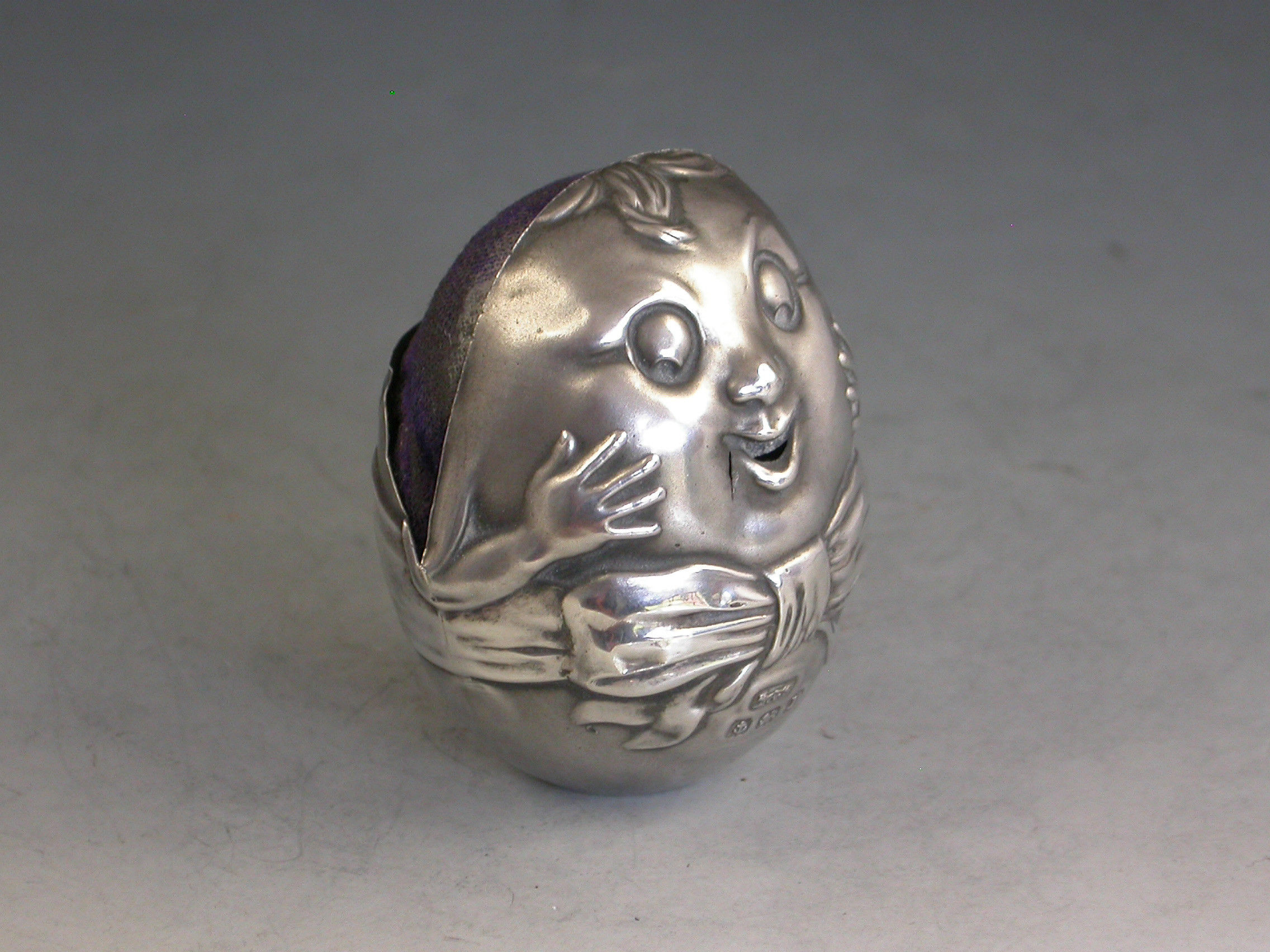 Edwardian Novelty Silver Humpty Dumpty Pin Cushion