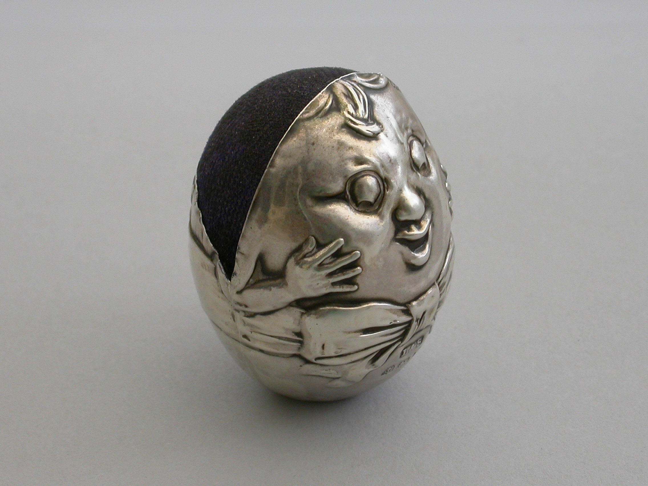 Edwardian Novelty Silver Humpty Dumpty Pin Cushion