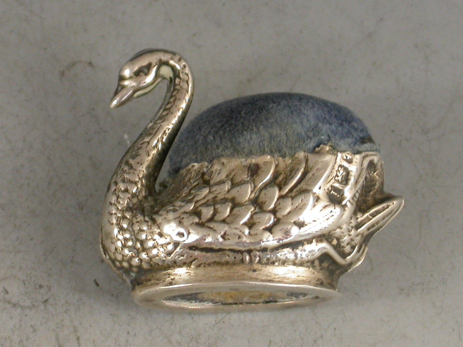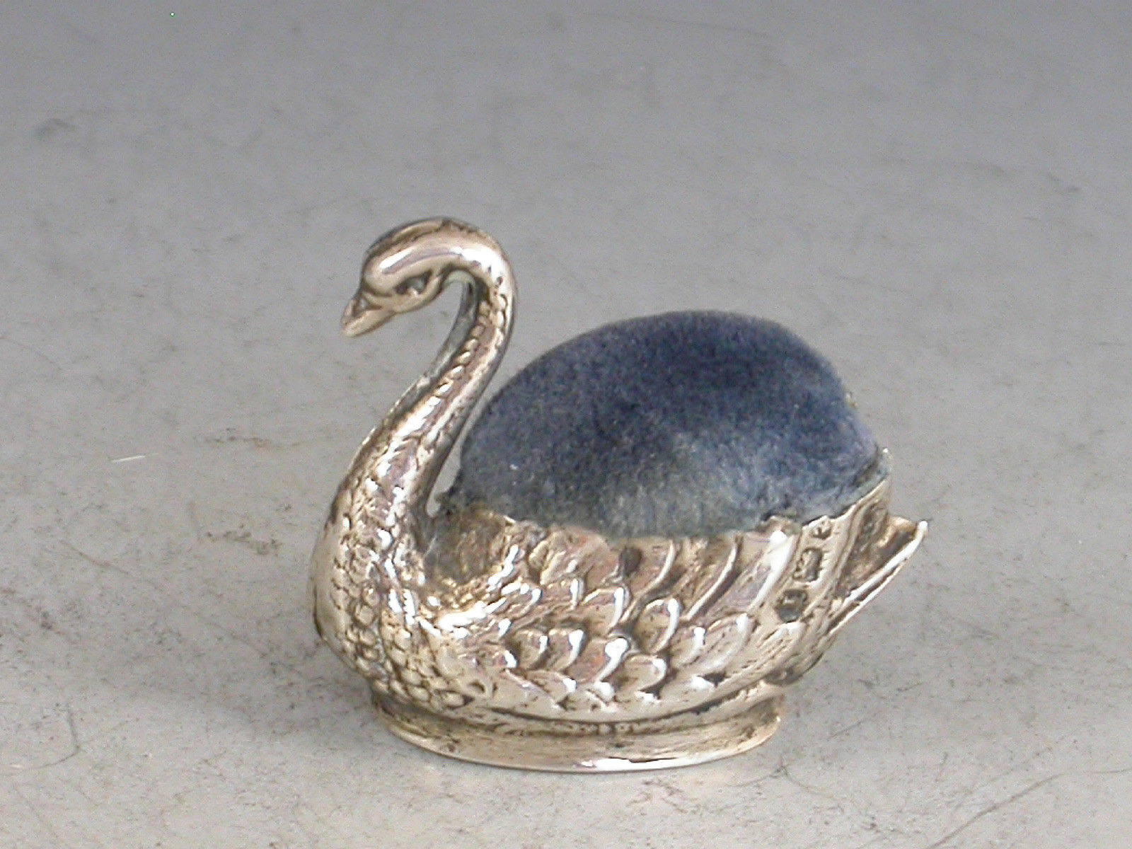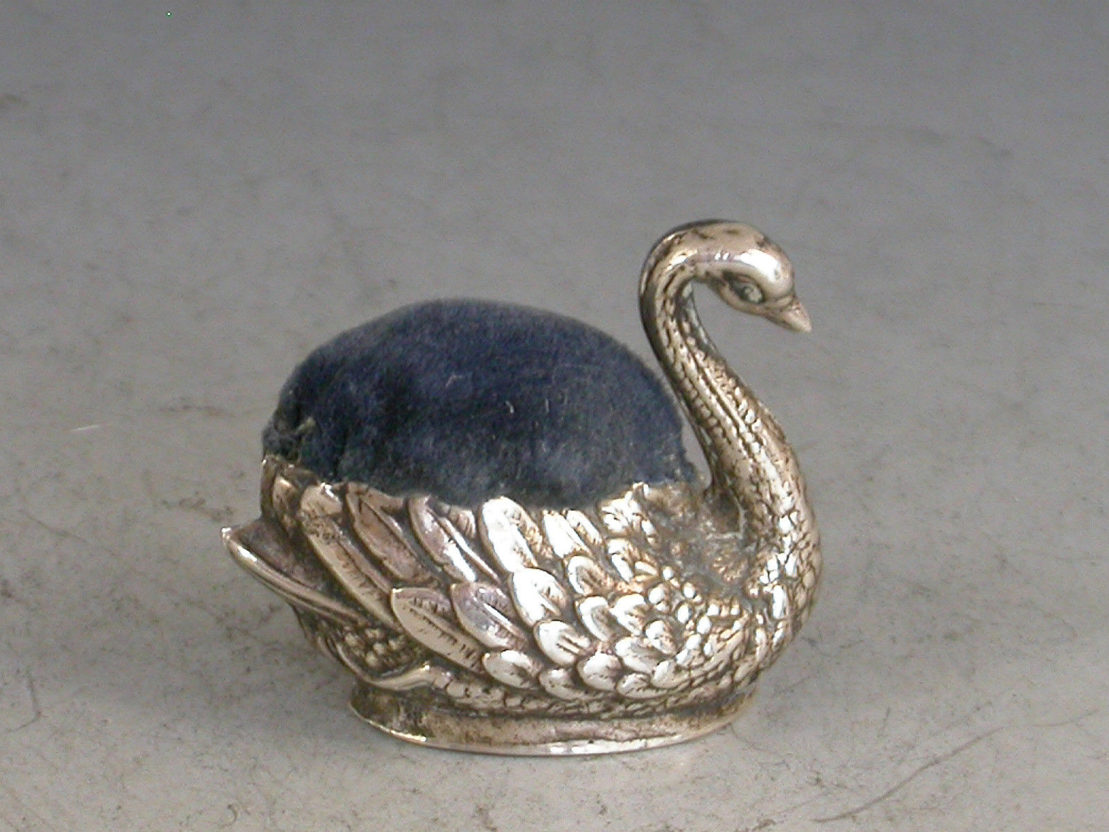 A good Edwardian novelty silver Pin cushion made in the form of a Swan and of a small size.