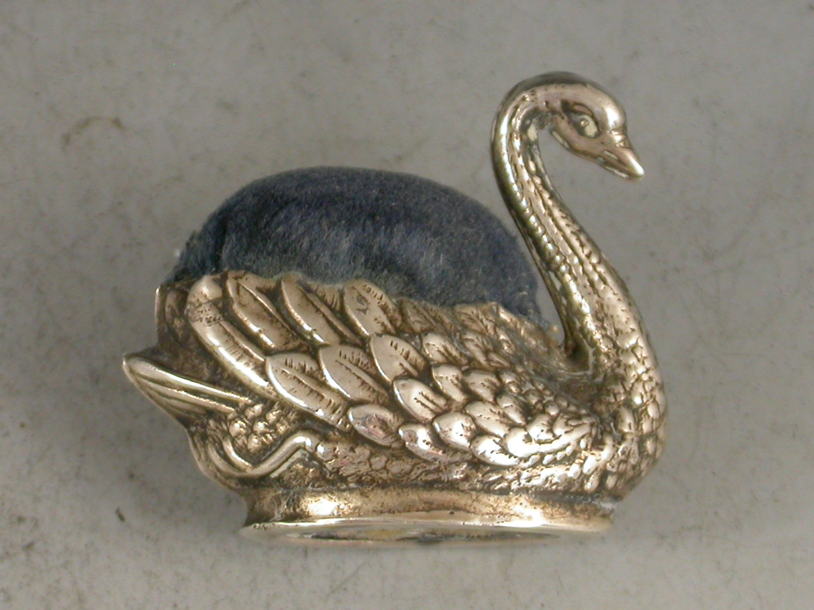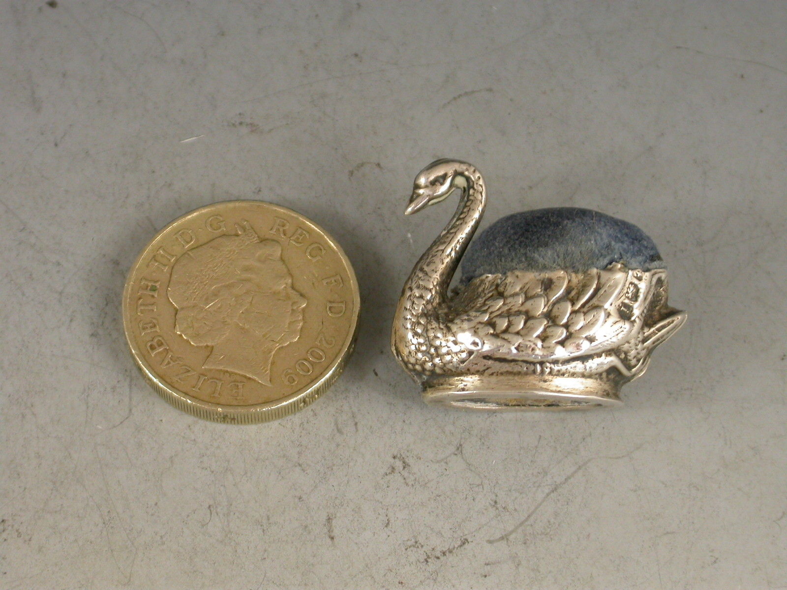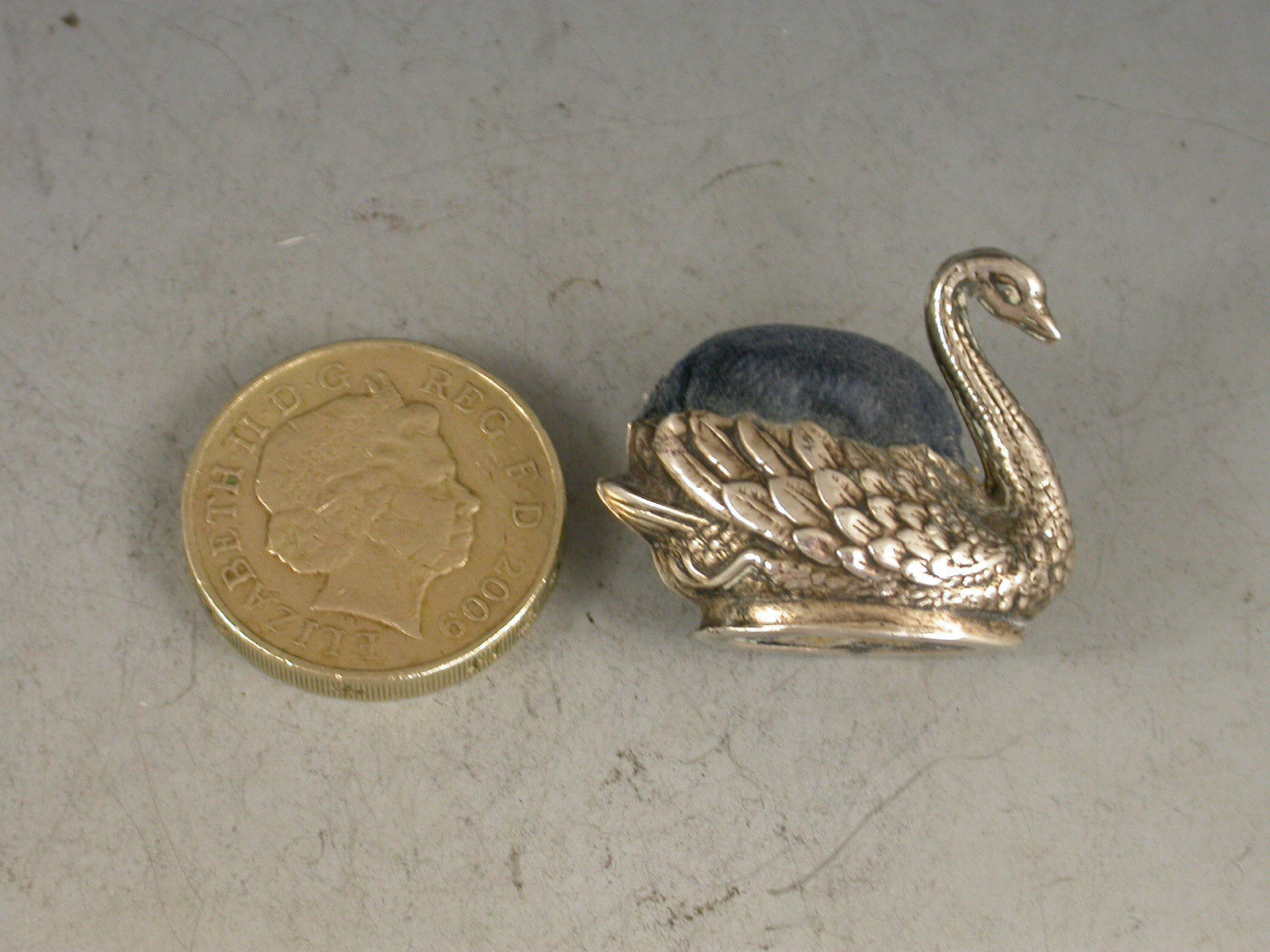 A good Edwardian novelty silver Pin cushion made in the form of a Swan and of a small size.