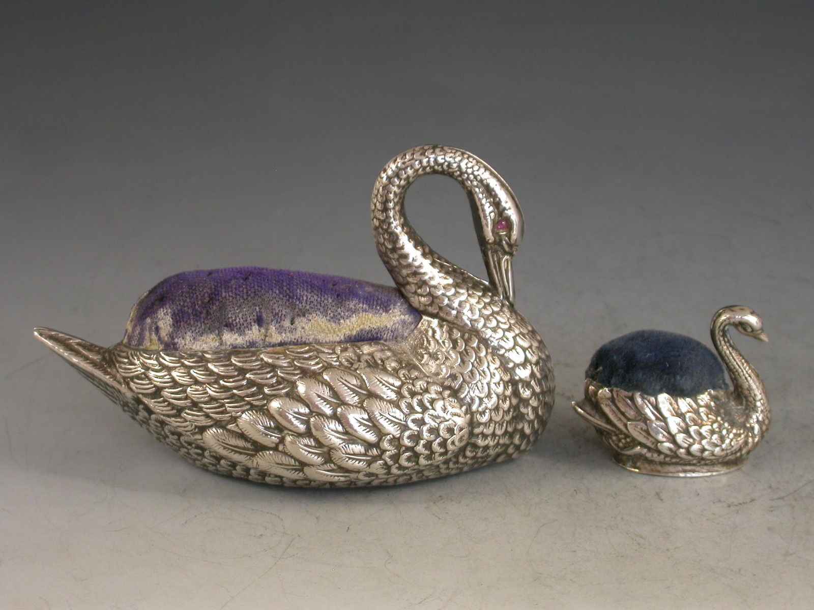 Edwardian Novelty Silver Miniature Swan Pin Cushion