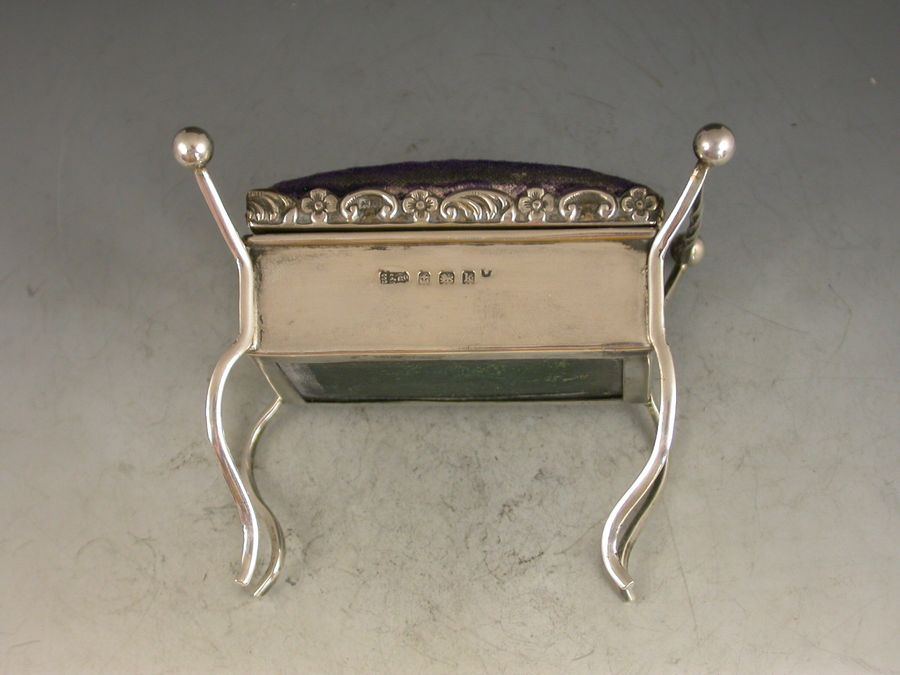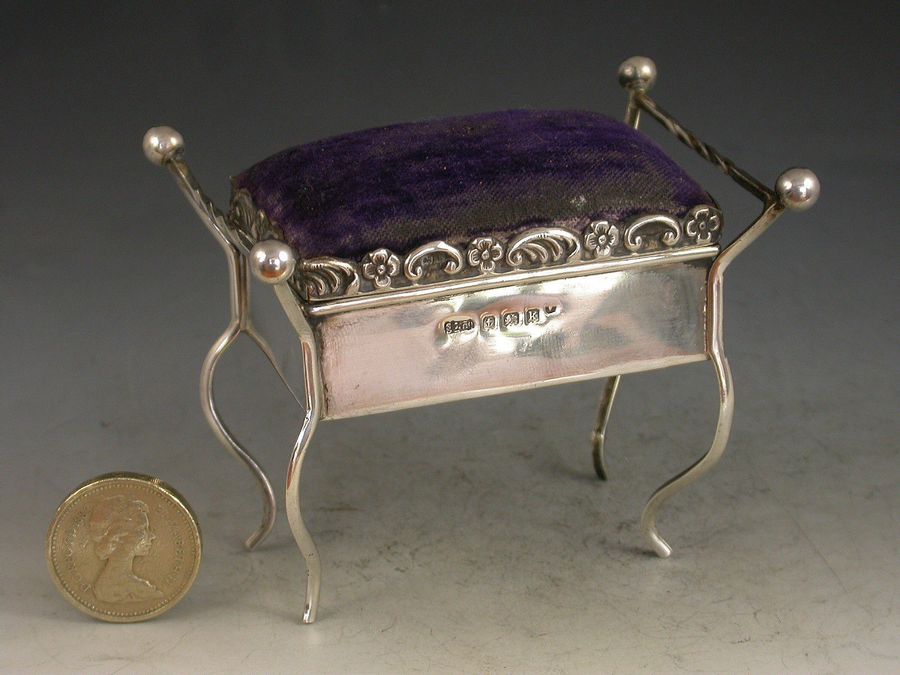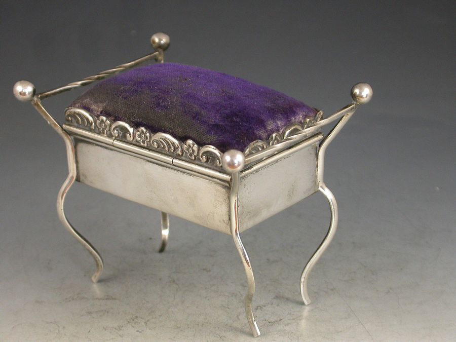 Edwardian Novelty Silver Piano Stool Pin Cushion / Trinket Box