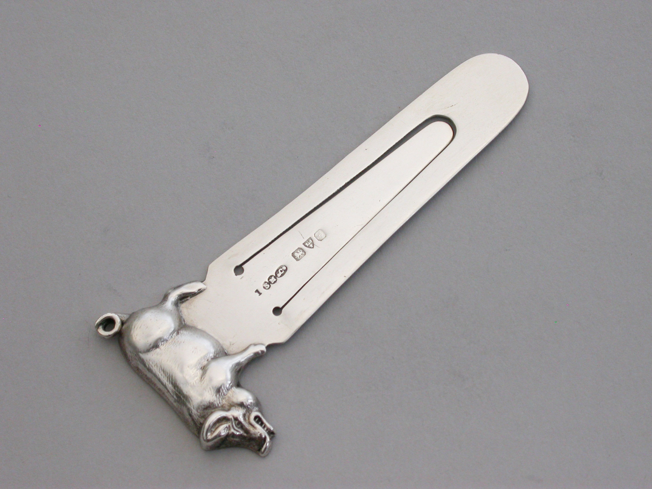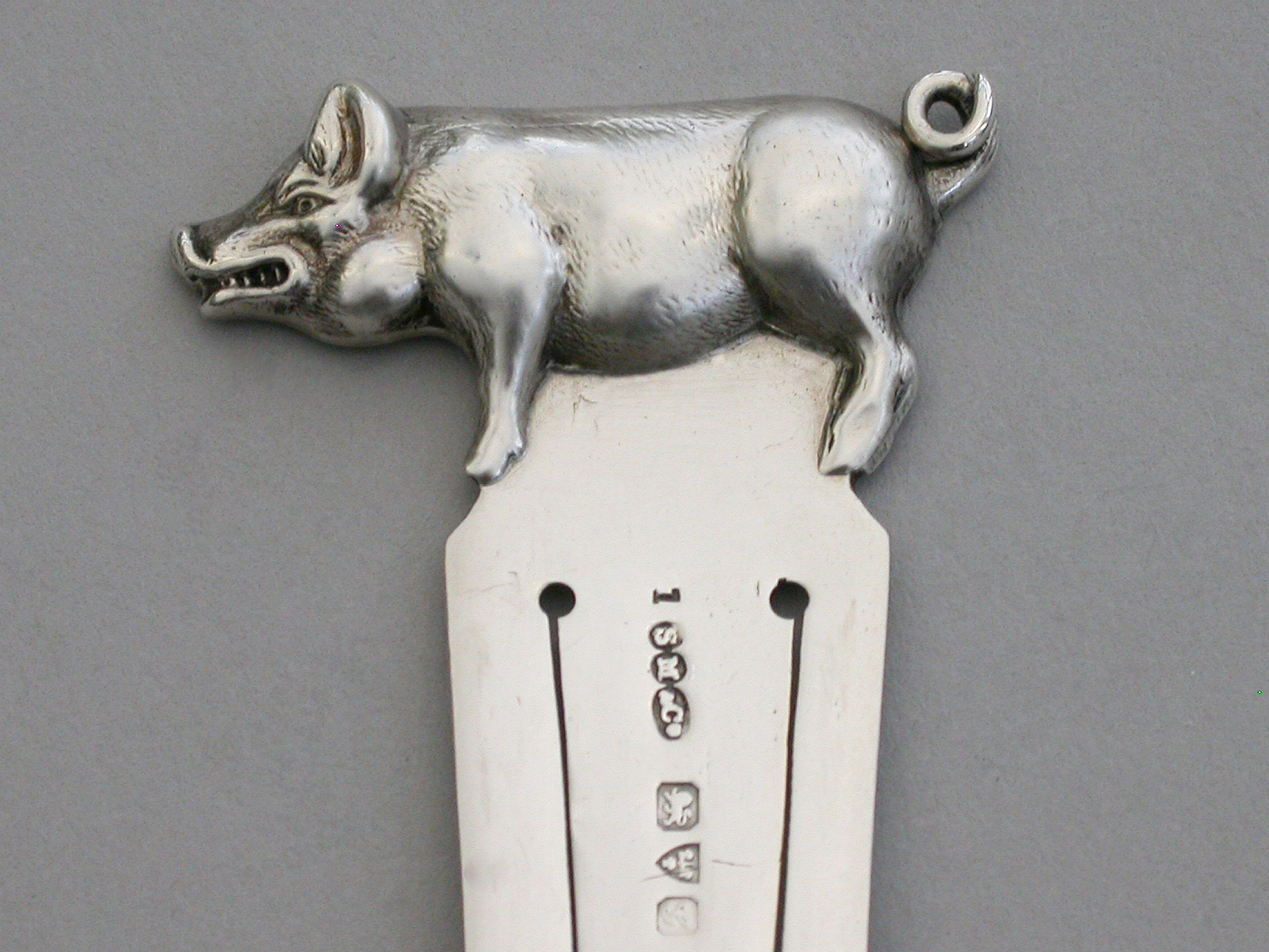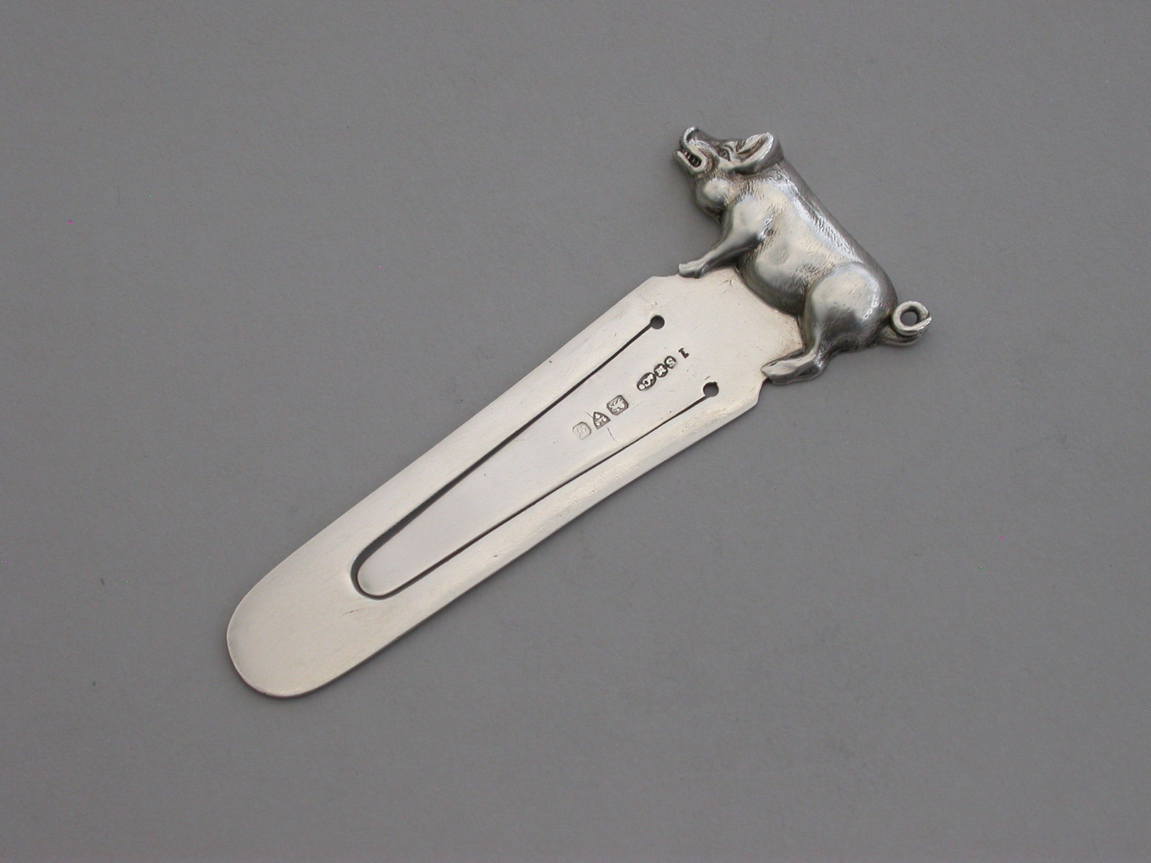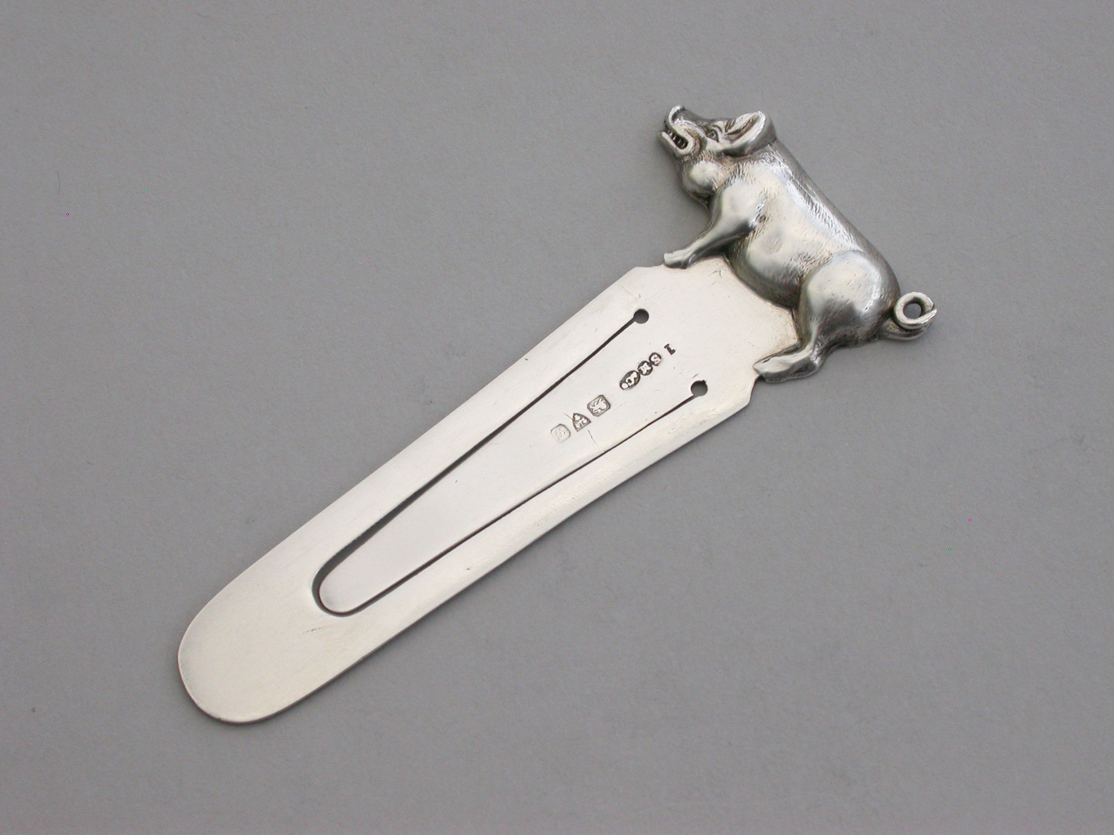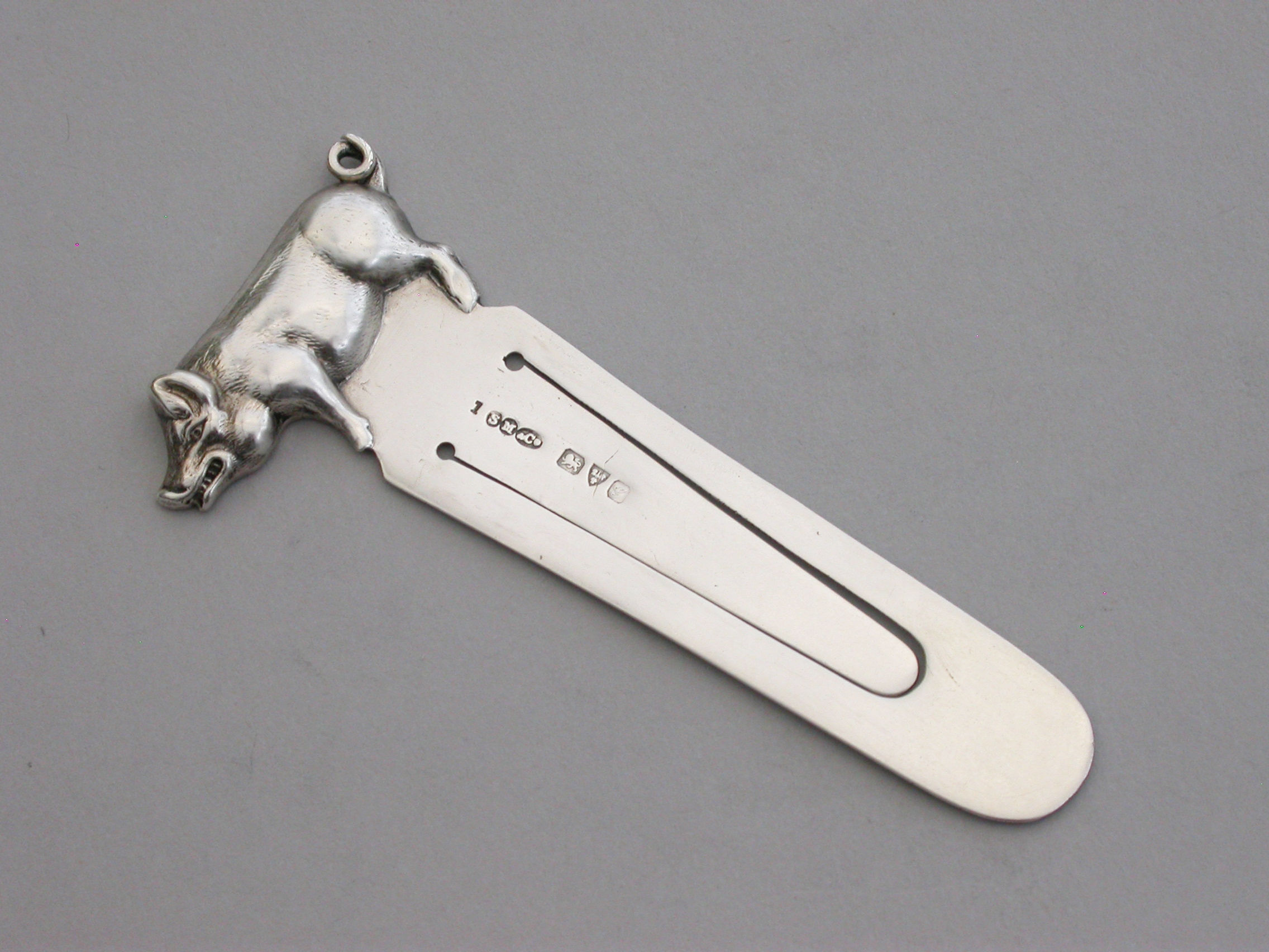 A good Edwardian silver novelty Bookmark, the terminal formed as a Pig or a Boar.