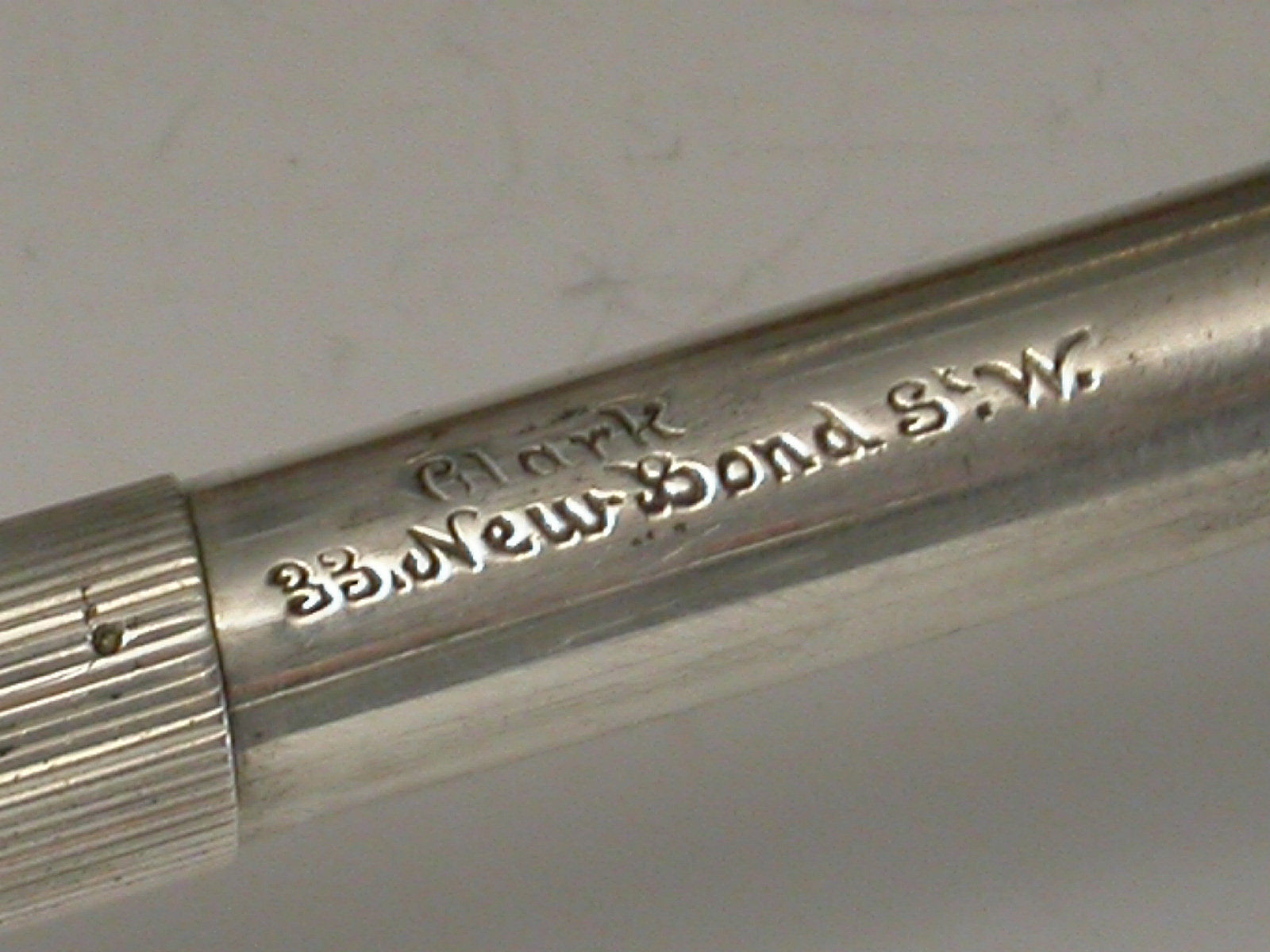 The pencil shaft also stamped with the retailers mark for Clarke, 33 New Bond Street.
