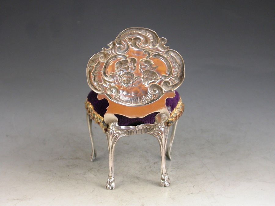 Edwardian Novelty Silver Rococo Revival Style Chair Pin Cushion Reynold's Angels