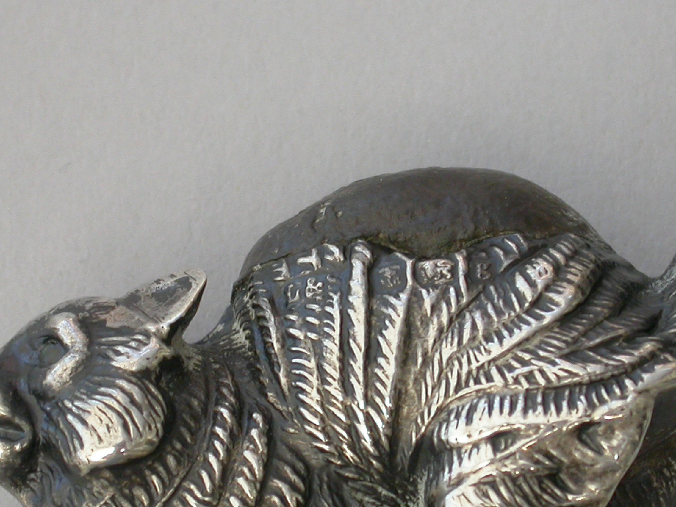 Edwardian Novelty Silver Startled Cat Pin Cushion