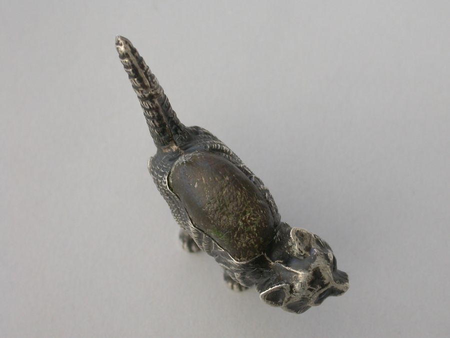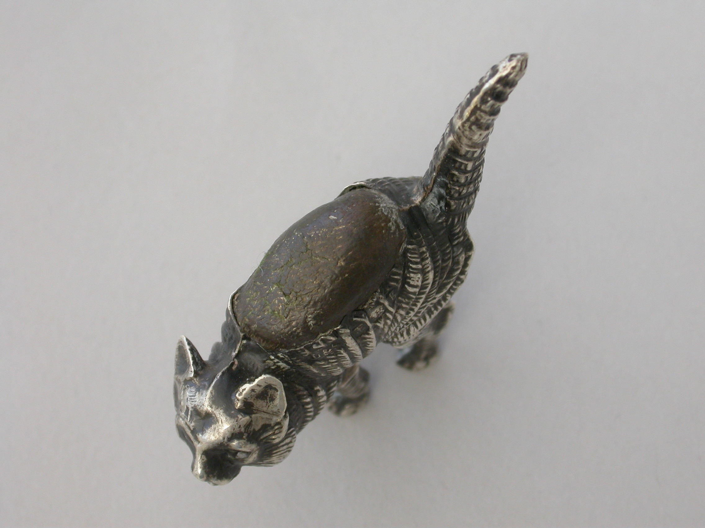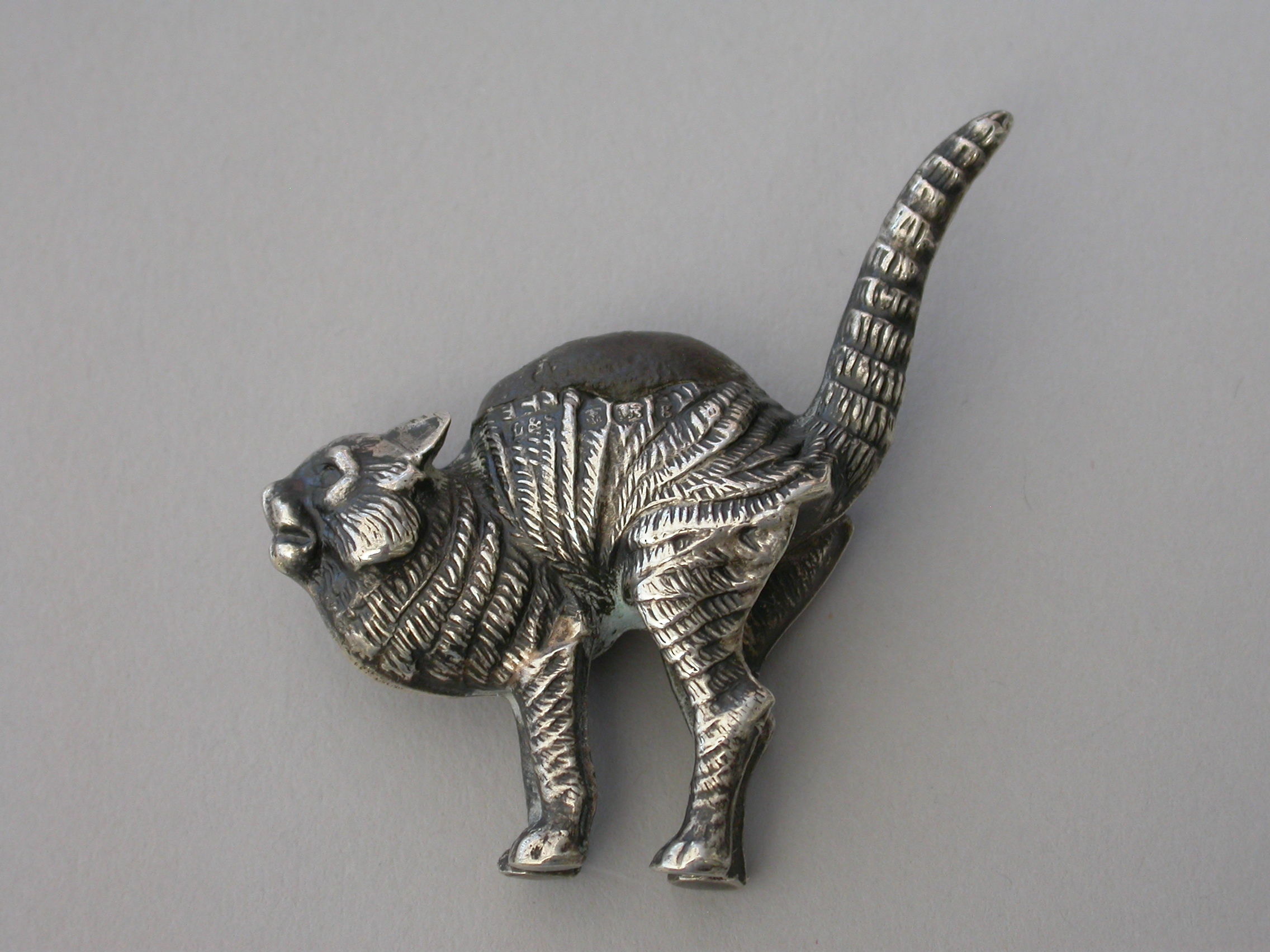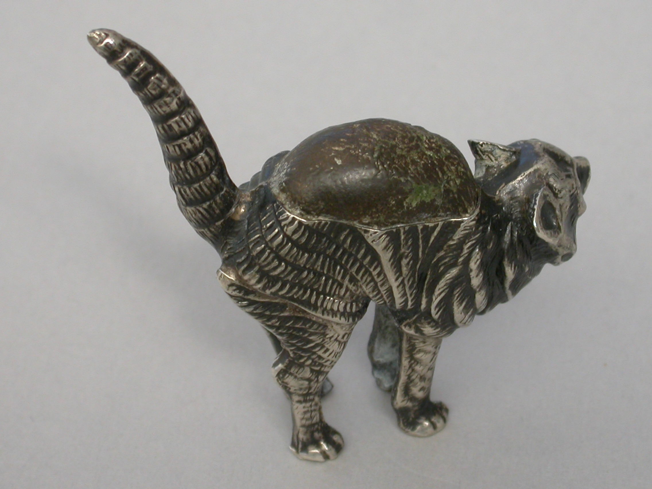 An extremely rare Edwardian novelty silver Pin Cushion made in the form of a startled Cat. Complete with original cushion.
