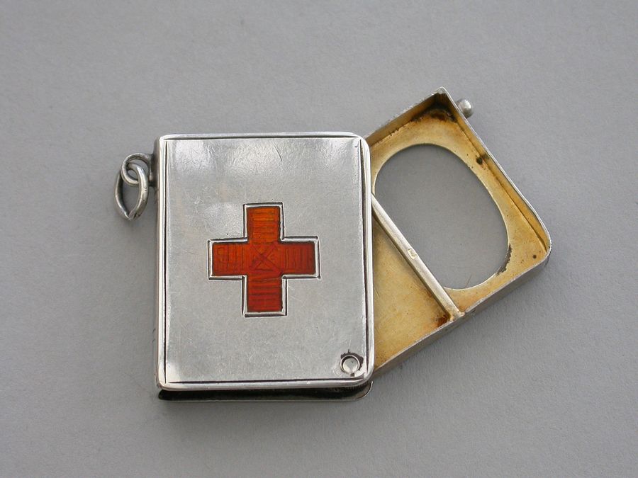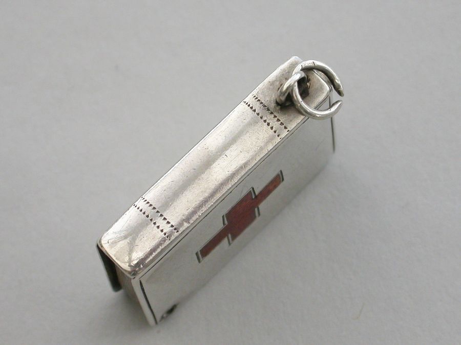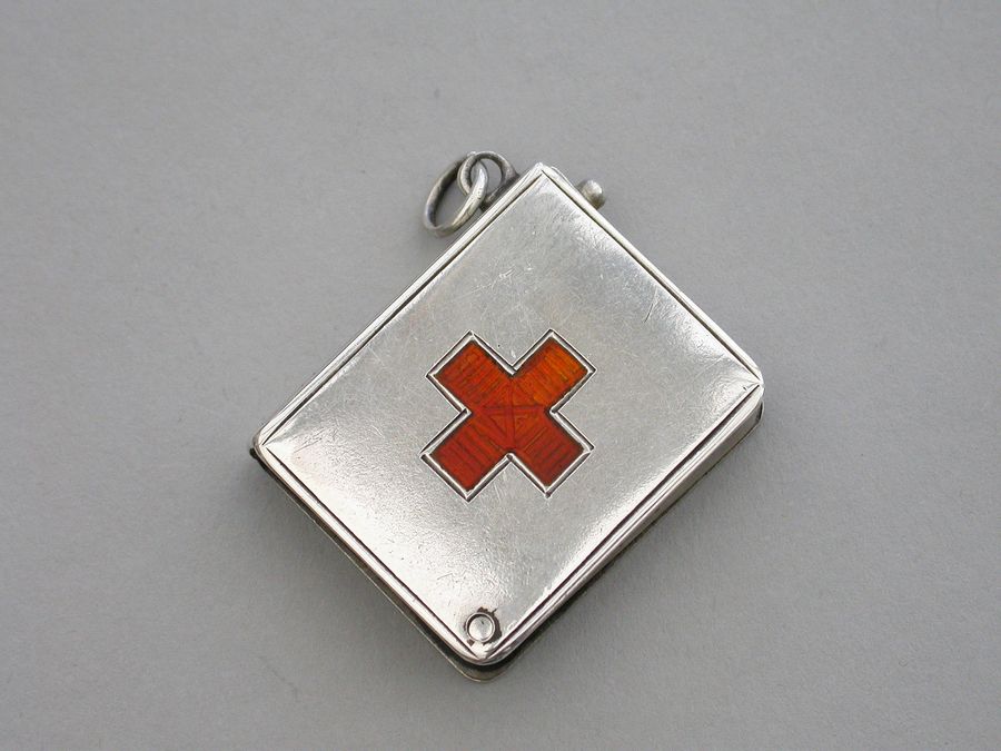 Edwardian Silver & Enamel 'Red Cross' Book Form Stamp Case