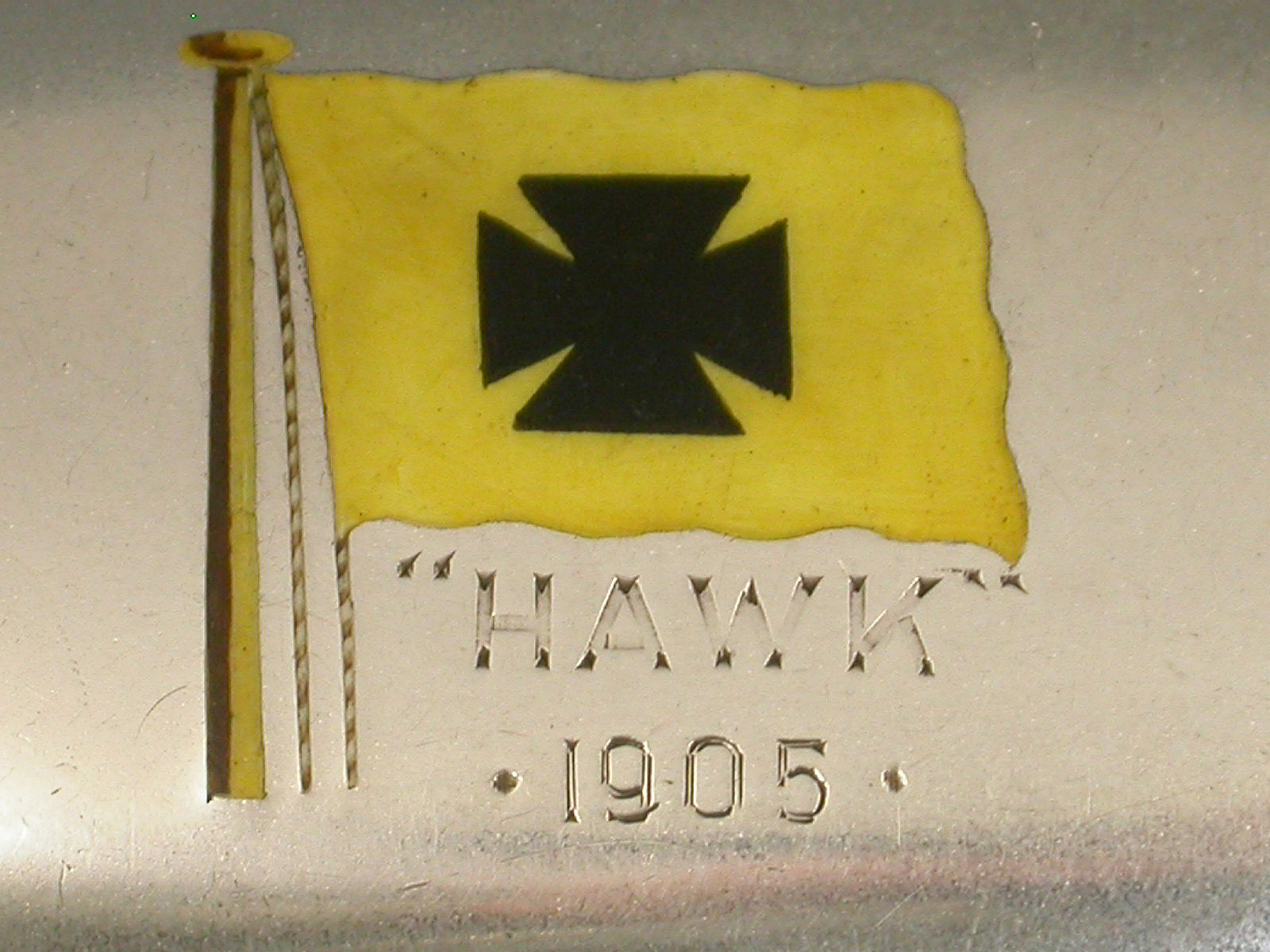 Edwardian Silver & Enamel Shipping Interest Double Sovereign Case 'HMS Hawk'