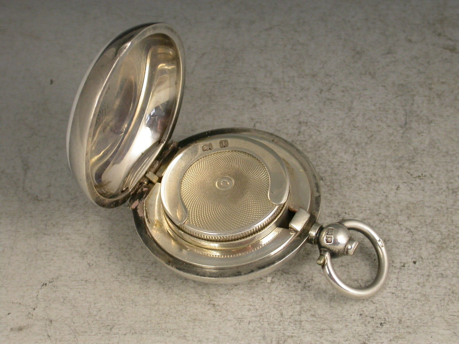 A fine and rare Edwardian silver Sovereign Case of circular form with the cover most unusually enamelled to represent a ""Willow Pattern Plate"", with single sprung interior compartment, attached suspension ring and push button opening mechanism.