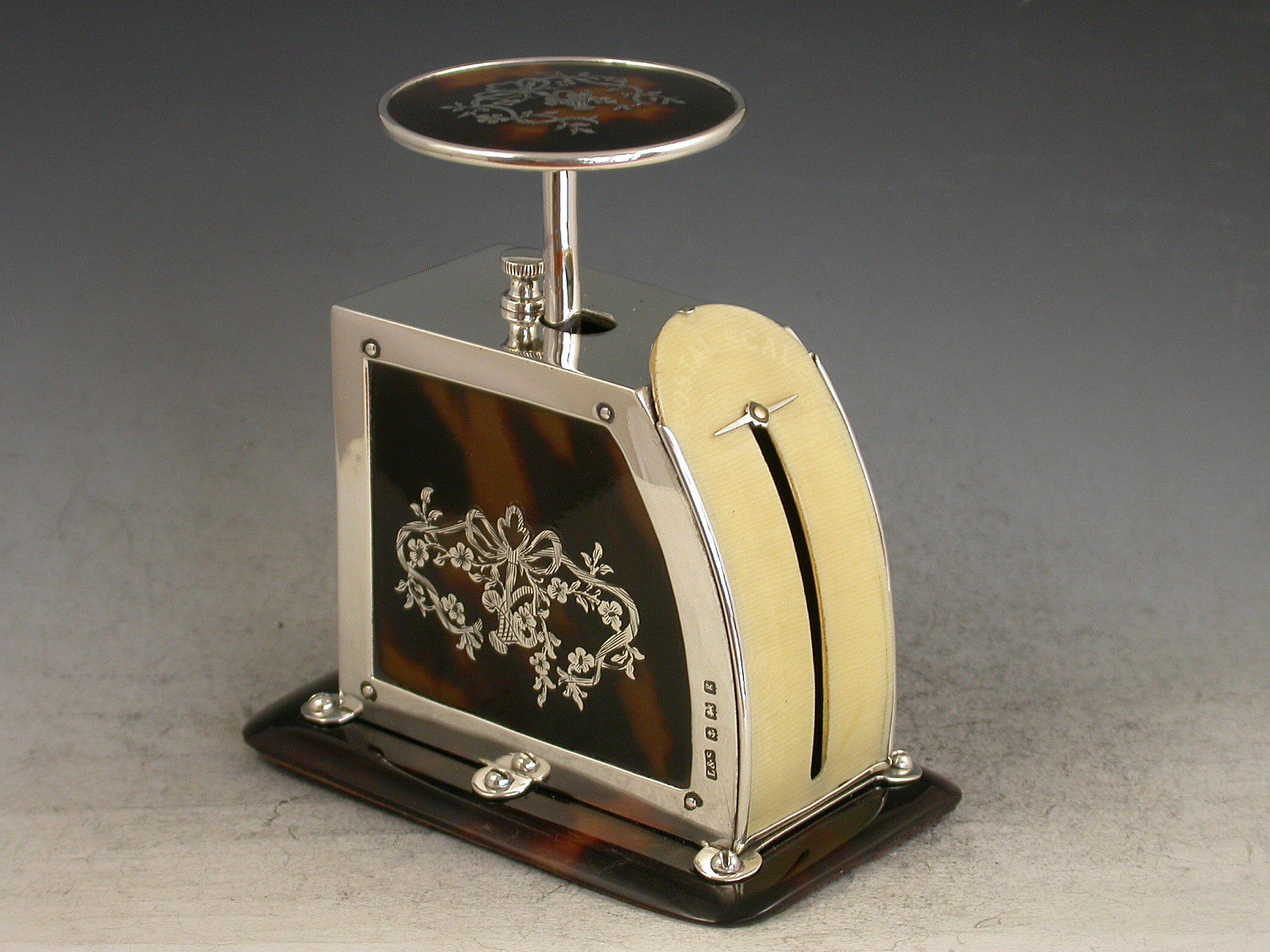 Edwardian Silver & Inlaid Tortoiseshell Bow Front Postal Scale