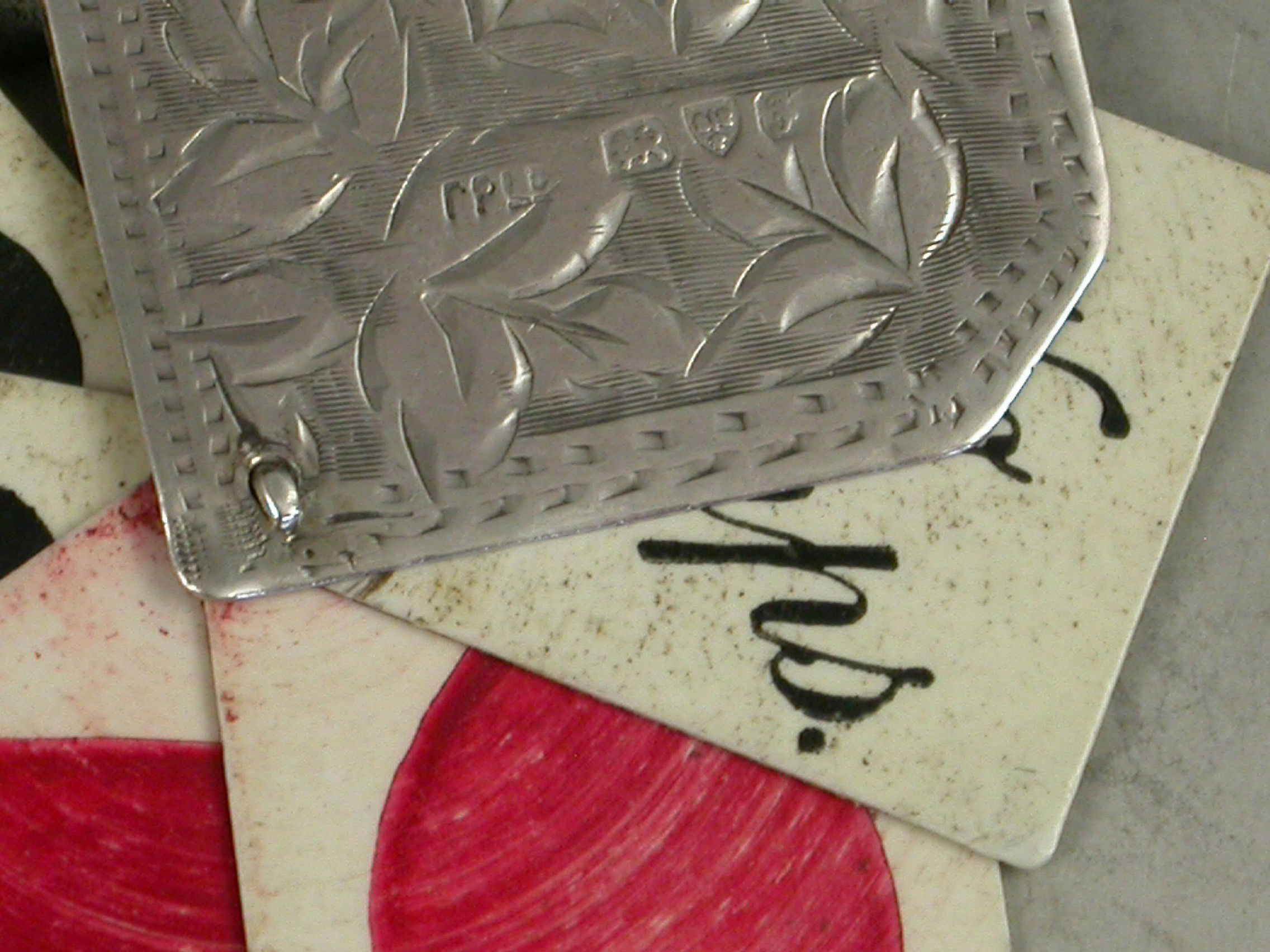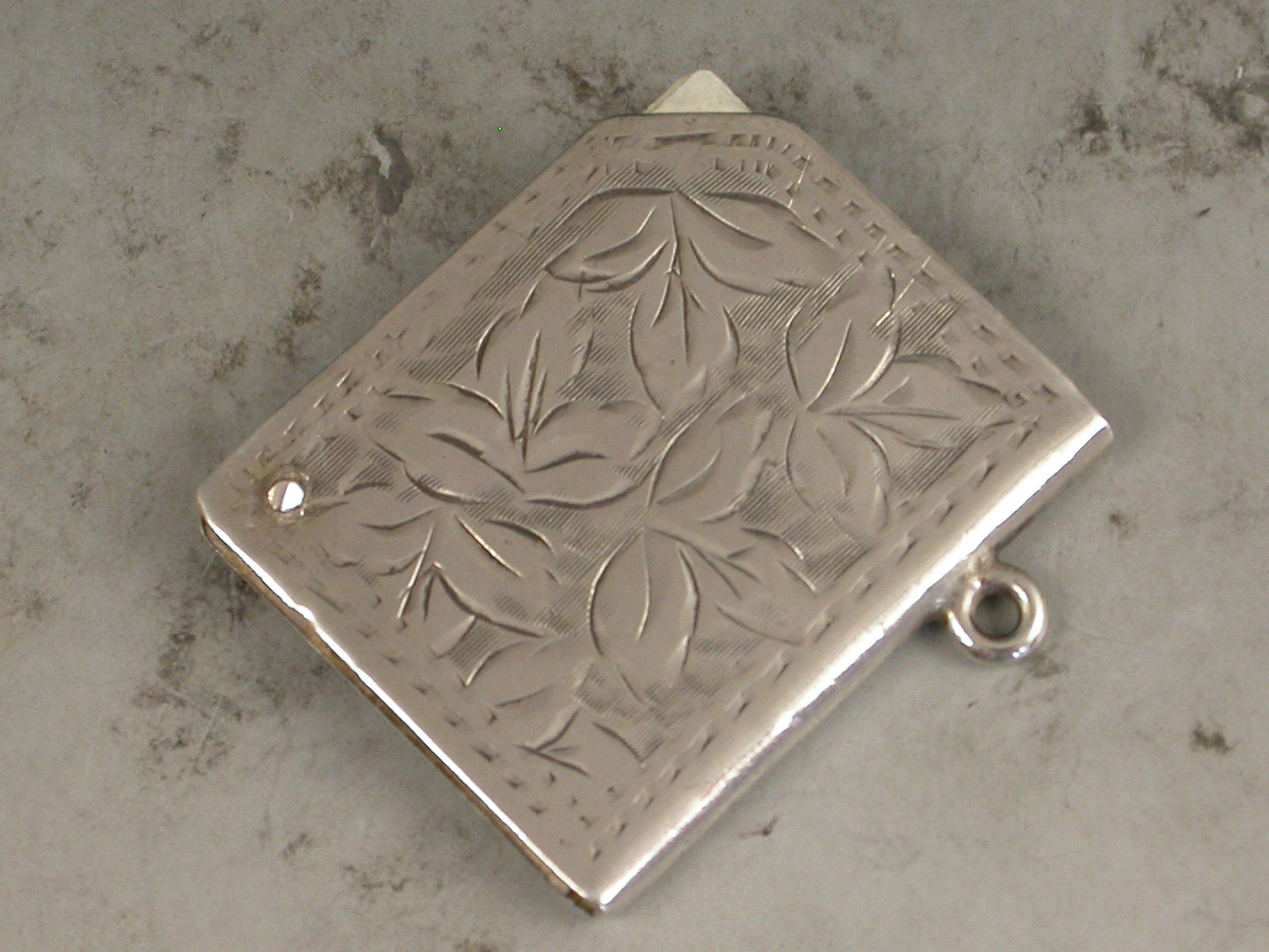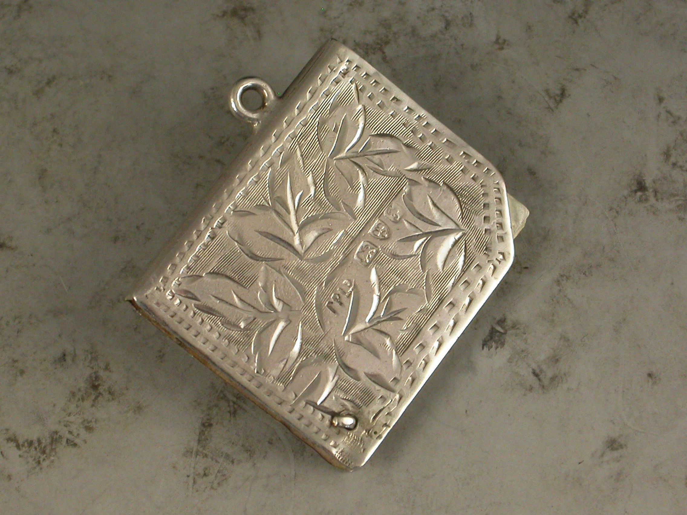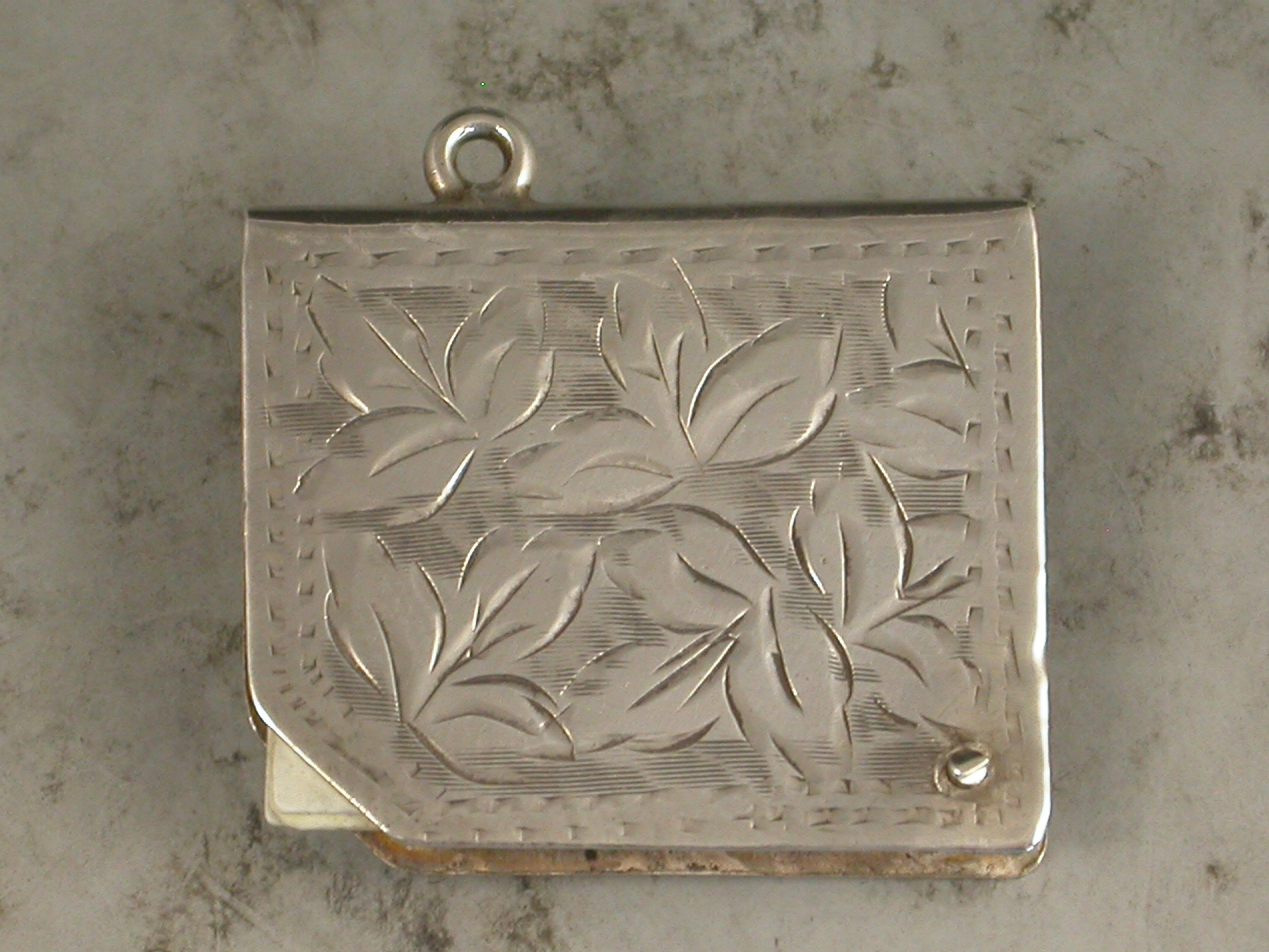 A good Edwardian silver Trumps Marker of book form with engraved foliate decoration and attached suspension ring, five swing-out ivory like pages painted with the four suits and no trumps.
