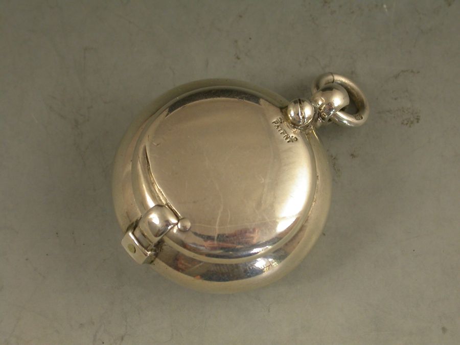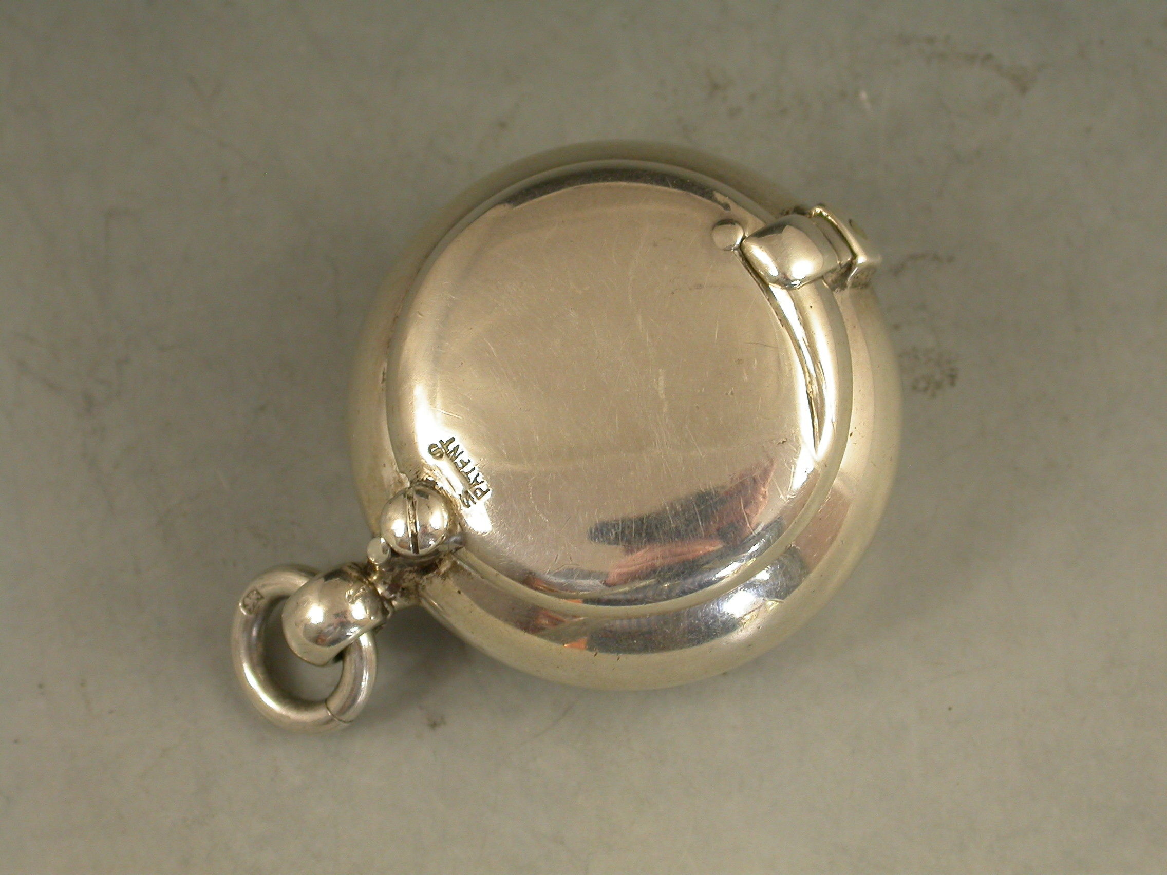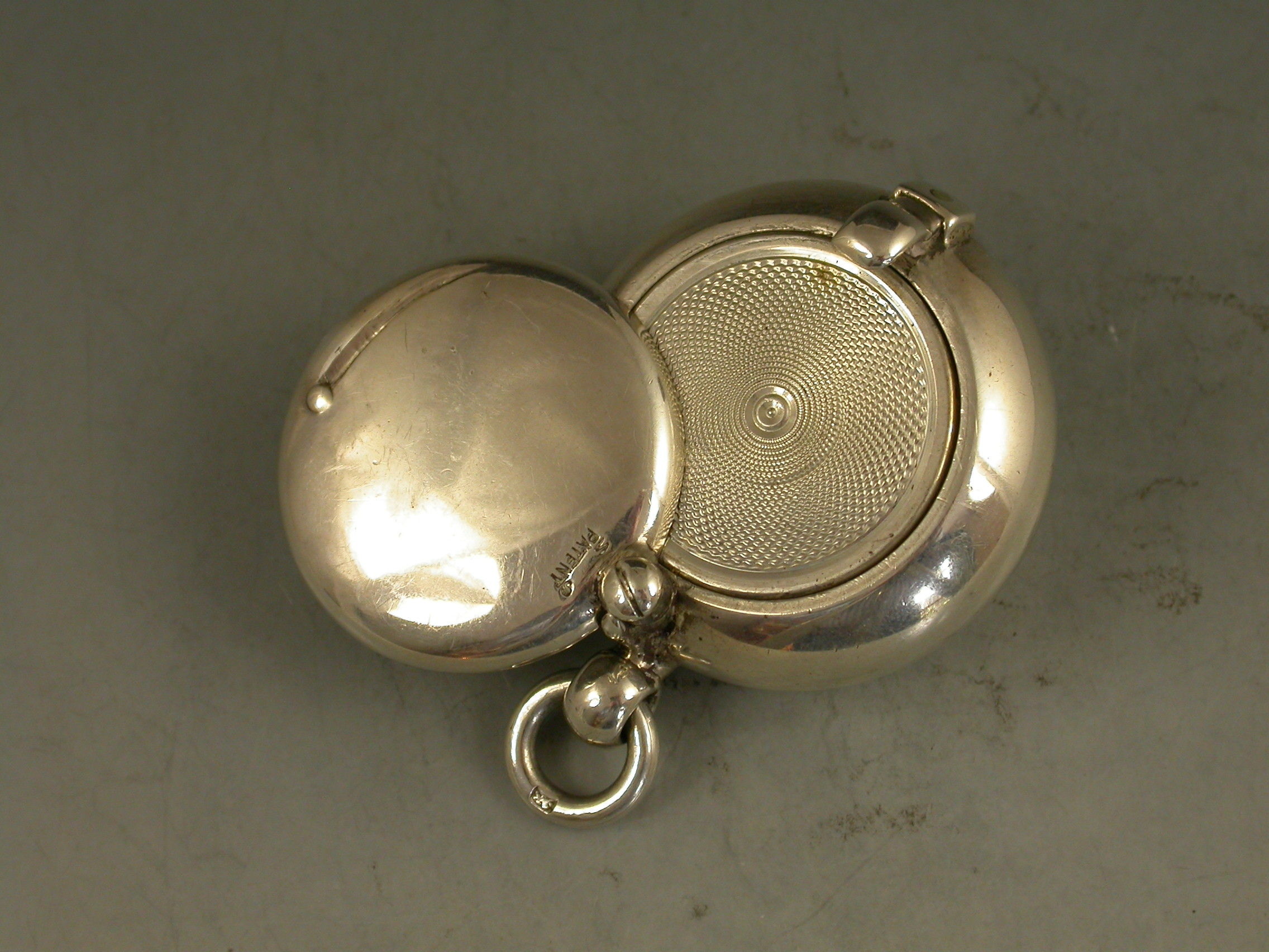 A rare Edwardian 'Brevete Patent' Sovereign Case of compressed circular form with swing-open cover secured by a catch. Attached suspension ring.