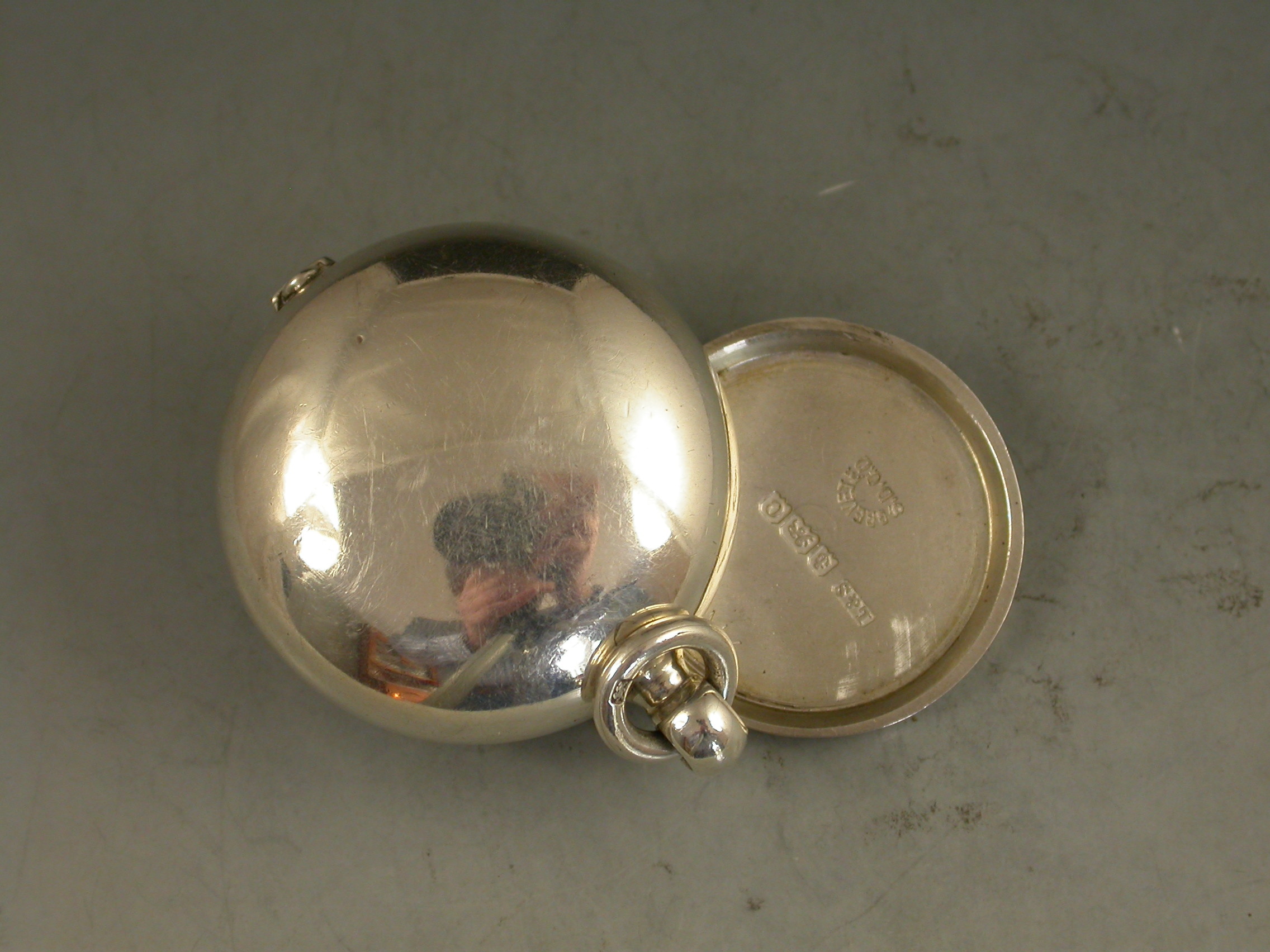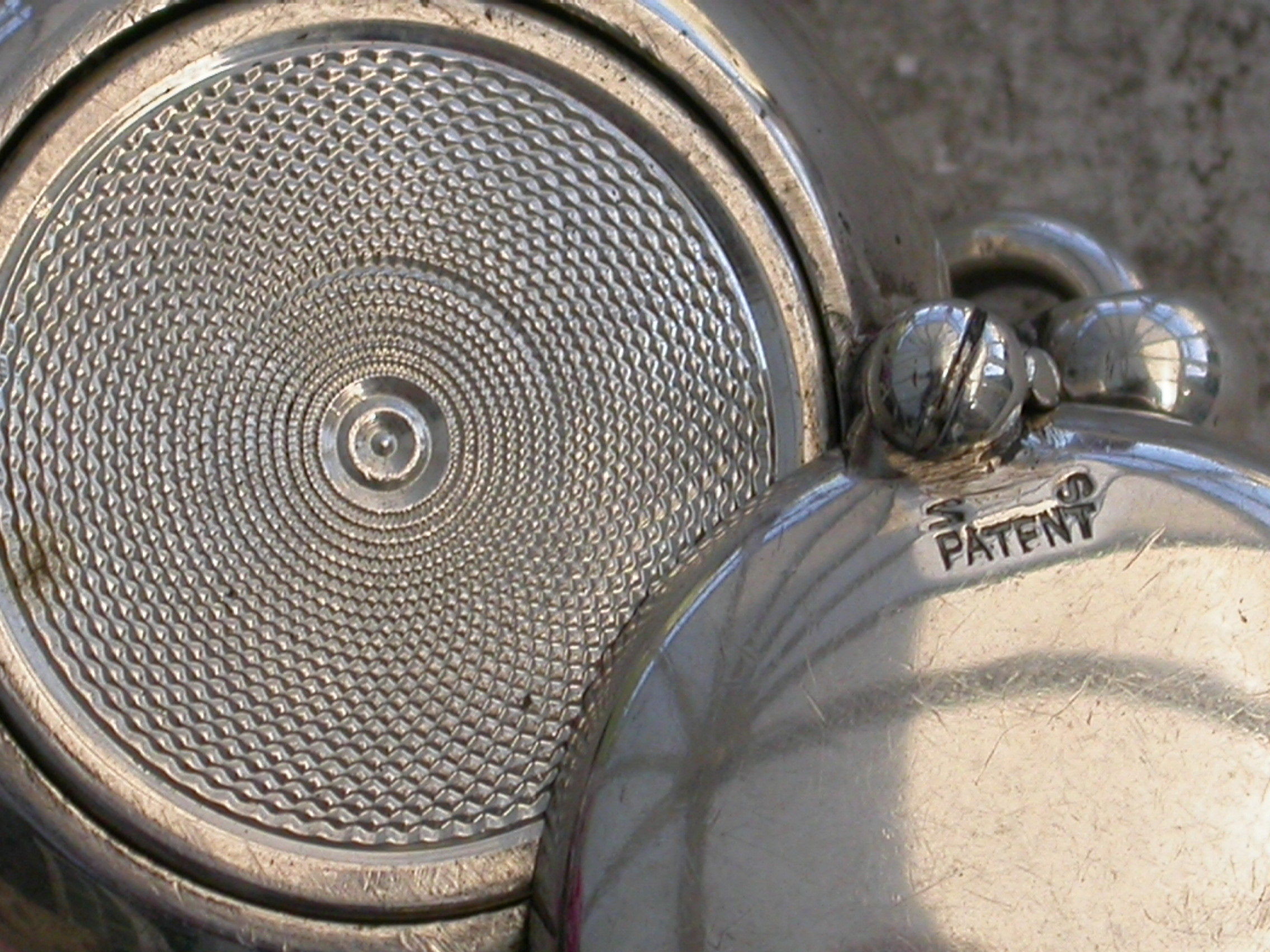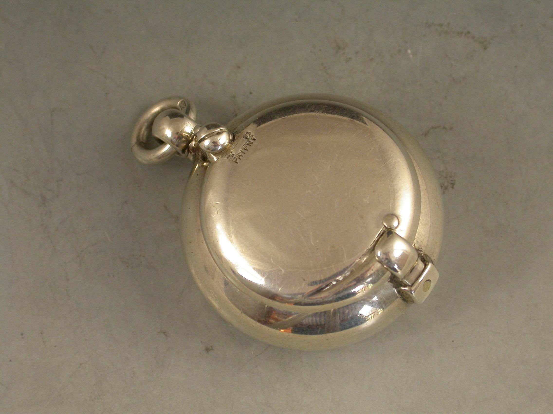 A rare Edwardian 'Brevete Patent' Sovereign Case of compressed circular form with swing-open cover secured by a catch. Attached suspension ring.