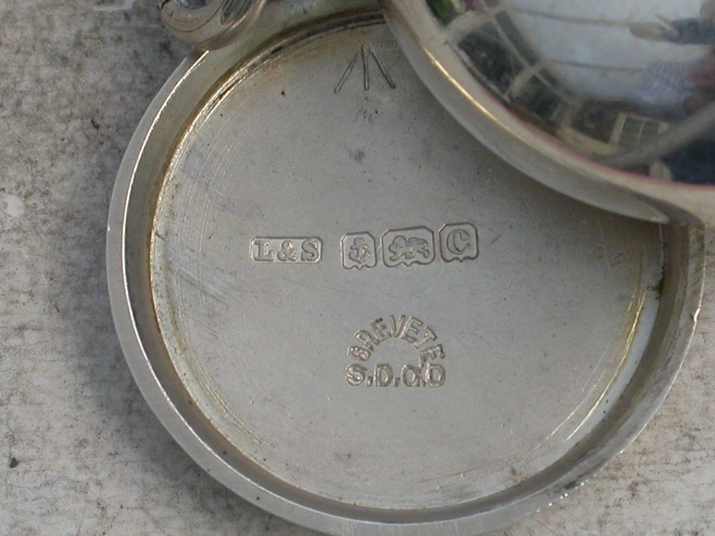 Stamped with a French Patent mark - Brevete S.D.G.D for Sans Garantie Du Governement translated to ""without guarantee of the Government"".