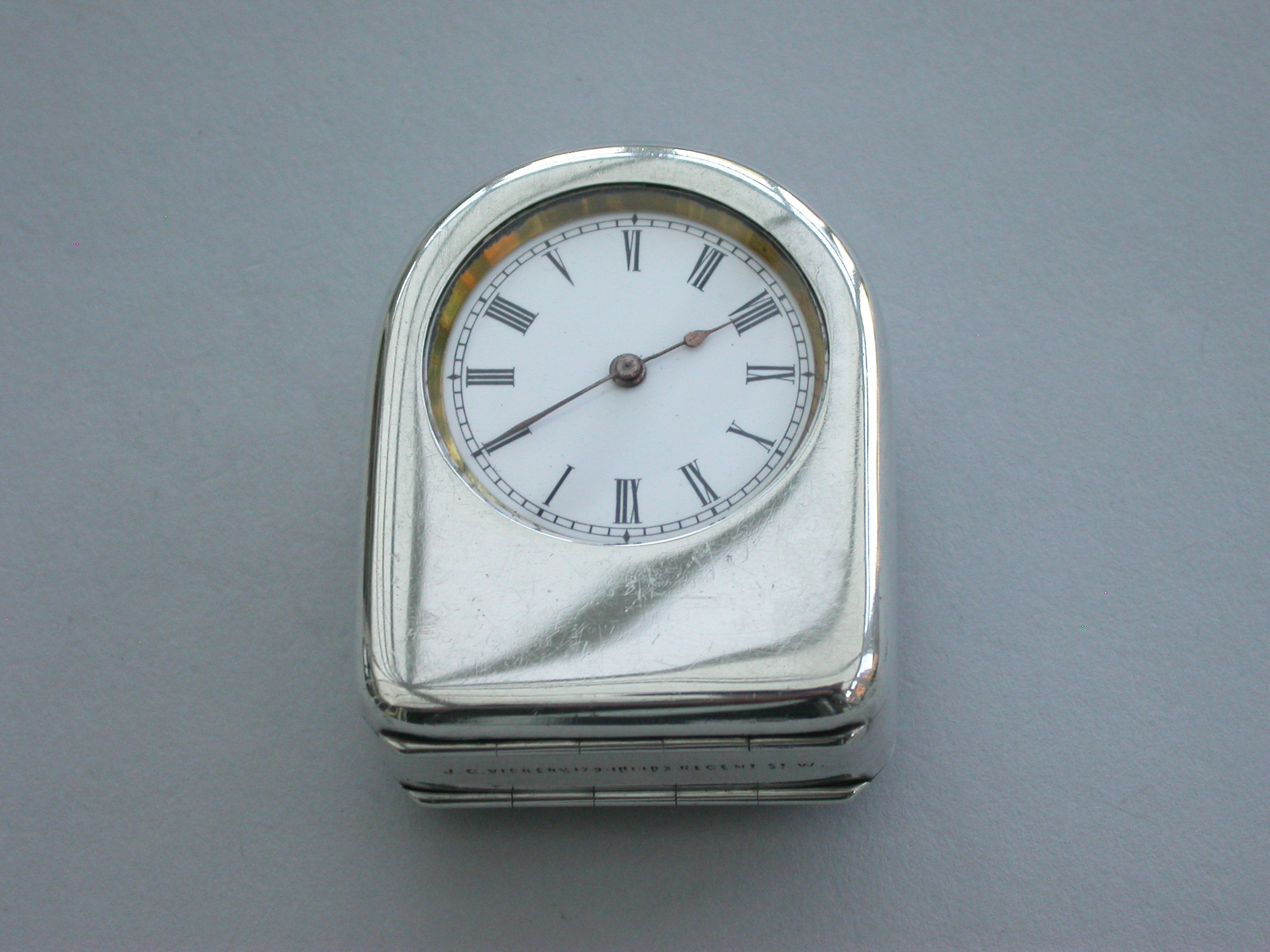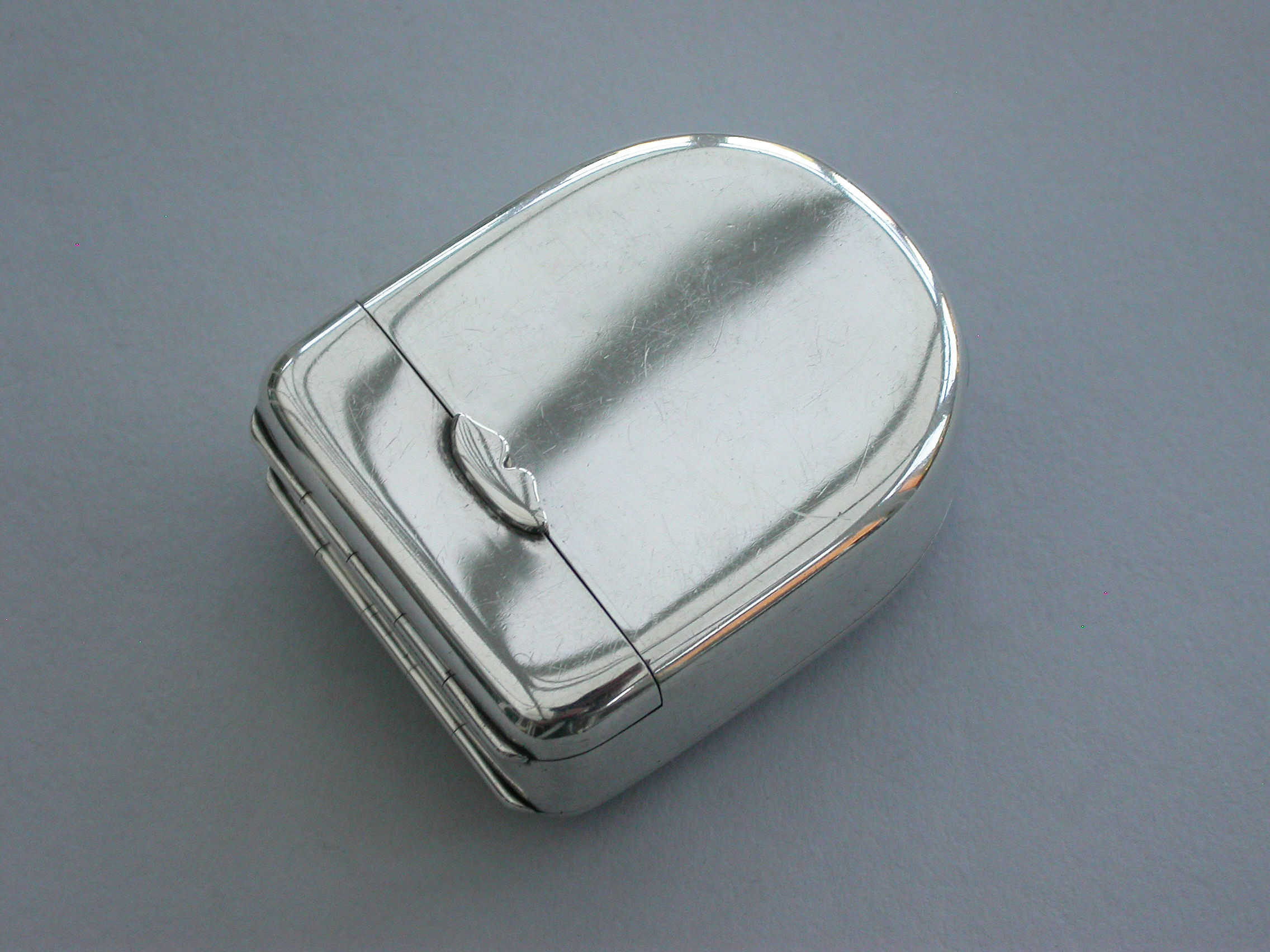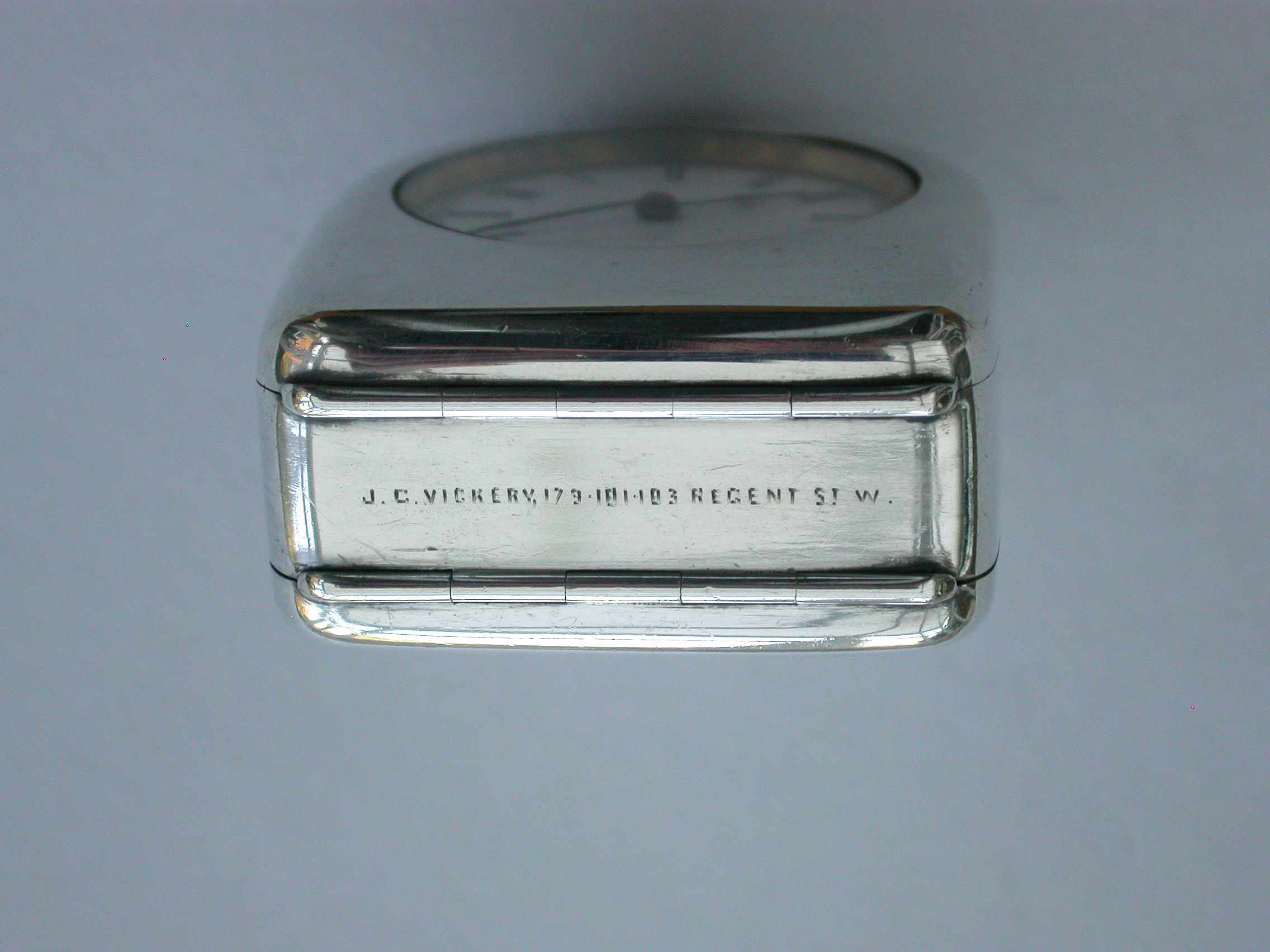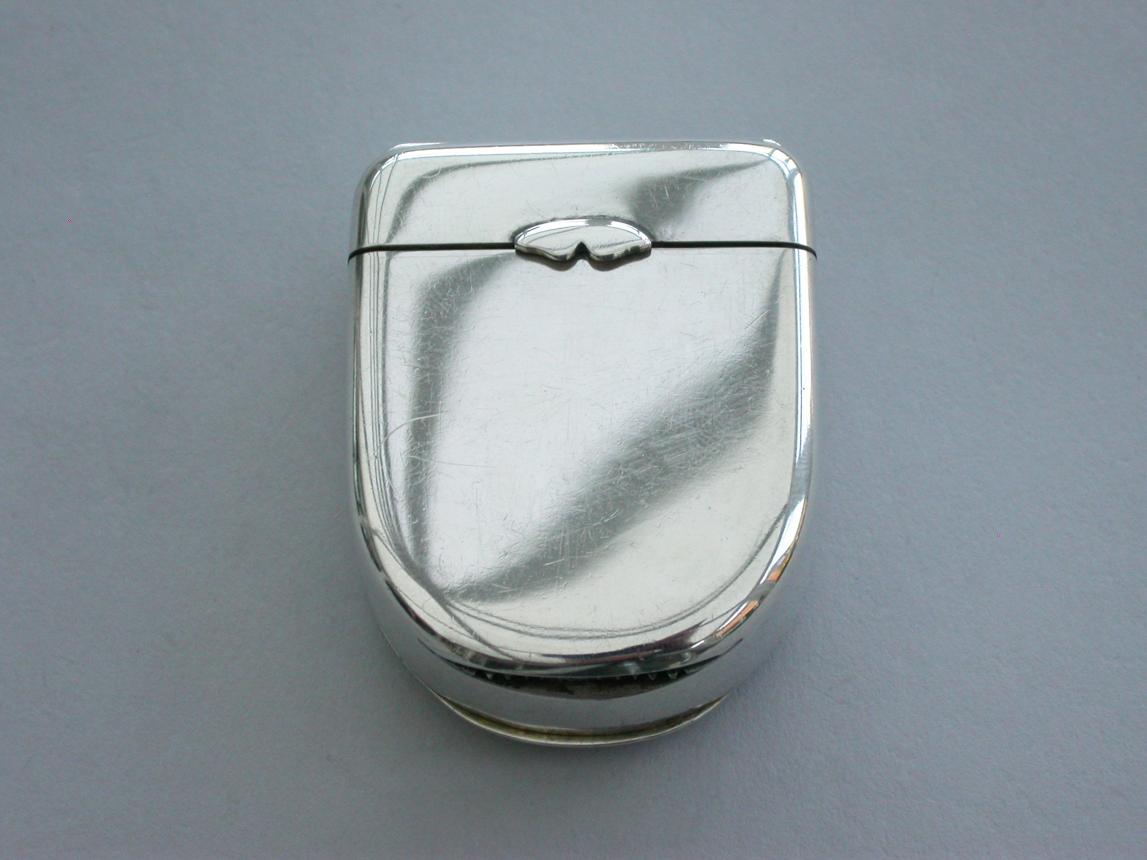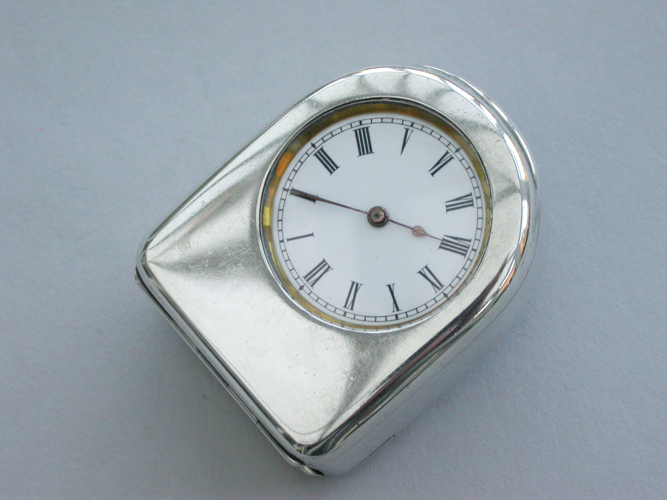 A fine quality Edwardian silver combination Vesta Case and Pocket Watch Holder of domed rounded rectangular form, with hinged lids and silver gilt interior lined with blue velvet. Complete with contemporary gun metal pocket watch.