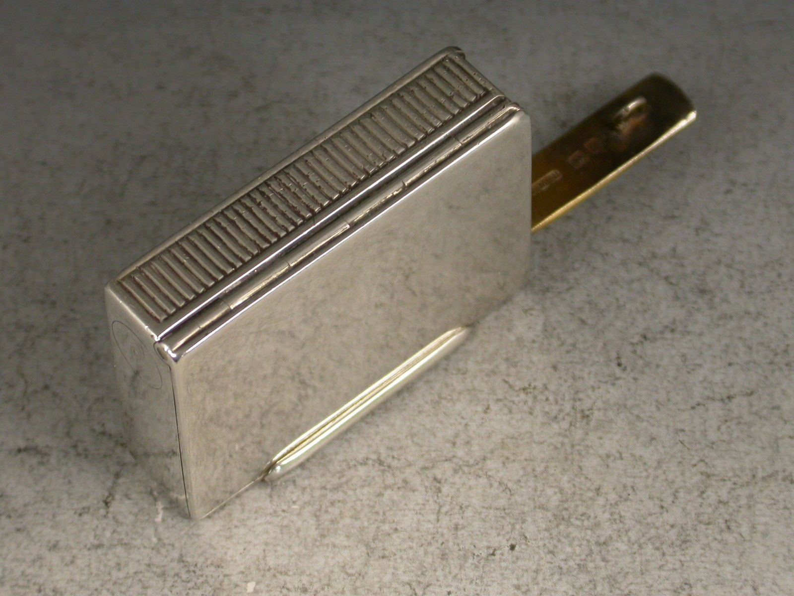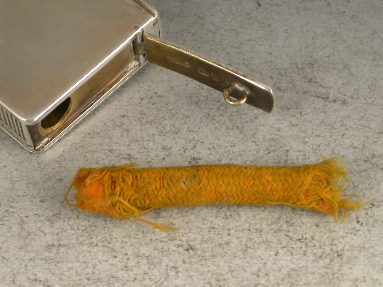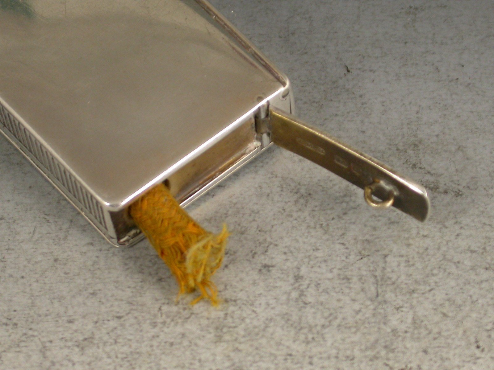 An unusual and nice quality Edwardian plain silver Vesta Case combined with a wick or slow match holder. The Vesta compartment with sprung lid held in place by the hinged side cover, a third hinged lid with attached loop that would have been fixed to the internal wick held within a tubular compartment. Silver gilt interiors.