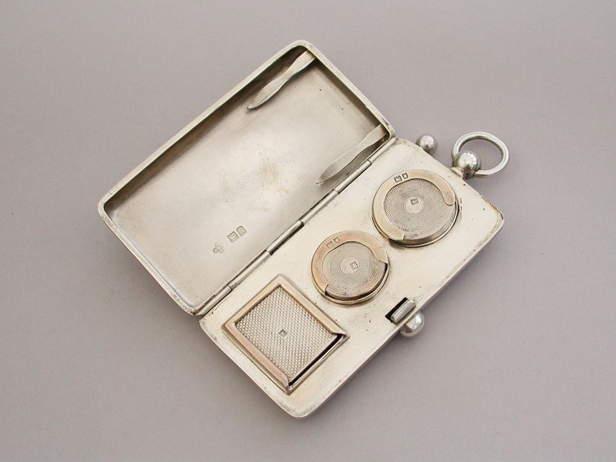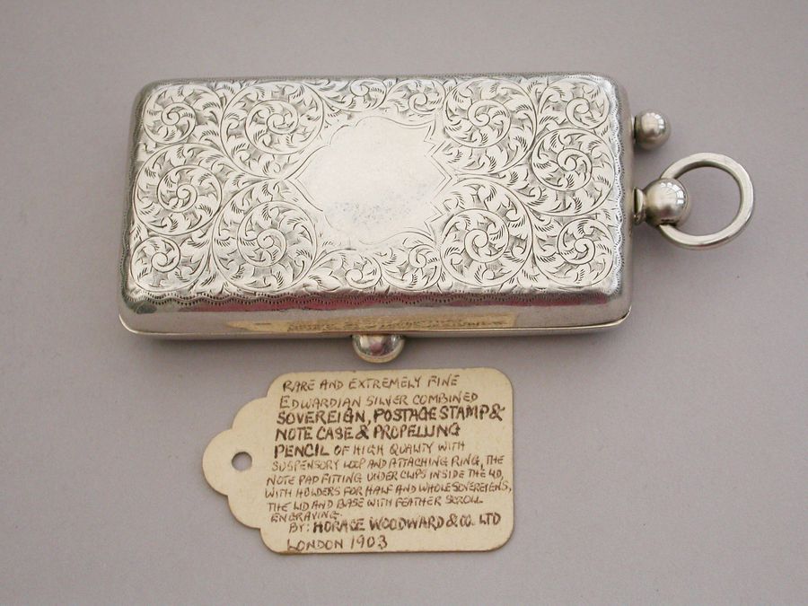 Edwardian Silver Combined Sovereign Case, Stamp Holder, Propelling Pencil & Note Case