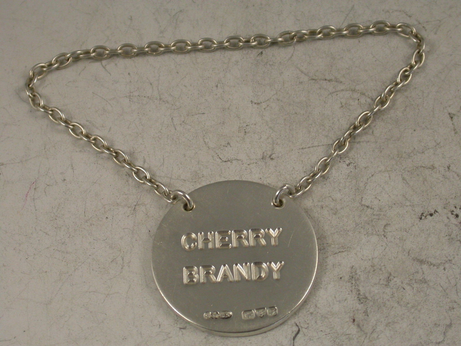 An unusual Edwardian silver Liqueur Label of plain disc shape and of a heavy gauge, engraved both front and back with the unusual titles, Cherry Brandy and Creme de Menthe.