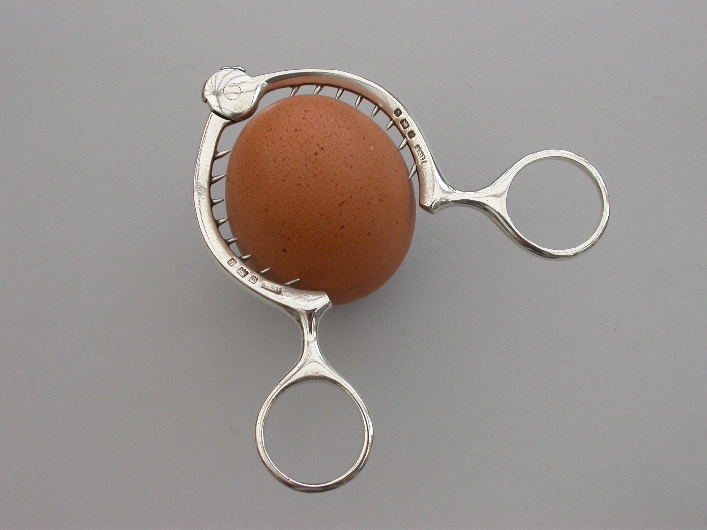 A good heavy quality pair of Edwardian silver Egg Toppers with ring handles.