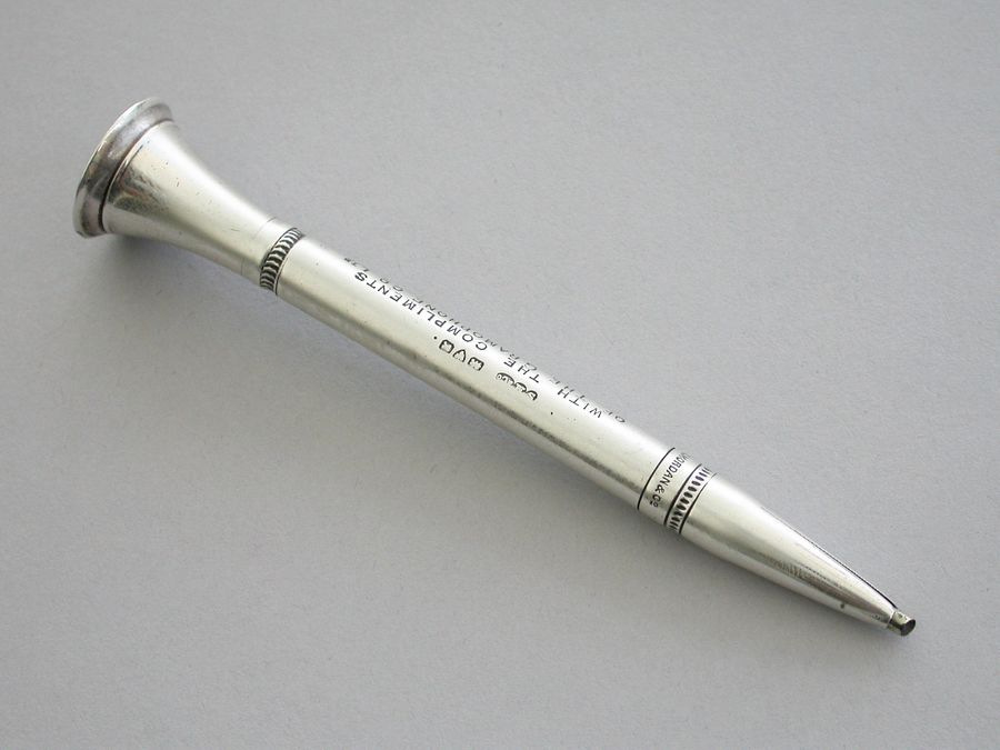Edwardian Silver "His Master's Voice" Advertising Propelling Pencil