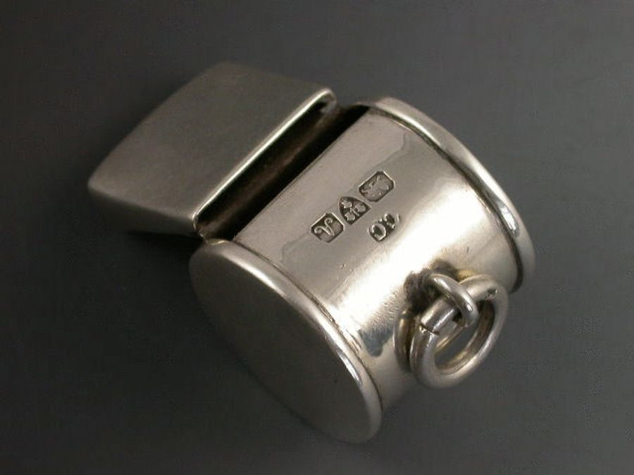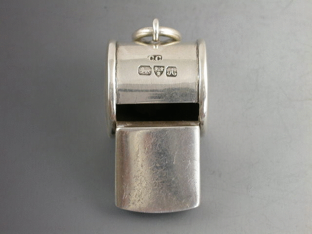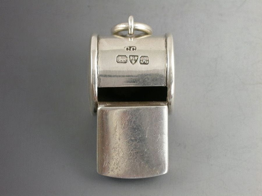 A rare early Edwardian silver Referees Whistle, of good gauge and in full working order with a loud blast! Attached suspension ring.