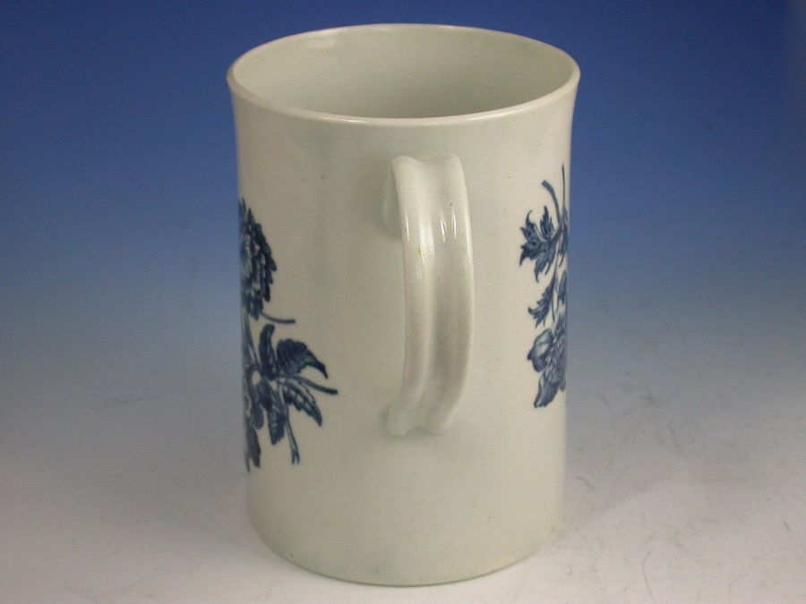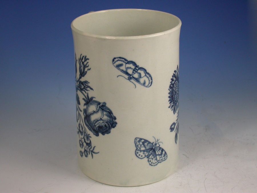 A fine First Period Worcester cylindrical Tankard of large size with grooved strap handle, printed in underglaze blue with The ""Natural Spray"" pattern, IIC7 in Worcester Blue and White Porcelain, by BFS.