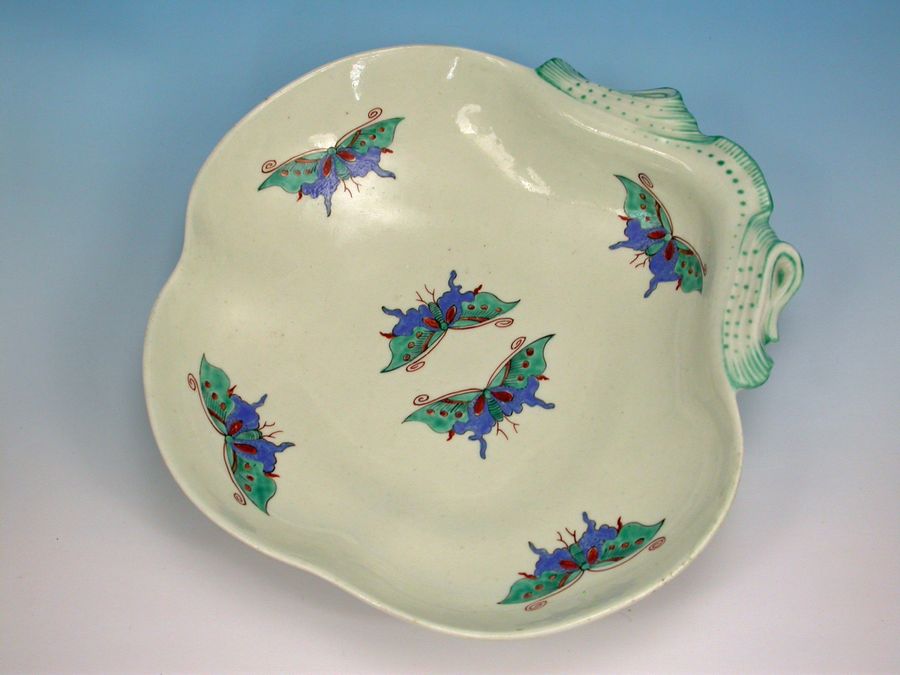 First Period Worcester Shell Moulded Dessert Dish 'Butterflies'