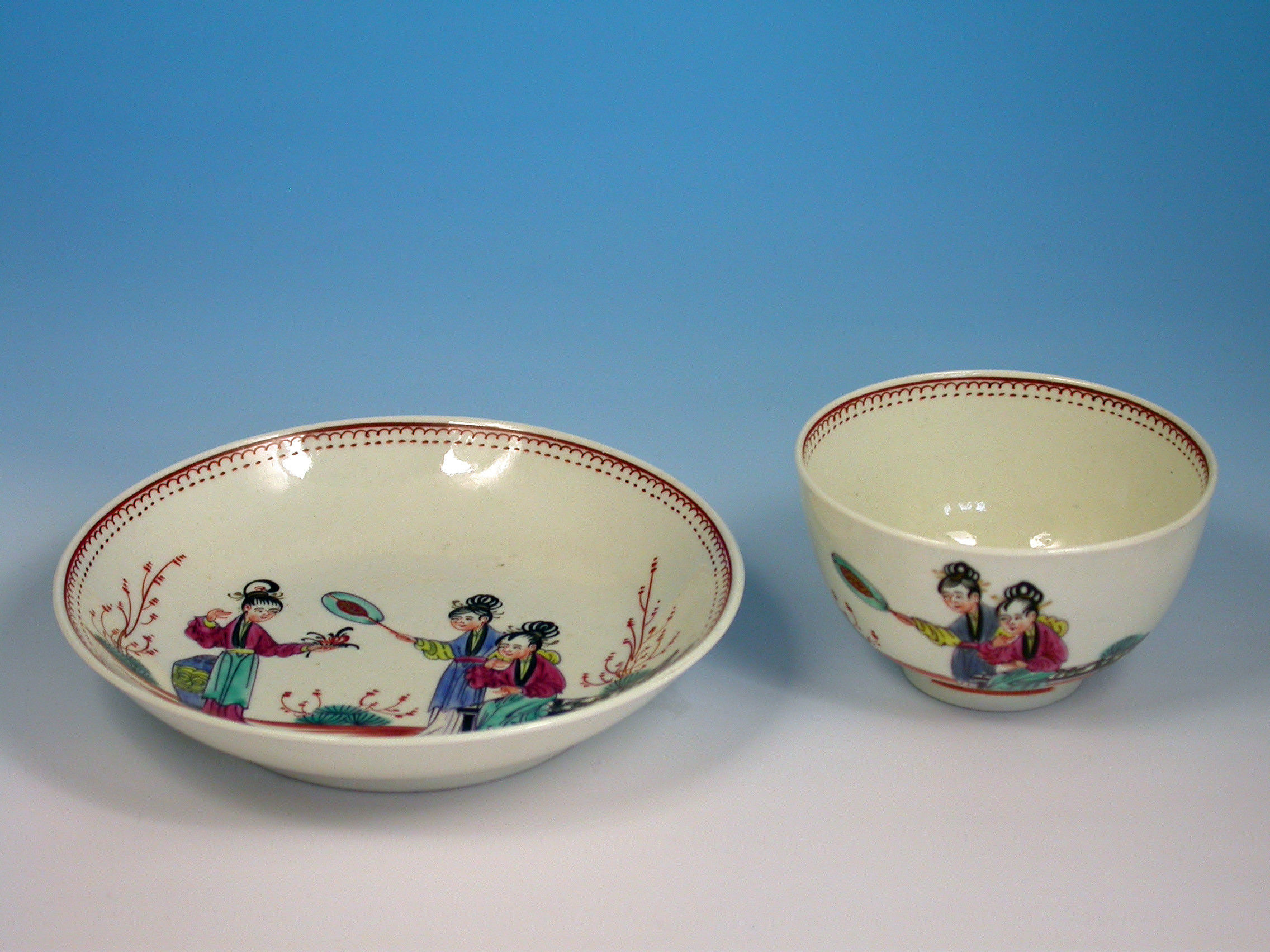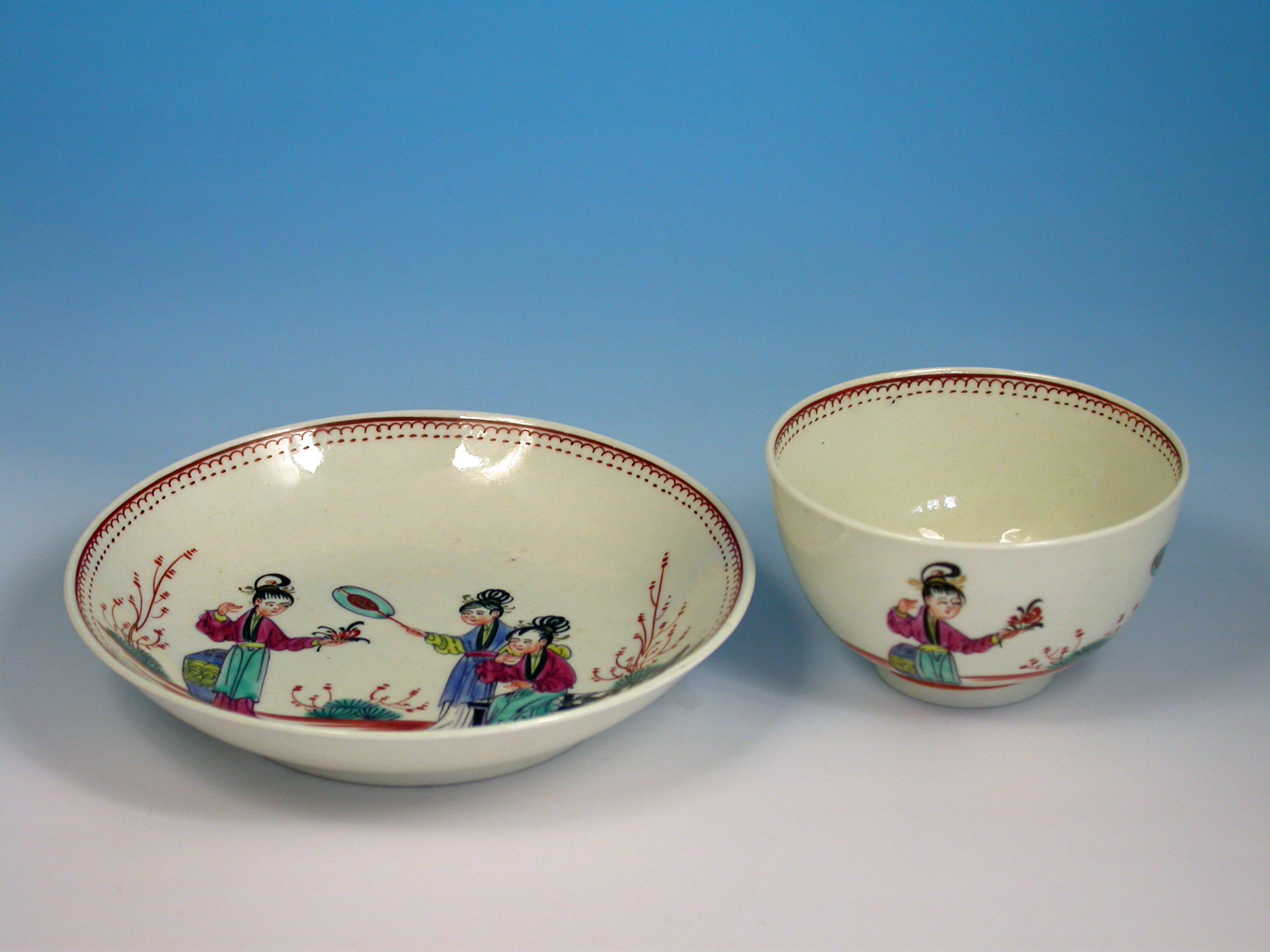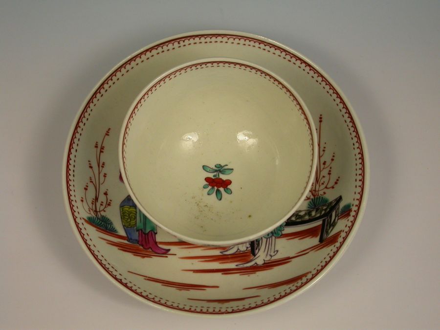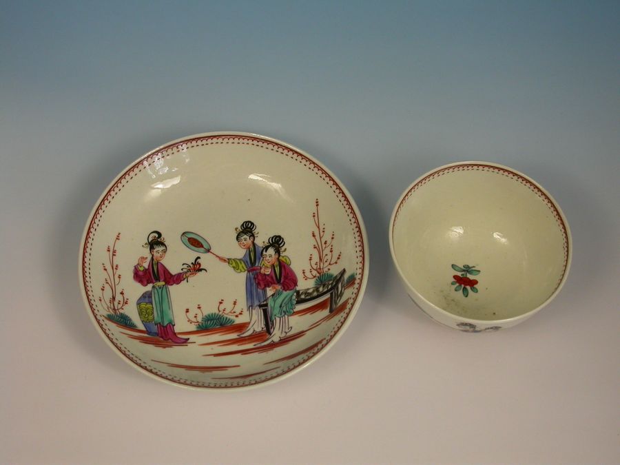 First Period Worcester Tea Bowl & Saucer 'Chinese Figures'