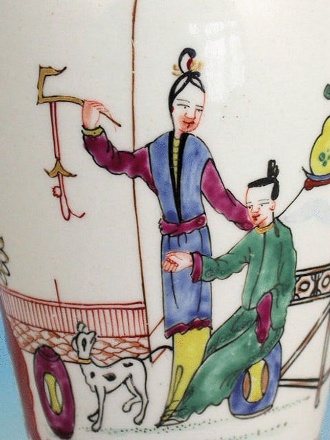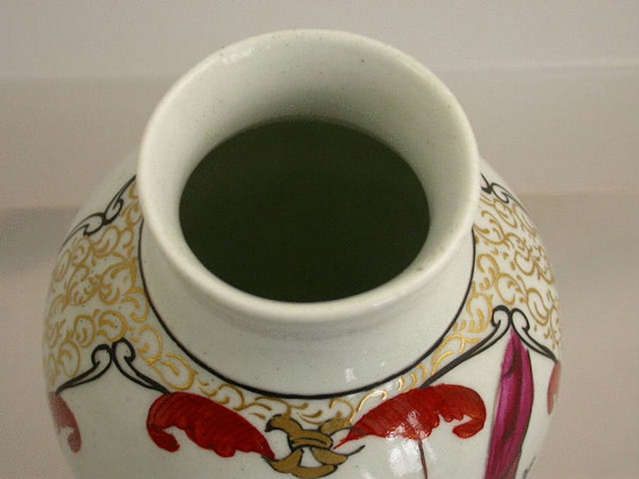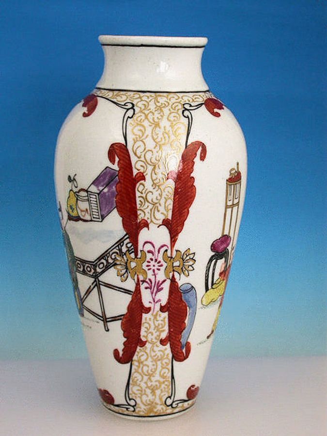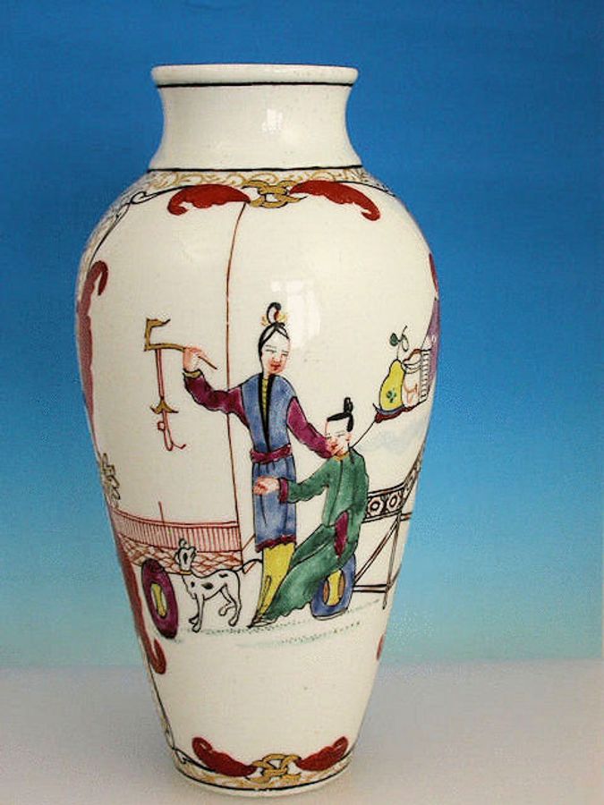 A good First Period Worcester ovoid shaped Vase, painted in bright polychrome enamels with the so-called “Telephone Box Pattern”.