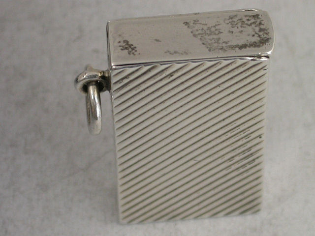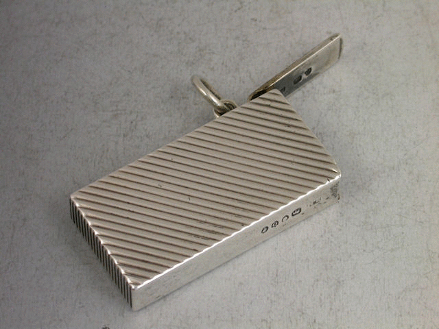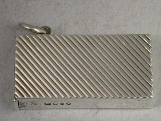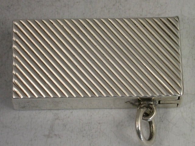 A good Victorian silver Vesta Case of flat-topped rectangular form, the sides with diagonal ribbed decoration, sprung hinged lid and attached suspension loop.