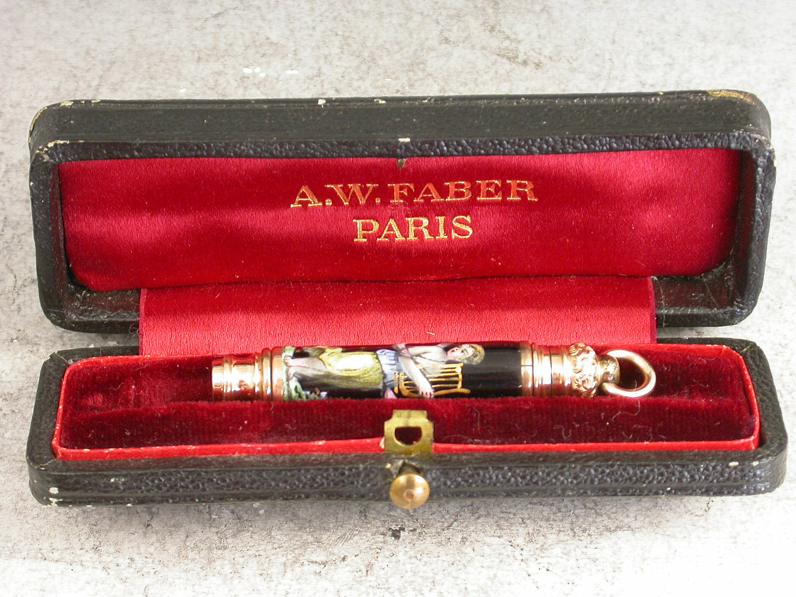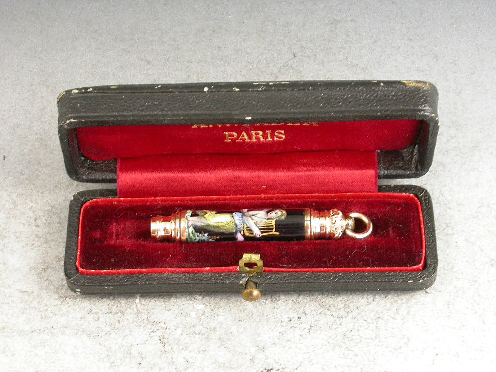 French Gold Cased & Enamel Telescopic Propelling Pencil