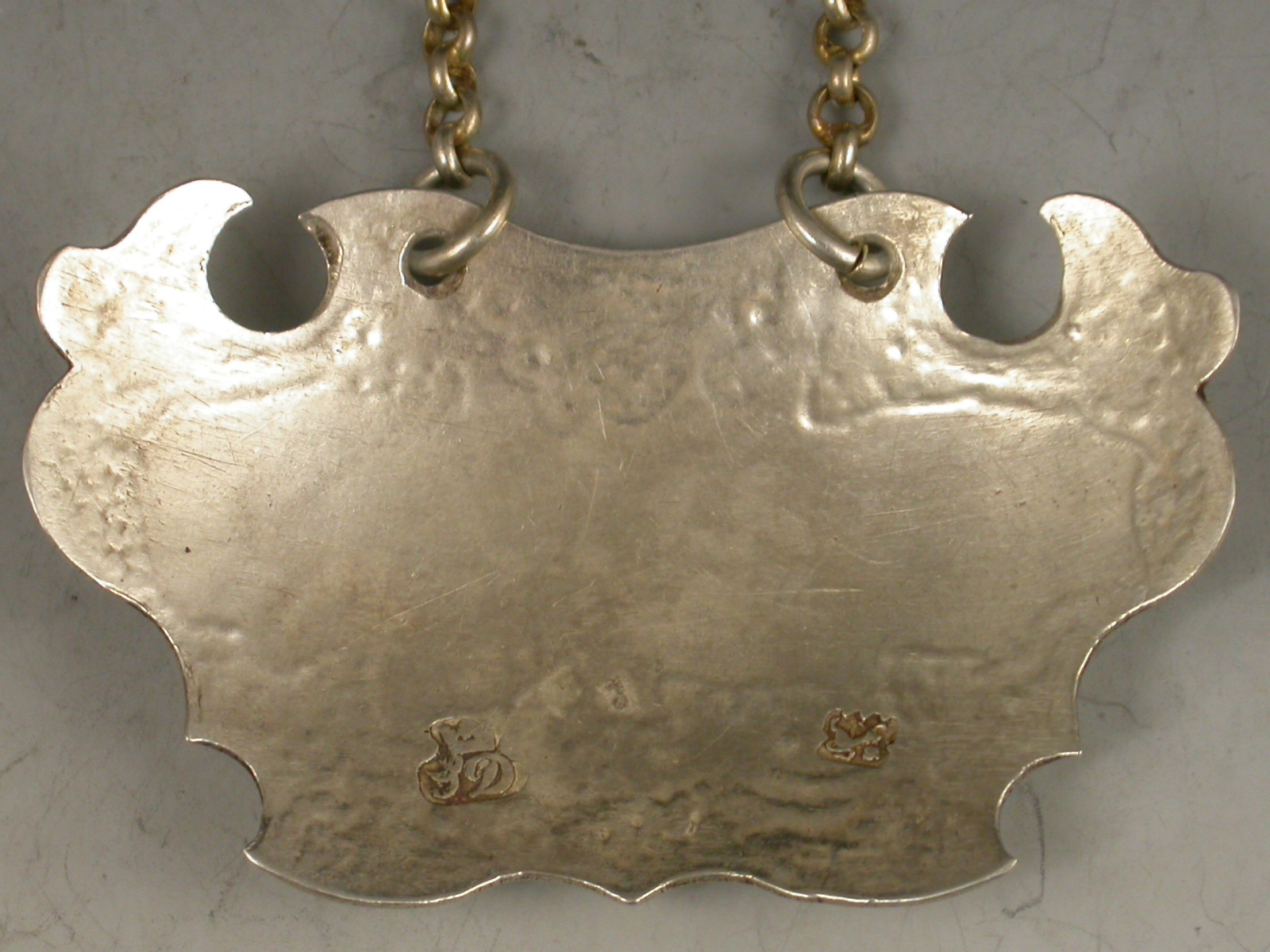 George II Antique Silver Chased Escutcheon Wine Label 'Claret'