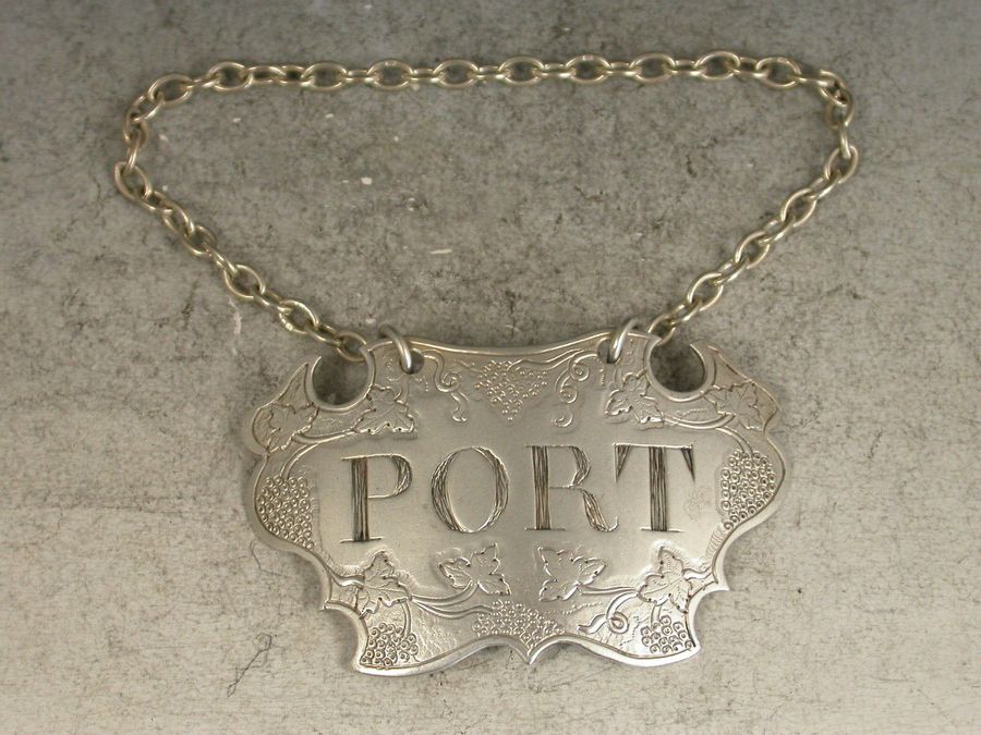 George II Antique Silver Chased Escutcheon Wine Label 'Port'