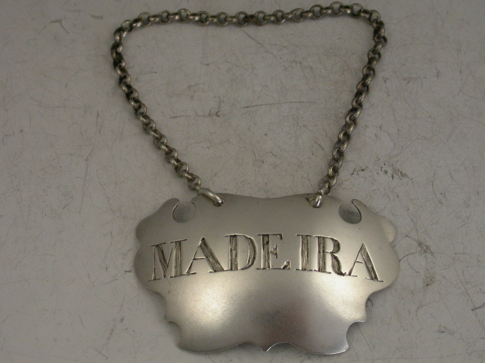 George II Antique Silver Escutcheon Wine Label 'Madeira'