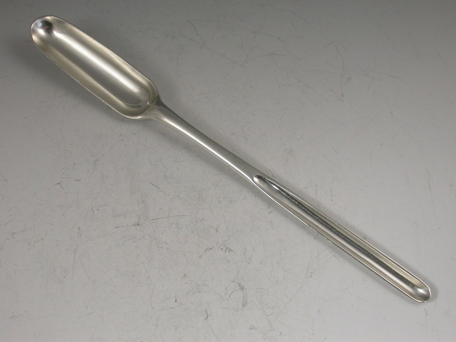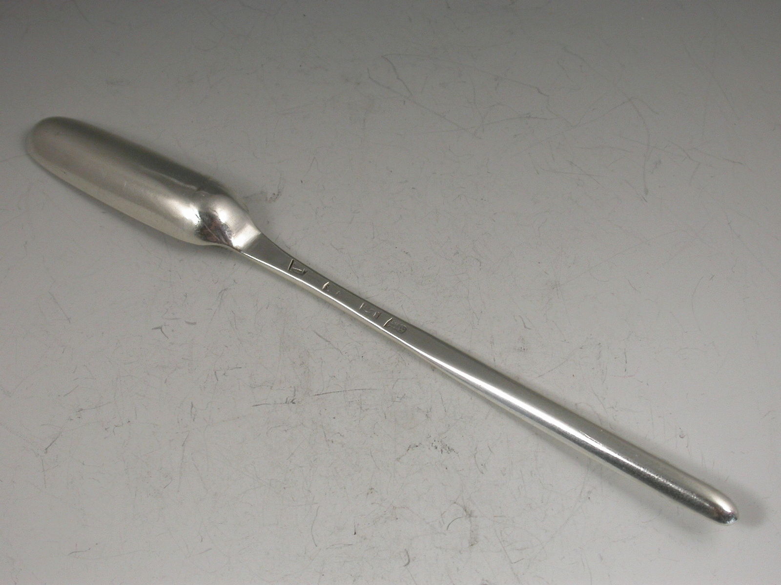 A good early 18th century Georgian silver Marrow Scoop of typical double ended form. By a maker who appears to have been a bit of a Marrow Scoop specialist.