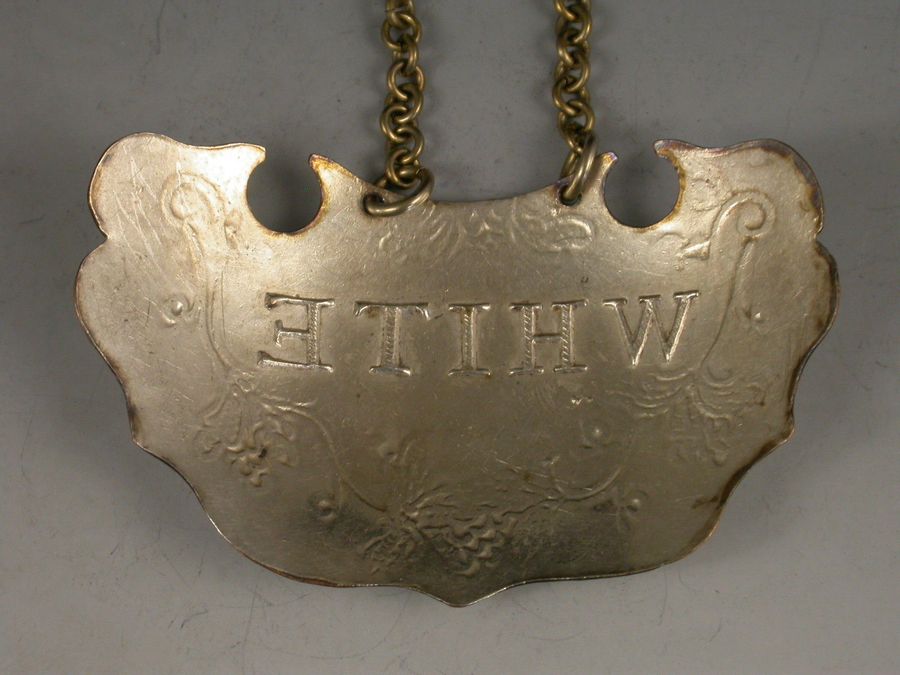 George II Old Sheffield Plate Copper Back Wine Label 'White'