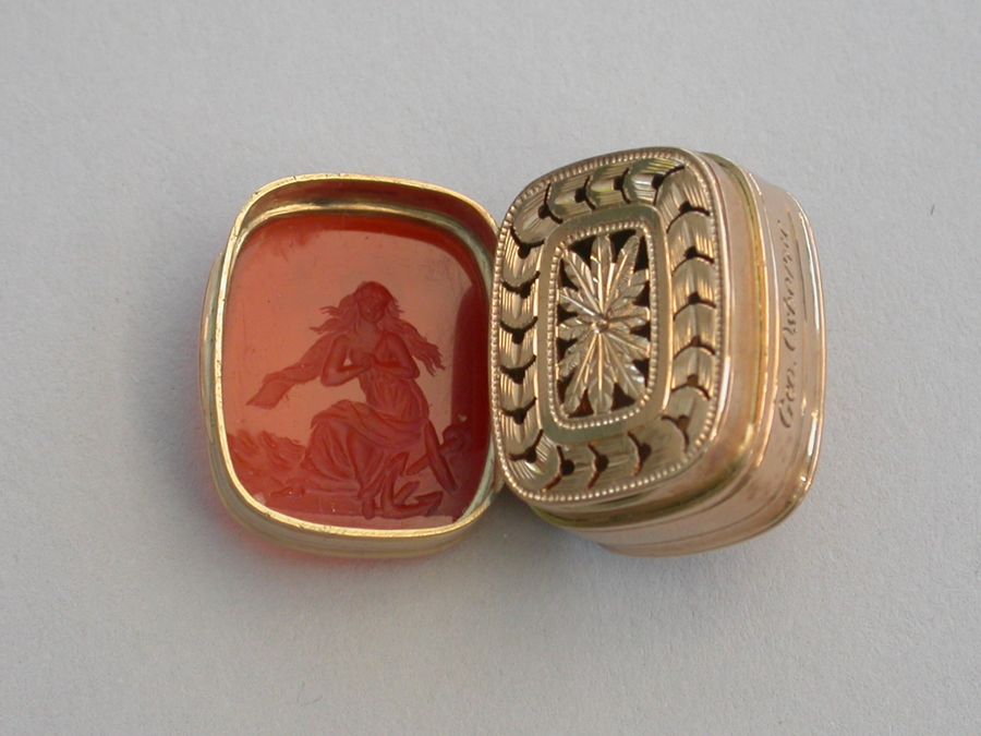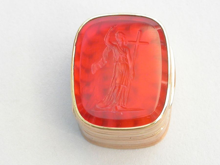 George III 18 Carat Gold & Carnelian Vinaigrette 'Faith' & 'Hope'