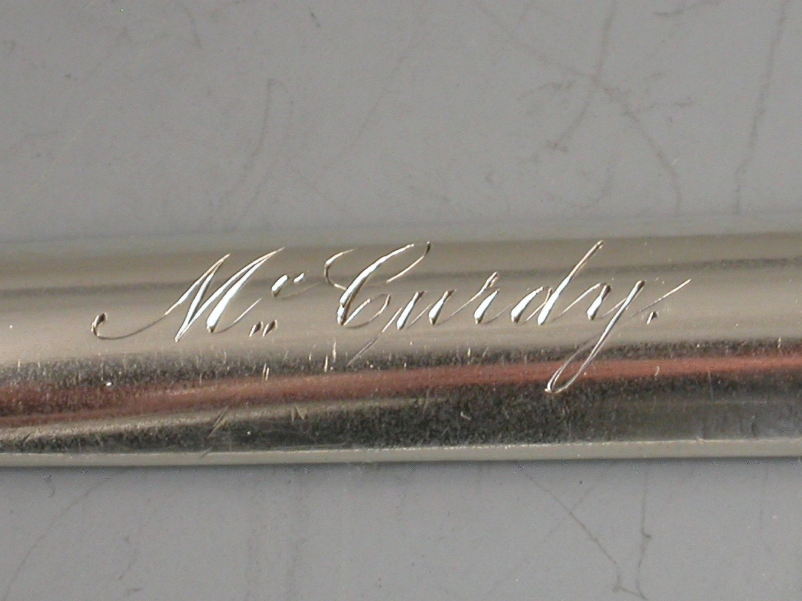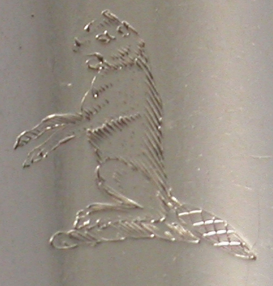 A fine George III 18th century silver Marrow Scoop of standard form, the stem with bright cut engraved feather edged border, the smaller bowl engraved with the name ""McCurdy"". The large bowl engraved with a crest of a Beaver, sejant.