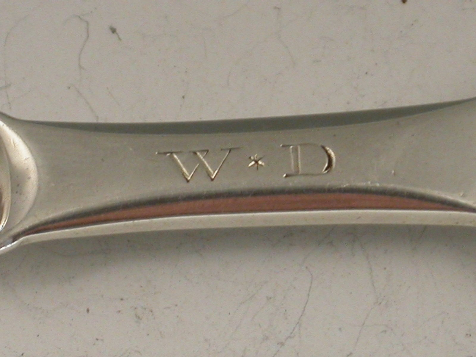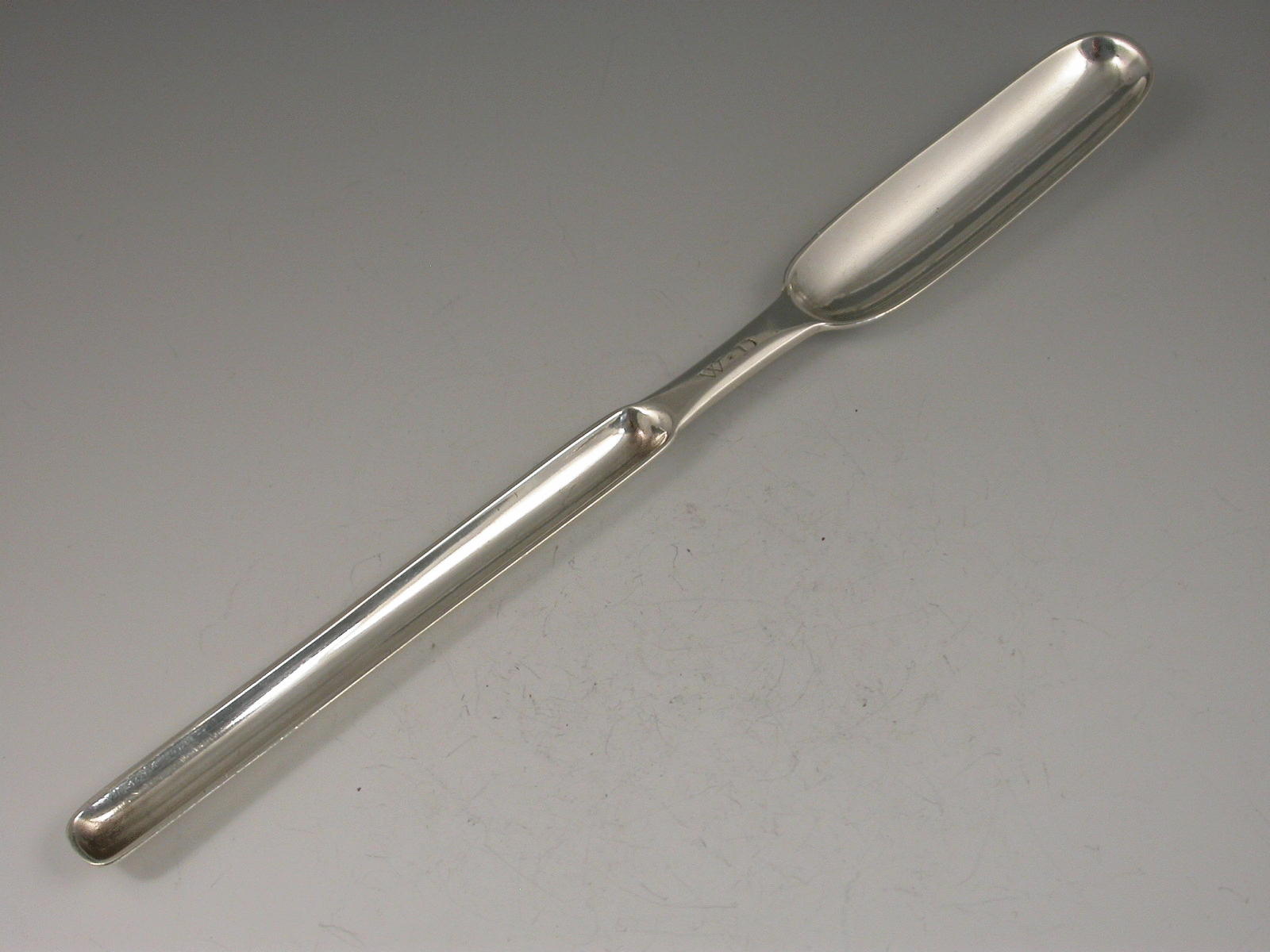 A good George III silver Marrow Scoop of standard form with two bowls and a thick stem, engraved with contemporary initials W * D.