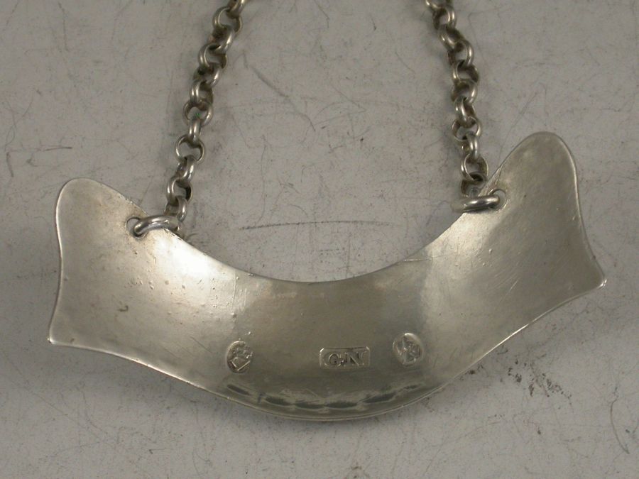 A fine George III Irish silver Wine Label of curved banner shape with bright cut engraved feather edged border, incised for Claret.